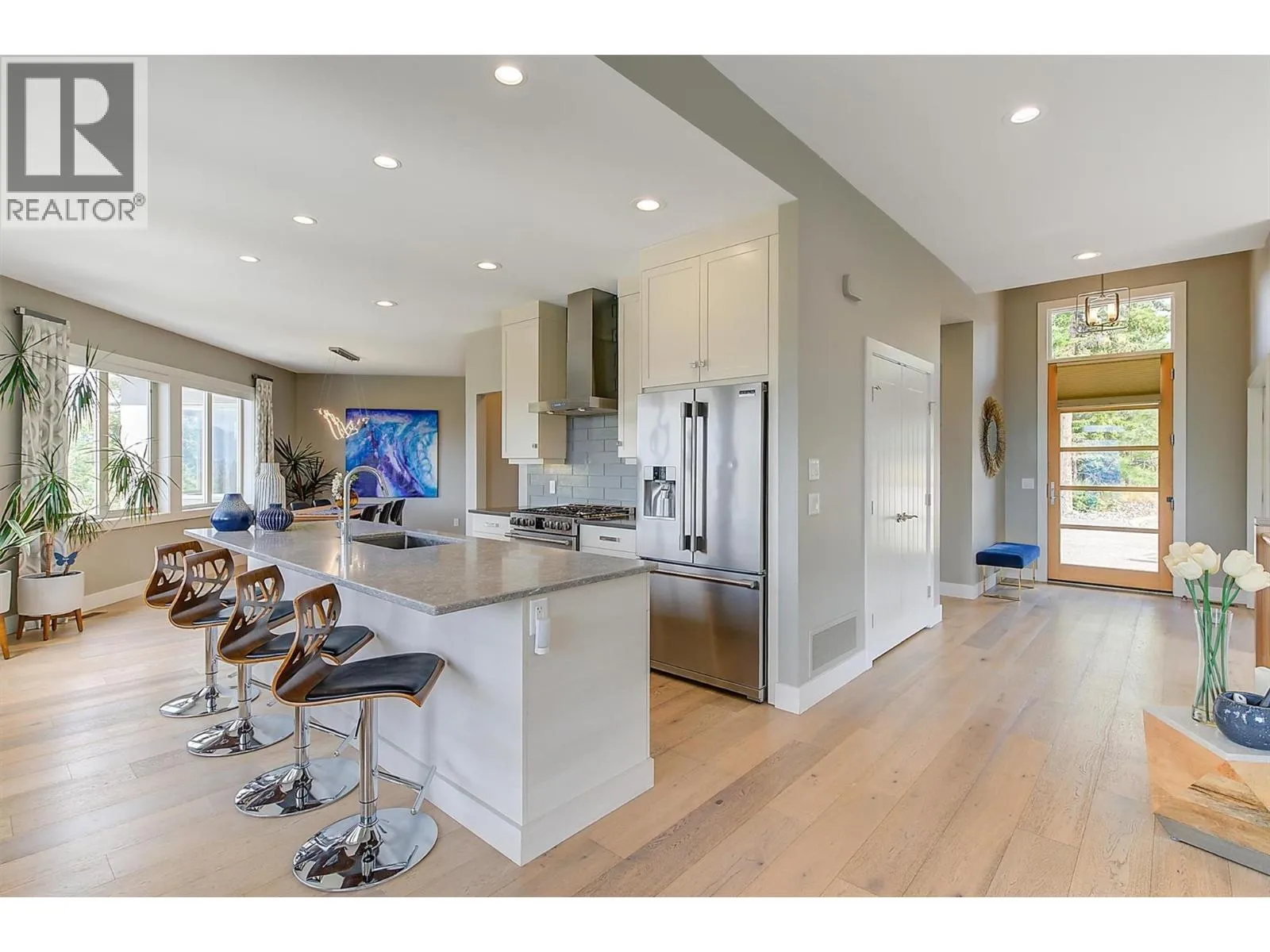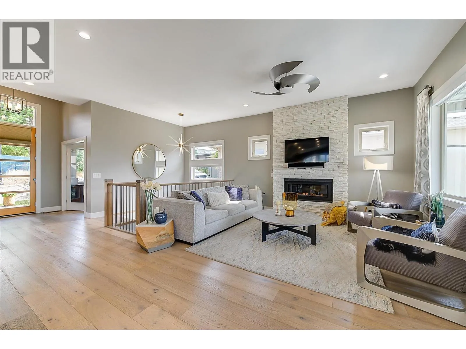 LOCATION, LOCATION â Upper Mission 4-Bedroom with Pool & Lake Views. Welcome to this stunning 4-bedroom, 3-bathroom home in highly sought-after Upper Mission, offering panoramic lake and city views from nearly every room. The bright, open layout features spacious living areas, oversized windows, and a gourmet kitchen complete with granite countertops, a generous island, and a butlerâs pantry with second fridge â ideal for entertaining and everyday living. The primary suite includes a walk-in shower, while three additional bedrooms plus a den provide excellent flexibility for families or work-from-home lifestyles. The walkout basement boasts expansive windows, soundproofed ceilings, and an open design perfect for games, media, or hosting guests. Outdoor living shines with a saltwater pool, secluded hot tub, covered balcony with awning, and a fully fenced, low-maintenance yard with artificial turf â perfect for kids and pets. Enjoy exceptional privacy, with the property behind not suitable for subdivision, all located on a quiet, private 6-home street. Just minutes from top-rated schools, parks, trails, wineries, and the new shopping centre, this home also includes dual-zone HVAC, wide-plank engineered hardwood, quality finishes throughout, and water included in the strata fee ($375/month covering water, street lighting, and snow removal). A rare opportunity to own a view property in one of Kelownaâs most desirable neighbourhoods. (id:27476)