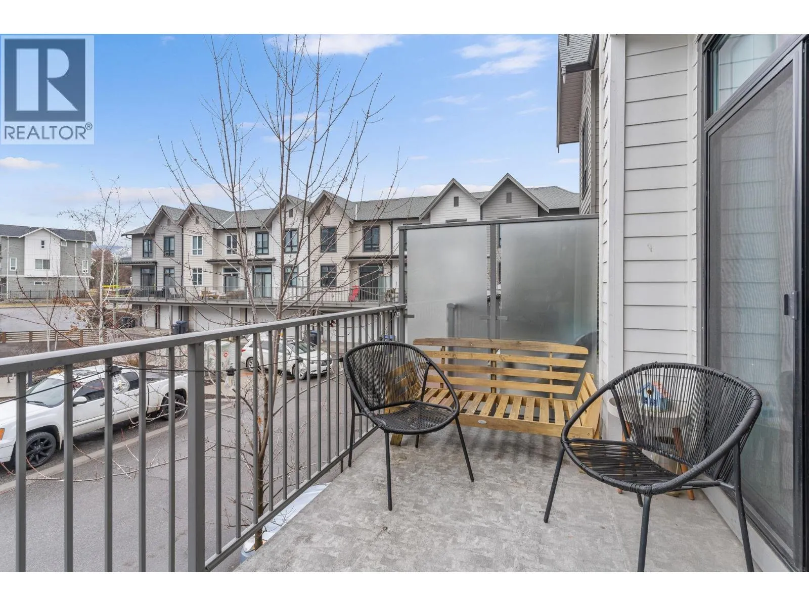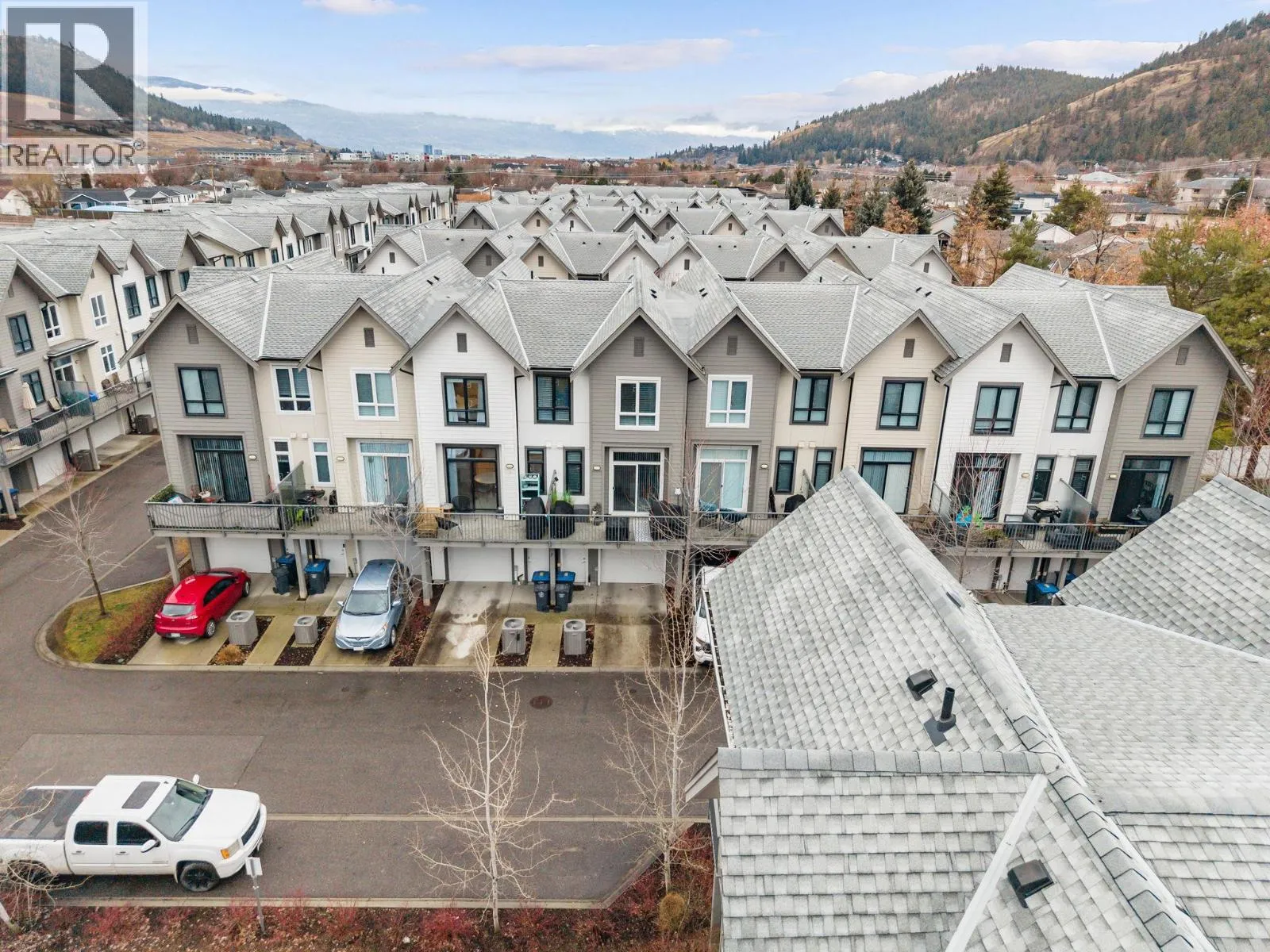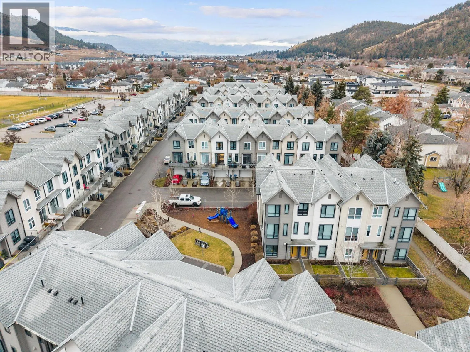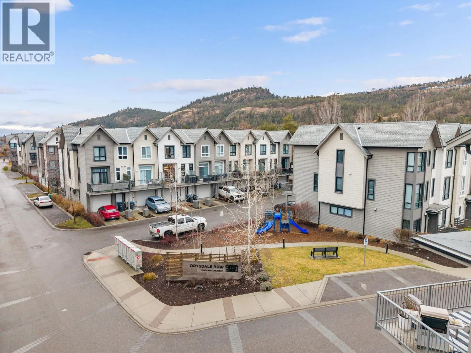 Welcome to Drysdale Row. OPEN HOUSE Feb 7 and Feb 8, 10 am-12 pm. This family-friendly 3-bedroom plus den townhome is the heart of Glenmore and is perfectly located directly across from Knox Mountain Middle School. Designed for easy living, the open-concept main floor is bright and inviting, with a patio that overlooks the central park, ideal for morning coffee or keeping an eye on the kids at play. A rare front yard adds even more outdoor space to enjoy. Do you have pets? No worries about size here and you can have 2 dogs or 2 cats! Upstairs, the spacious primary bedroom features a walk-through closet (with doors) leading to a private 4-piece ensuite, while two additional bedrooms, a third bathroom and stacked laundry can be found. This home also has versatile den providing room to have a fourth bedroom, office, work out room. The ideas are endless. A tandem garage plus apron parking make coming and going simple. The apron is large enough for a F-150 to park on it. Set in one of Kelownaâs most sought-after family neighbourhoods, this home offers the perfect blend of lifestyle, location, and comfort. Call us today for a showing. This home is not going to last long. (id:27476)