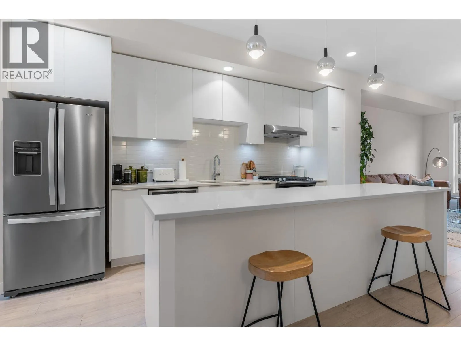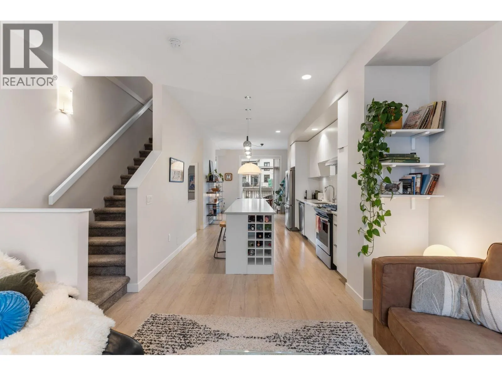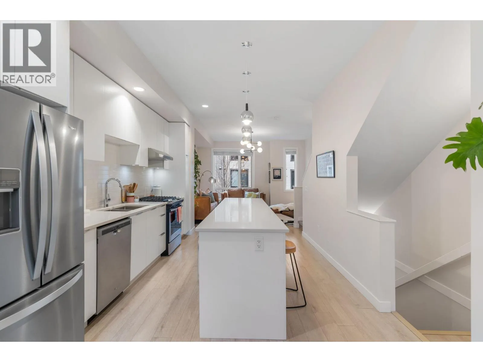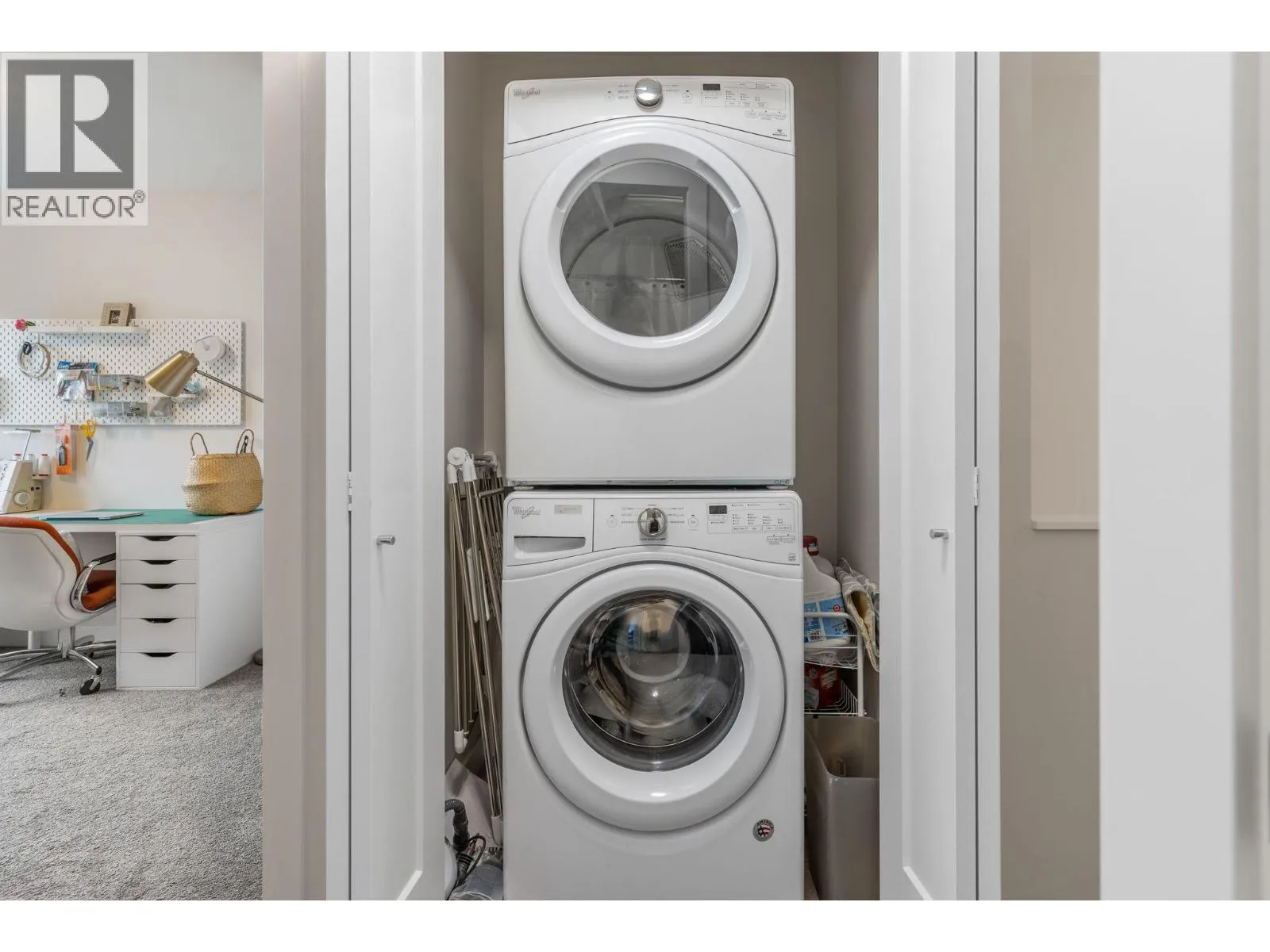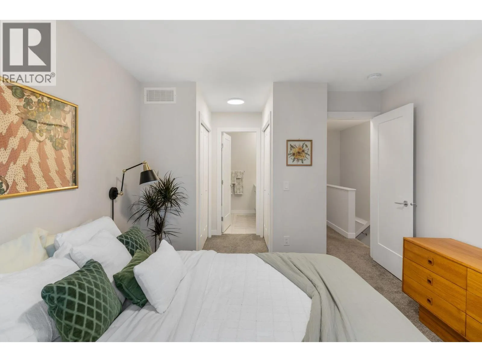 Welcome to Drysdale Row. OPEN HOUSE Feb 7 and Feb 8, 10 am-12 pm. This family-friendly 3-bedroom plus den townhome is the heart of Glenmore and is perfectly located directly across from Knox Mountain Middle School. Designed for easy living, the open-concept main floor is bright and inviting, with a patio that overlooks the central park, ideal for morning coffee or keeping an eye on the kids at play. A rare front yard adds even more outdoor space to enjoy. Do you have pets? No worries about size here and you can have 2 dogs or 2 cats! Upstairs, the spacious primary bedroom features a walk-through closet (with doors) leading to a private 4-piece ensuite, while two additional bedrooms, a third bathroom and stacked laundry can be found. This home also has versatile den providing room to have a fourth bedroom, office, work out room. The ideas are endless. A tandem garage plus apron parking make coming and going simple. The apron is large enough for a F-150 to park on it. Set in one of Kelownaâs most sought-after family neighbourhoods, this home offers the perfect blend of lifestyle, location, and comfort. Call us today for a showing. This home is not going to last long. (id:27476)