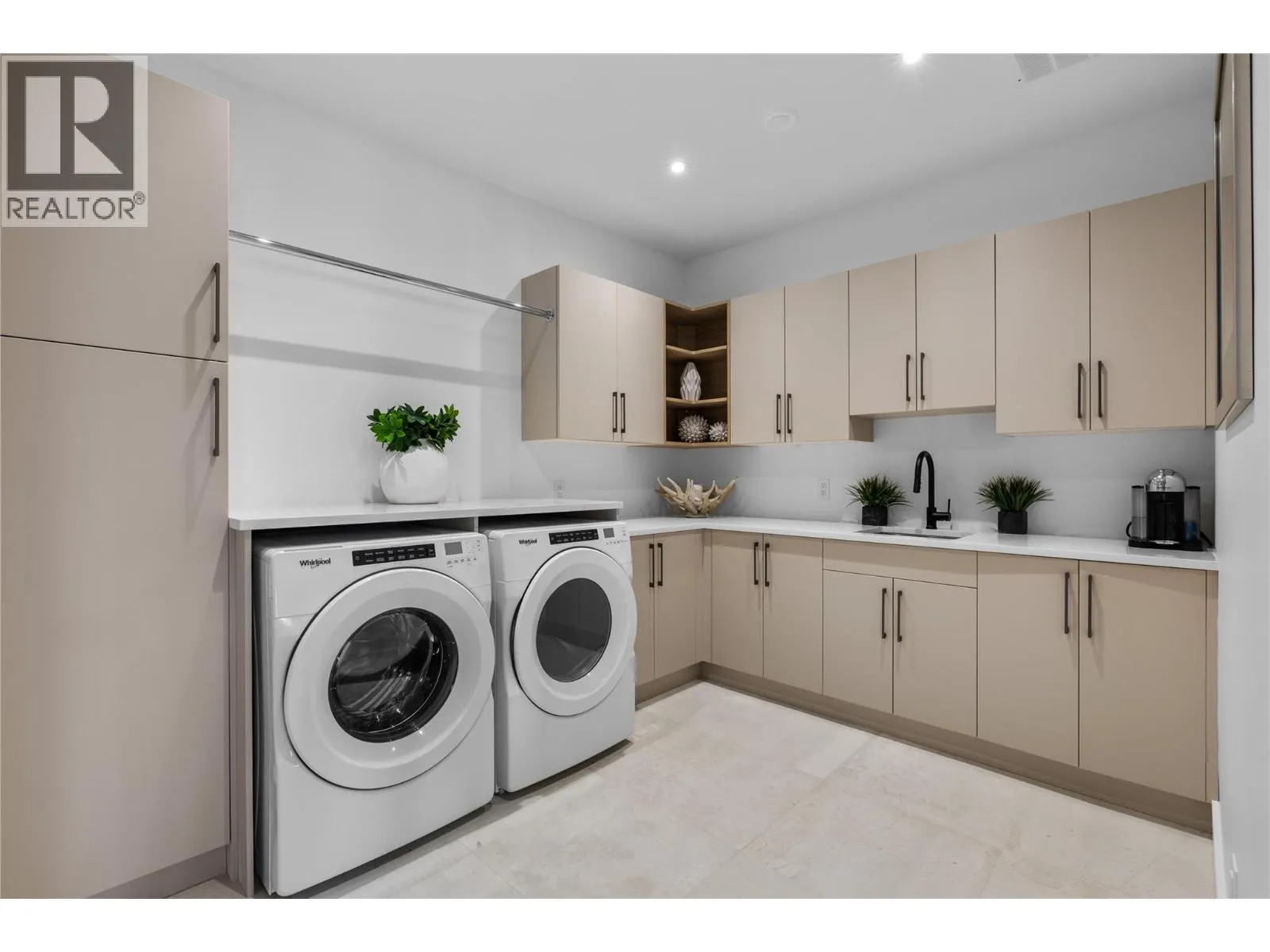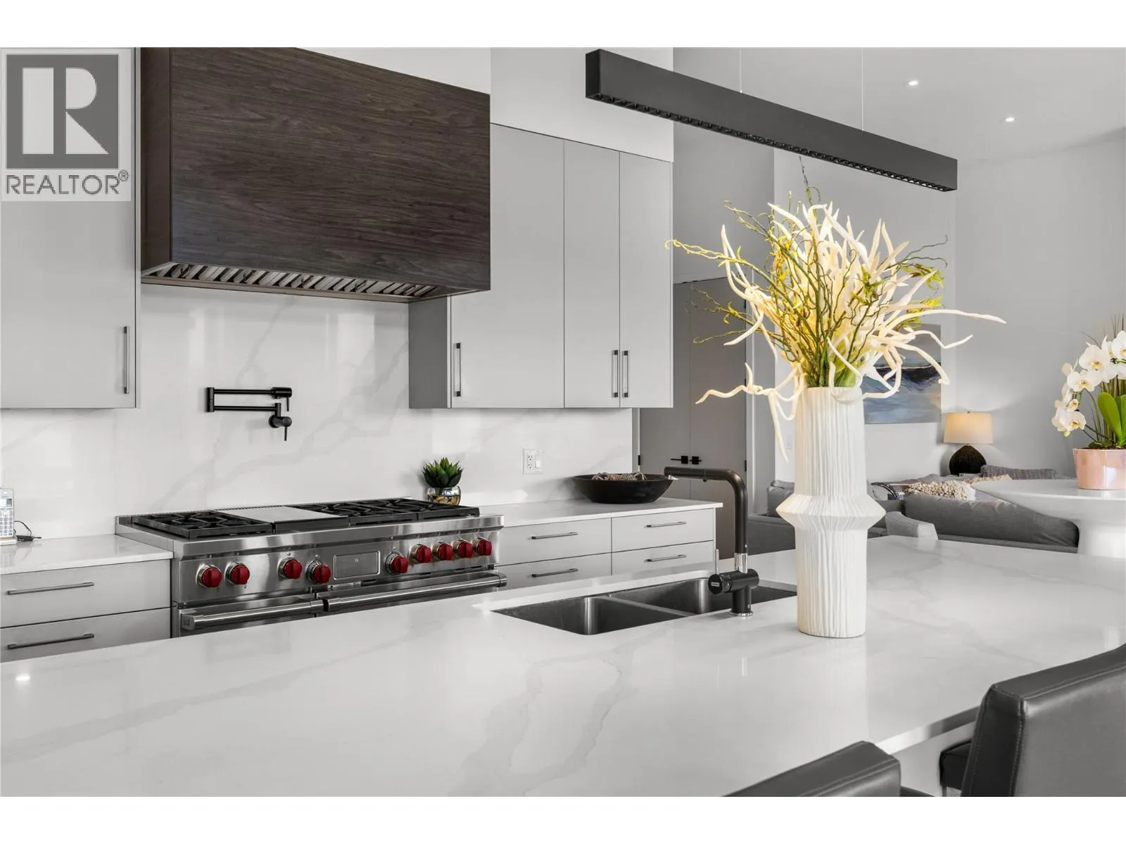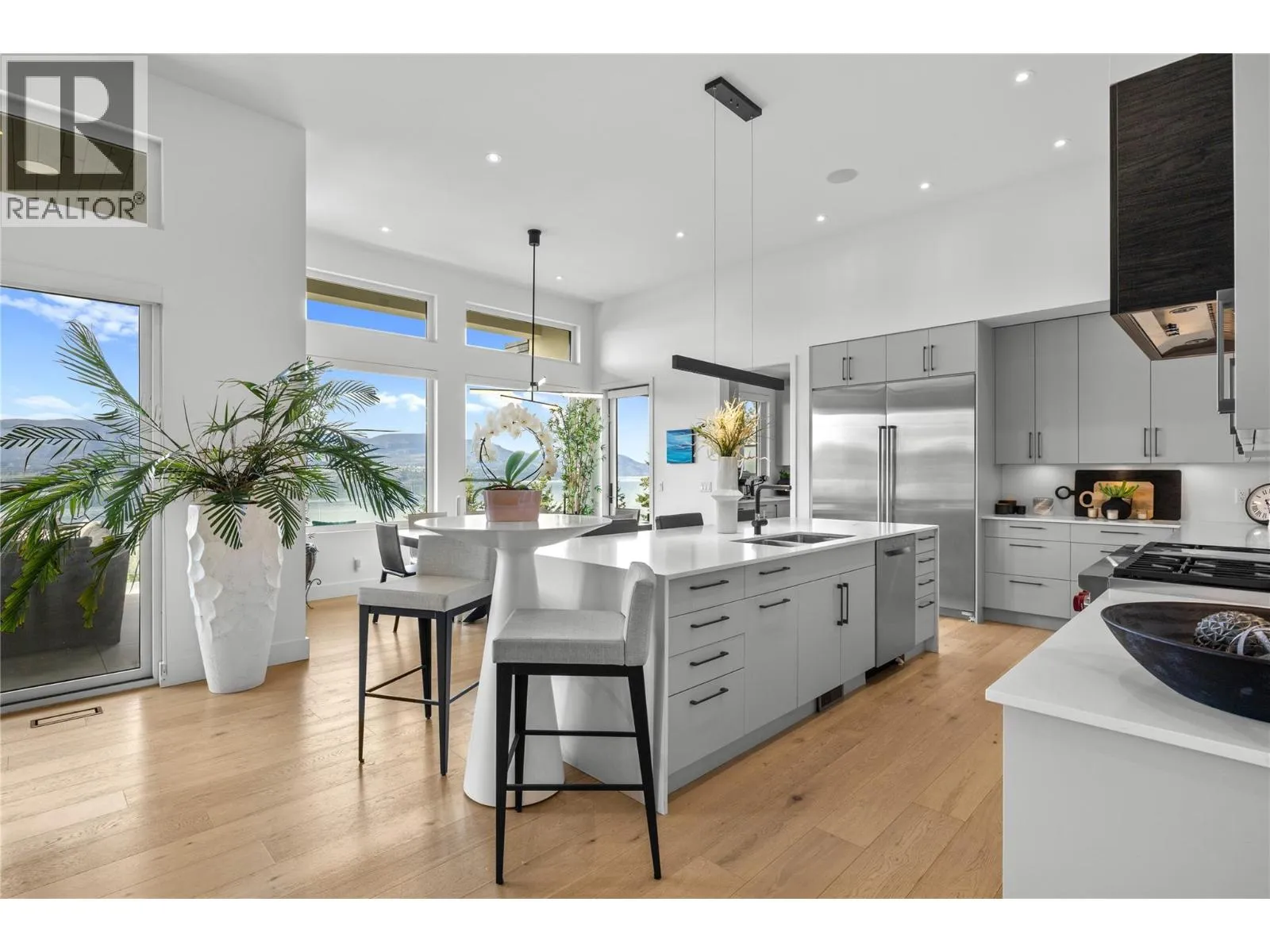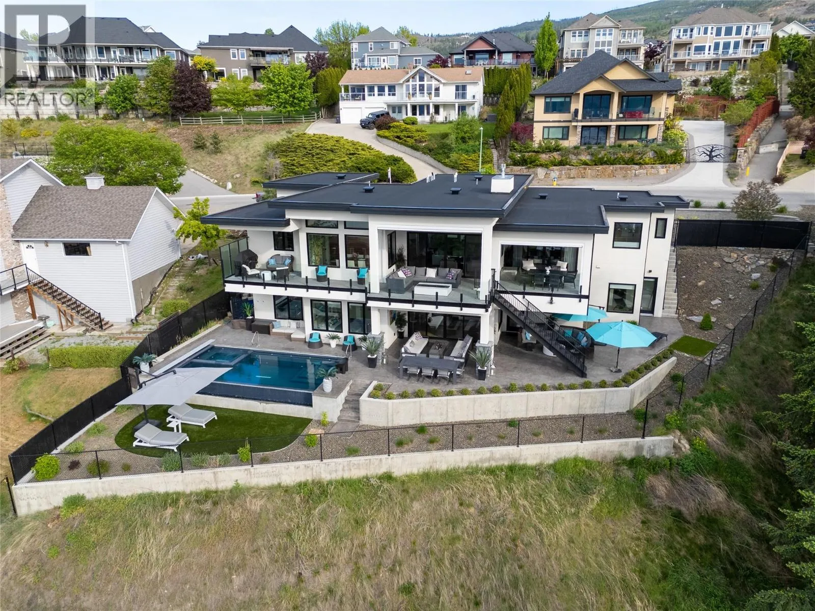 WELCOME to this exquisite 4641 sq ft walk-out rancher, perfectly situated to offer spectacular views of the lake, city and valley. This luxurious home features resort-style indoor- outdoor living. Enjoy the infinity edge swimming pool and hot tub complemented by expansive deck spaces on both levels- providing perfect spots for entertaining or simply soaking in the views. Inside you will find a gym area, theatre room, wet bar and temp controlled wine room as a few ""added extras"". This 2021 built home boasts 4 generous sized bedrooms all with lake views. The main floor primary bedroom with large walk in closet and laundry and 5 piece ensuite is designed for age in place living providing comfort and convenience. A spacious 3 car garage offers plenty of room for your vehicles and toys and a heated drive. Upper and Lower floors have in floor radiant heat. Do you have a cook in the family? WELL- this kitchen is truly an entertainer/chefs delight with a large servery. A fully fenced yard with pet friendly synthetic turf. This truly is an exceptional home- where every detail has been carefully considered for your utmost comfort. There's so many details that it truly needs to be seen. * measurements taken from the I guide floor plan in supplements (id:27476)