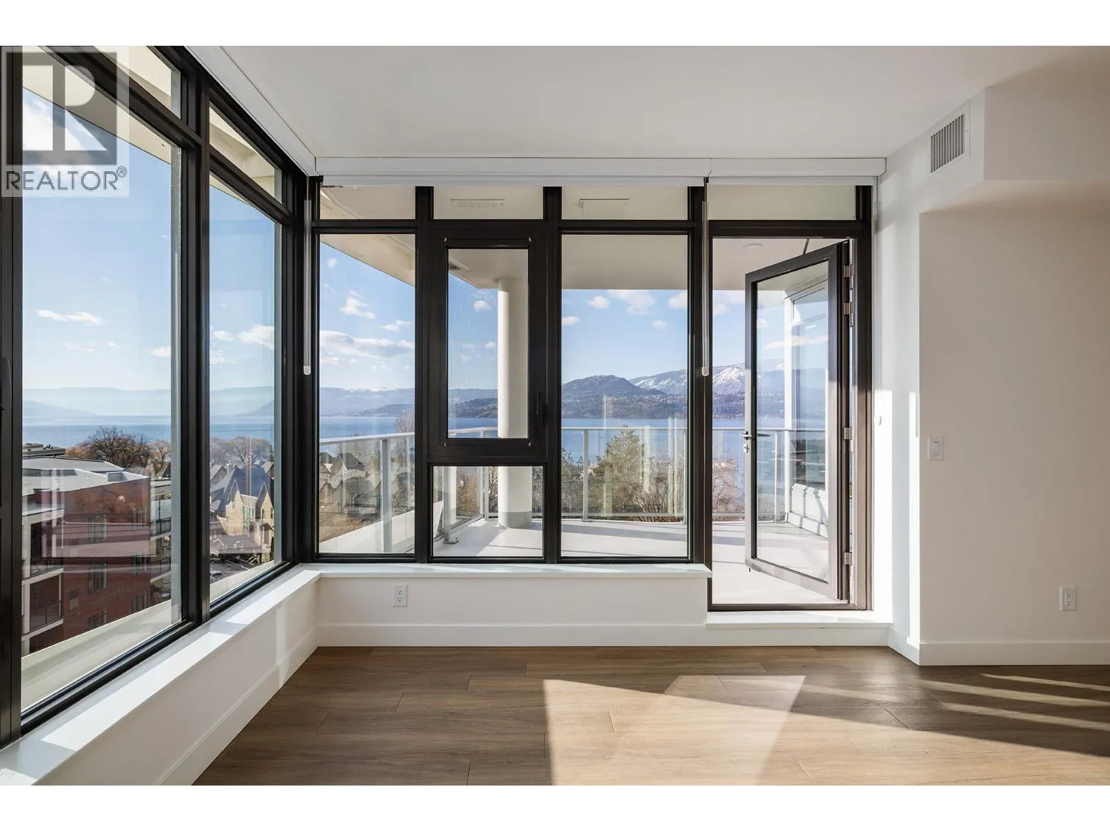 HIGHLY DESIRABLY 9th FLOOR CORNER, TWO BEDROOM UNIT! UNOBSTRUCTED SOUTHWEST LAKE VIEWS! Located in the heart of Kelowna's Lower Mission, Aqua Waterfront resort offers vacation-inspired living at your door step with world class amenities and timeless style. This 2 bedroom, 2 bath private corner unit offers oversized windows, high ceilings, an open concept living space, full sized stackable laundry, quiet top of the line high efficiency heating/cooling system and a generous sized covered balcony. The modern two-toned kitchen area includes a wide French door fridge, a quartz waterfall island, and an under counter 24â wine cooler completes the stylish inviting space. Did we mention the second bedroom has a million dollar view! Aquaâs top of the line amenities include a large 2-storey gym with yoga studio, a generous sized outdoor pool and hot tub area with gathering spaces, an indoor lounge area with co-working space, a pet wash station and an above ground bike storage for easy access. Exclusive opportunity to join the state of the art Aqua Boat Club with a ton of offerings and services. Includes storage locker and one spacious stall with an option to purchase a second. No size pet restrictions! The Aqua Waterfront Resort with its future cafes, vibrant shops, world class amenities and state of the art boat storage center offers you the lifestyle you deserve! (id:27476)