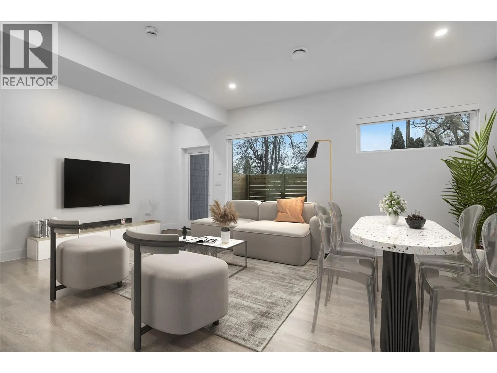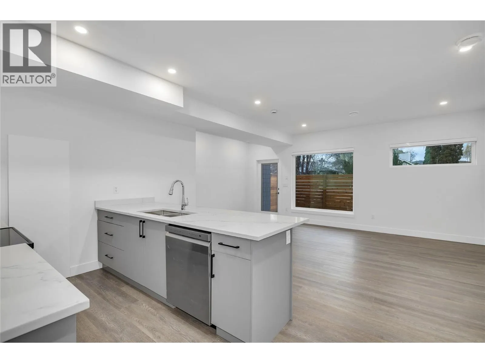 Welcome to this stunning brand-new 3-bedroom townhouse, ideally located just minutes from the hospital, offering both convenience and modern living at its finest. This beautifully designed home features an open-concept floor plan with bright, airy living spaces, making it perfect for entertaining or relaxing with family. The stylish kitchen boasts sleek quartz countertops, two tone cabinets with black hardware, stainless steel appliances, ample cabinet space plus additional storage under the stairs. The large island offers lots of room for stools and the massive laundry/utility room provides a great flex space for fitness equipment, a desk or storage for bikes and other sporting gear. A door off the living room provides access to the private, fenced patio area perfect for outdoor dining or simply enjoying the fresh air. Each of the three generously sized bedrooms offers plenty of natural light, with the primary suite featuring a great closet with built in storage and an ensuite bathroom with large shower and double sinks for added comfort and privacy. The primary also features an incredible covered balcony, a great place to enjoy morning coffee or unwind and relax at the end of a long day. This central location is fantastic for easy access to public transportation and the wonderful shopping and dining of the Pandosy area. Don't miss the opportunity to call this beautiful new townhouse with warranty, your new home! Schedule a tour today. (id:27476)