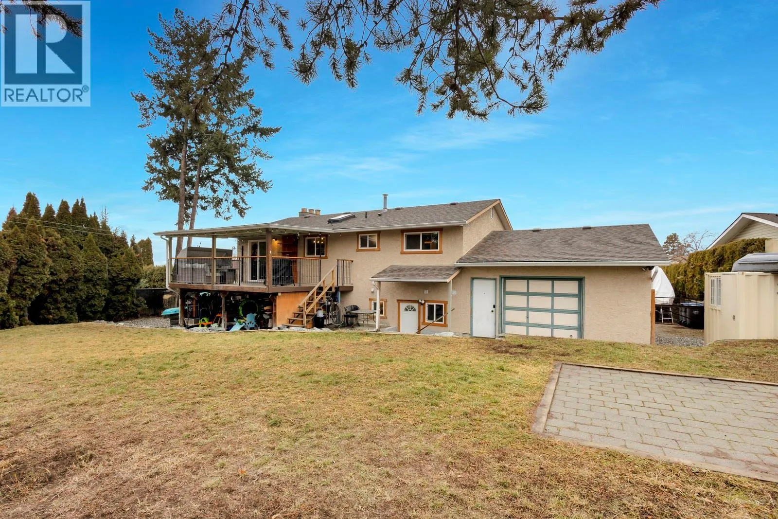 Welcome to family-friendly Black Mountain, where space, privacy, and flexibility come together for the next chapter of life. This 4-bedroom, 2-bath home with an in-law suite sits on a generous 0.24-acre lot, offering room to play and space to store all your toys. At the heart of the home is a warm, open-concept kitchen featuring a large central island with bar seating, stainless steel appliances, a gas range, and a centerpiece stainless hood fan. 2 Skylights provide a bright, modern main-floor kitchen and living area that opens to an oversized covered deck with mountain views, ideal for family life and entertaining. The main living area includes three bright bedrooms, with two on the main floor and one below. The bathroom features a hammered brass sink set on a custom polished concrete vanity, complemented by a full-length mirror and tasteful tile work throughout the tub and surround. Downstairs, a fully contained one-bedroom in-law suite with kitchen, laundry, separate entrance, and a newly renovated bathroom offers excellent flexibility for extended family or guests. Outside, the fully fenced yard provides privacy, space for pets and play, and no rear neighbours, all on a quiet one-way cul-de-sac. An attached garage and ample additional parking accommodate trailers, recreational toys, or work vehicles. Close to schools, parks, city amenities, and the future Black Mountain Village Centre, this home is private, practical, and ready to grow with your family. (id:27476)