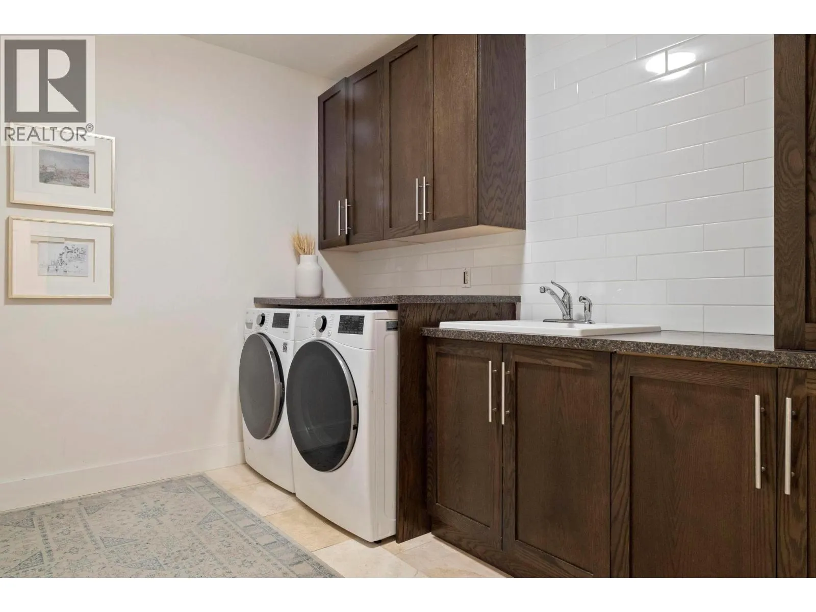 This exceptional luxury home is nestled on a quiet cul de sac in Kelownaâs prestigious Glenmore neighbourhood and was reimagined in 2023 by an award winning design and build team. Offering over 5,000 sq ft, it is ideal for elegant entertaining and multigenerational living. The stunning living room features soaring 18 foot vaulted ceilings, wide plank white oak flooring, statement wood beams, archways, and refined European inspired finishes. The custom chefâs kitchen includes integrated appliances, a six burner Wolf gas range, custom white oak cabinetry, quartz counters and backsplash, and an oversized walk in pantry. A main floor office with custom built ins overlooks the backyard. Upstairs are four generous bedrooms, including a primary retreat with private balcony, spa inspired ensuite, soaker tub, walk in shower, and walk in closet. The private backyard oasis offers a saltwater pool, hot tub, stamped concrete patio, gas fire pit, lush landscaping, and a full size basketball court that converts to a winter skating rink. RV parking and space for boats or trailers is included. Additional highlights include a movie room, private gym, triple garage and a flexible one or two bedroom walkout in law suite that is ideal for family, guests, or a mortgage helper. Minutes to downtown Kelowna and walking distance to schools, parks, and shopping, with mountain and sunset views and Sonos sound throughout. A rare Glenmore offering that combines luxury, lifestyle, and functionality. (id:27476)