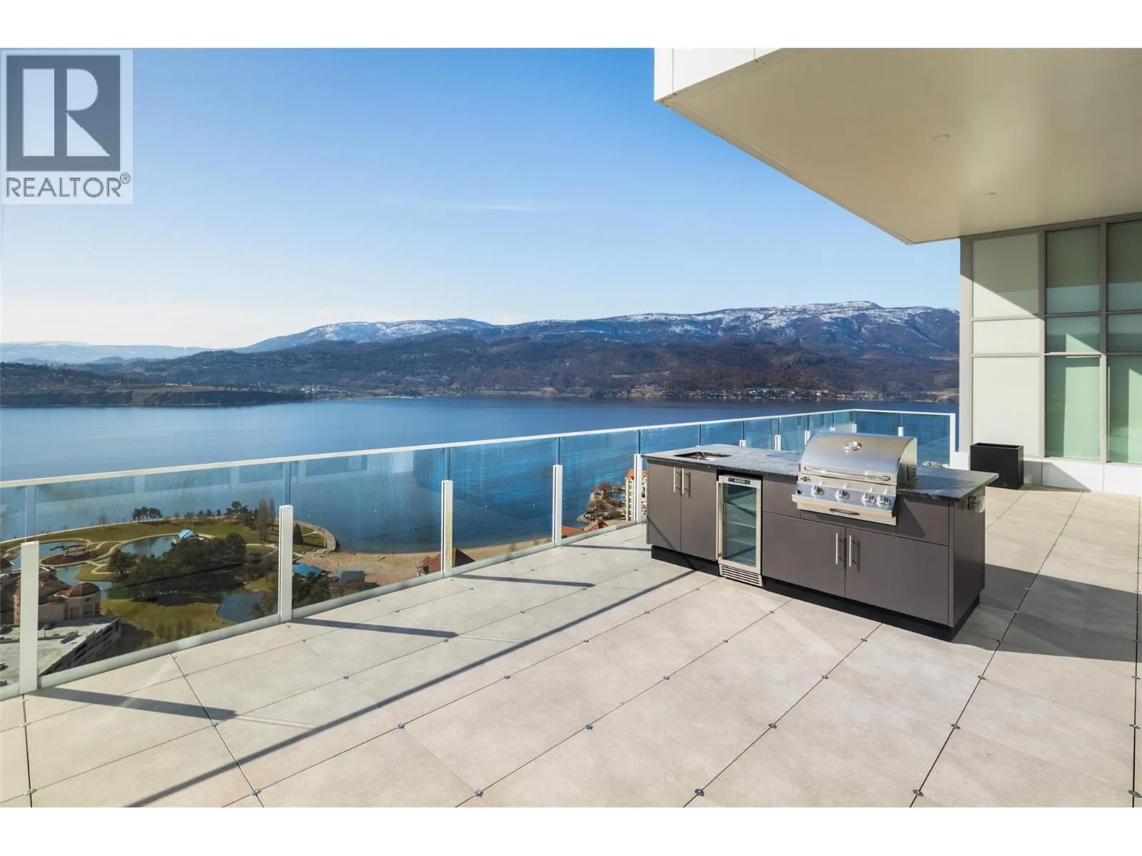 This striking penthouse at ONE Water Street offers over 4,300 sq. ft. of luxury living space. Award winning architectural and interior design by Materia Design. Located on the 36th floor of the West Tower, you'll experience spectacular, unobstructed views of Okanagan Lake and the City of Kelowna. Expansive living spaces for both day-to-day living and entertaining include a gourmet kitchen, formal dining room, wine cellar, family room, living room and office. Take in the enthralling views from the terrace and private courtyard totalling over 2,800 sq. ft. of outdoor living that will exceed your expectations featuring a hot tub, fire table and outdoor kitchen. As the day concludes, retreat to the sensational primary suite with a spa-inspired en suite. SMART Home package for your convenience with automatic blinds, audio, climate control, security and lighting. Secure parking for 4 cars with 2 car private garage and a 2-car tandem stall. Residents of ONE Water will relish in access to The Bench. The landscaped 1.3-acre amenity oasis is comprised of two impressive swimming pools, oversized hot tub, a pickleball court, outdoor seating with fire pit enclaves, a dog park, and so much more. Just steps from your front door, you will find a selection of restaurants, cafe's, retail stores, and services lining the ONE Water Street streetscape. Georgie Award Finalist for BC Residential Community of the Year. Discover Okanagan urban living at new heights. (id:27476)