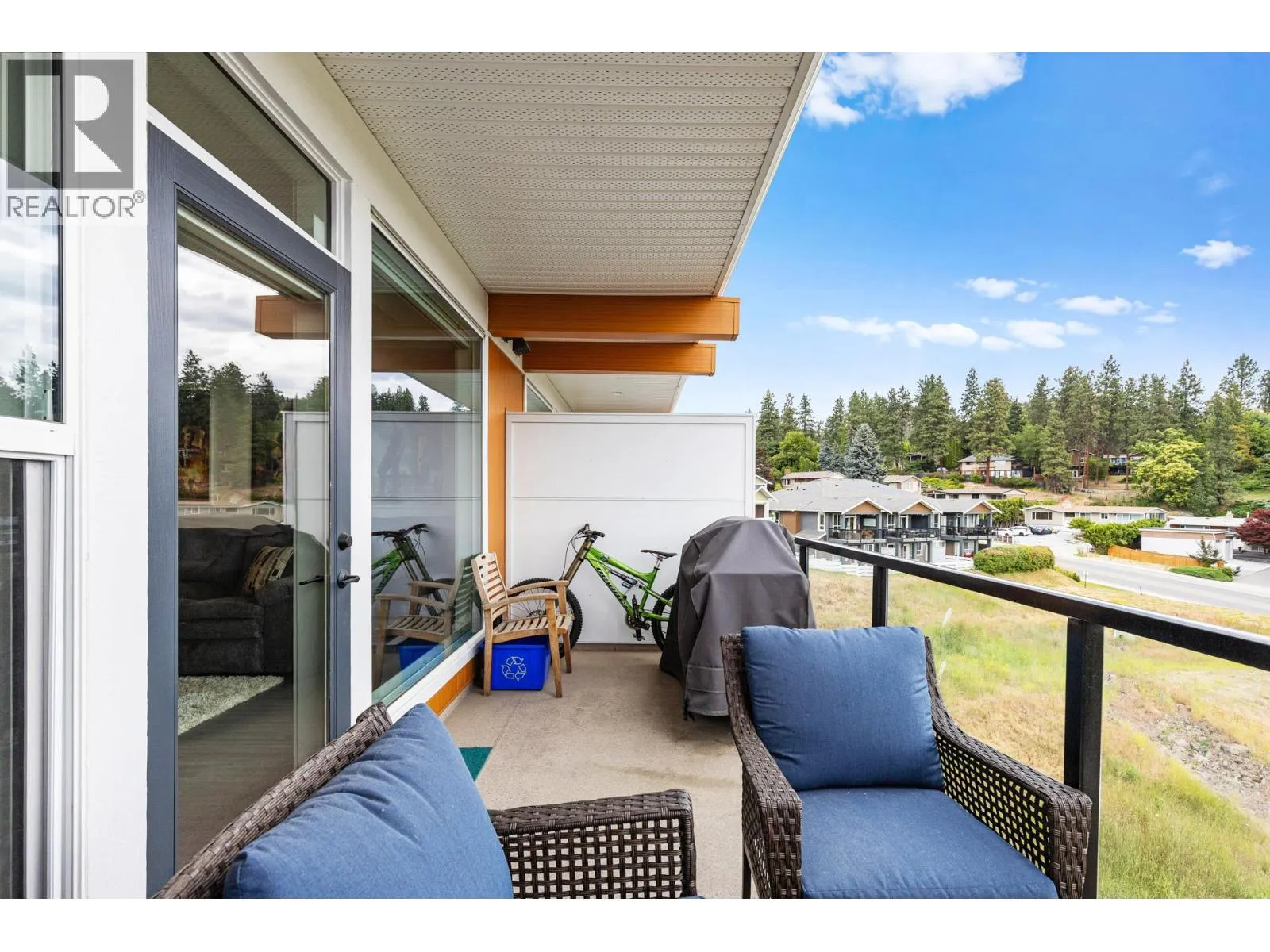 Enjoy stunning mountain and city views from this bright, contemporary top-floor 2-bedroom townhome. Step inside to an airy open-concept layout perfectly designed for comfortable living and entertaining. The expansive primary bedroom easily accommodates a king-sized bed with room to spare for a cozy reading nook or home office setup. The versatile second bedroom is perfect for guests, a den, or an office. Enjoy the stylish kitchen with modern cabinetry, quartz countertops, and stainless steel appliances, seamlessly flowing into the living and dining areas â ideal for both relaxing and entertaining. Large windows fill the home with natural light, while the east-facing deck provides the perfect spot to savour morning sunrises and shaded afternoons. This energy-efficient home comes equipped with roughed-in solar panels to help lower utility costs. Additional highlights include in-suite laundry, ample storage, and quality finishes throughout. Located minutes from Knox Mountain Park, youâll have endless biking, hiking, and walking trails right at your doorstep. Plus, youâre just a short drive to downtown Kelowna, Okanagan Lake beaches, top-rated golf courses, restaurants, shops, and transit. Whether you're a first-time buyer, investor, or looking to downsize without compromising on lifestyle, this home is a must-see. (id:27476)