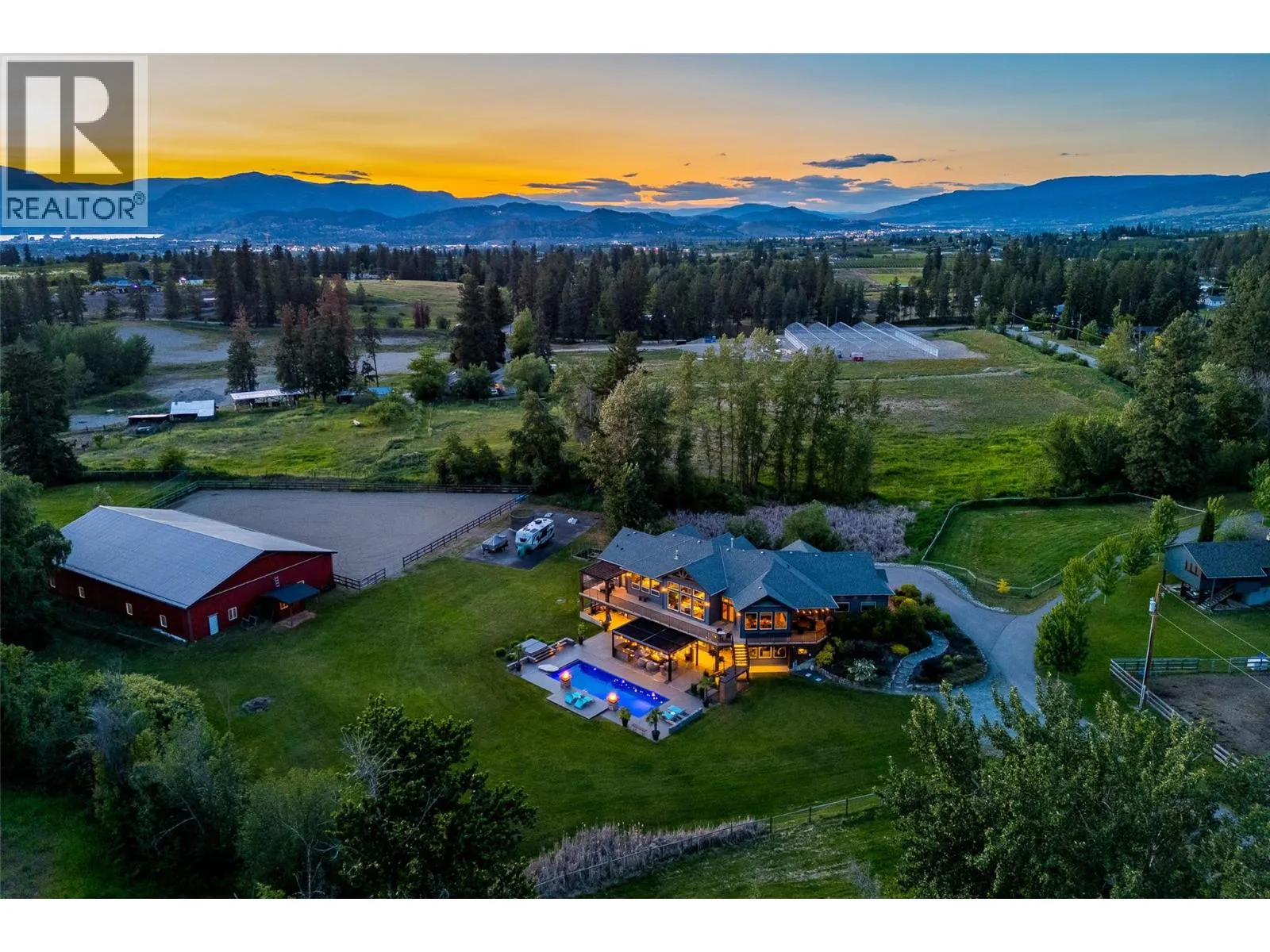 This is a MUST-SEE property that simply can't be captured in just a few words. A quality Craftsman-built custom home, thoughtfully designed for horse lovers with both indoor and outdoor arenas & covered loafing sheds, There is a FIVE-STAR luxury resort-style pool area, and a second residenceâall set on five flat, lush, irrigated acres of prime land in South East Kelowna. This is truly the opportunity of a lifetime, priced well below replacement value. The current owners have reimagined and transformed this estate into a sanctuary of luxury, relaxation, and elevated quality of life. Imagine coming home from a ride and unwinding by the pool at sunsetâsurrounded by fire tables glowing, the glittering pool lights and a sky full of stars all complimented by the peaceful sounds of nature. Itâs an authentic symphony that envelopes you and invites you to fully, and deeply enjoy the moment. There are countless special experiences awaiting the next owner, along with an array of exceptional features that enhance both the beauty and functionality of this remarkable estate property. For a complete list of details, including floor plansâor to book your own private sunset showingâcontact your favourite real estate agent today. (id:27476)