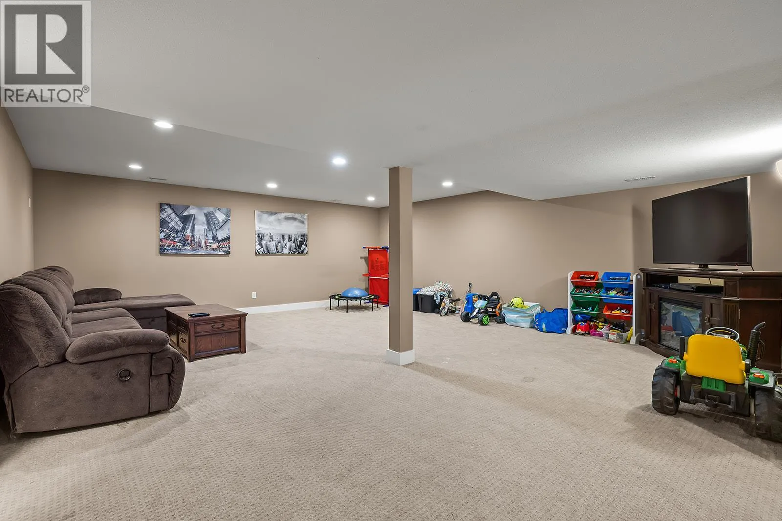 Welcome to this exceptional family home where space, functionality, and lifestyle come together. Offering over 3,100 sq. ft. of living space, this home truly stands out, starting with the 920 sq. ft. triple garage. Designed with car enthusiasts, hobbyists, or active families in mind, the garage features an oversized bay, car lift, 220 power, and room for all your toys. Add in the expansive driveway and extra parking, and youâll never be short on space for vehicles, trailers, or guests. Inside, vaulted ceilings and a gas fireplace anchor the bright and welcoming main living area. The kitchen is well-appointed with stainless steel appliances and granite countertops, flowing into a sun-filled sitting area with a bar top and pass-through windowâperfect for entertaining and extending your living space outdoors. The flexible layout includes 3 bedrooms, 3 bathrooms, plus a spacious office that easily functions as a 4th bedroom. The primary suite offers a walk-in closet and 4-piece ensuite and main-floor laundry adds everyday convenience. Downstairs, a massive rec room provides endless options for family time, games, or movie nights. Step outside to a fully fenced, private backyard with no rear neighbors, a rear deck, and an upper terrace capturing peaceful valley views. Best of all, Sunset Ranch Golf Club is right outside your door. A rare opportunity in one of Kelownaâs most desirable communities offering outstanding parking, an oversized garage, and a lifestyle thatâs hard to beat (id:27476)