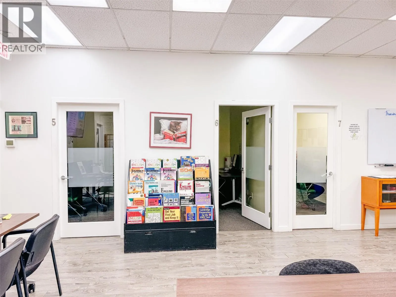 1,856sf of ground-level professional space, centrally located in the downtown area within walking distance to amenities and restaurants. Functional layout with open-concept flex space and seven private offices. The unit includes two washrooms, a kitchenette, and a storage room. Available for sublease until October 31, 2026, shorter term options may be considered. (id:27476)