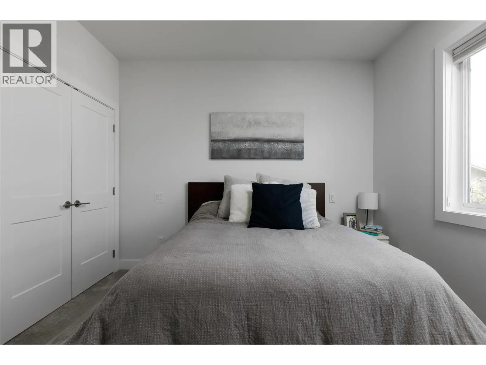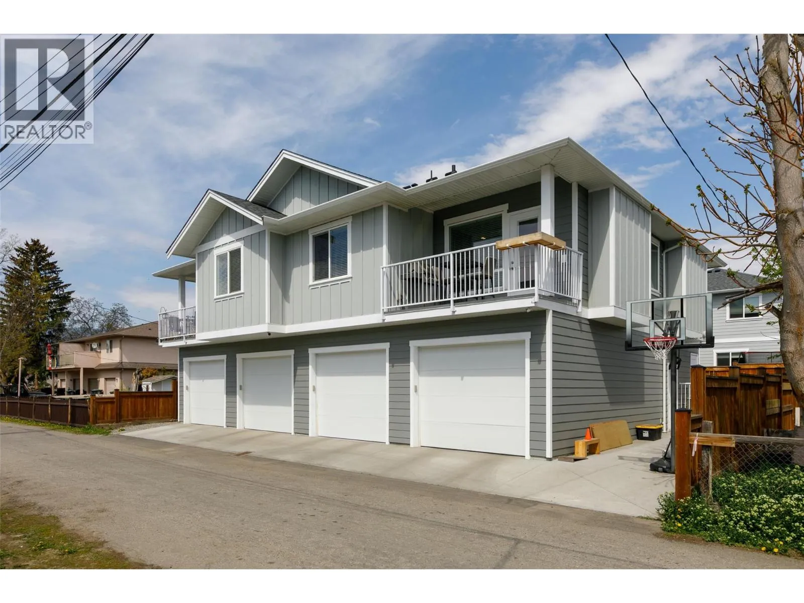 Welcome to this rare half duplex in an exclusive four-unit strata community, offering maximum affordability with the perfect blend of privacy, luxury finishes, and unbeatable walkability in one of Kelownaâs most desirable neighbourhoods. This two-storey home is ideally situated within walking distance to the beach, the vibrant Pandosy Corridor, Kelowna General Hospital, Raymer Elementary, KLO Middle School, Kelowna Secondary School, Okanagan College, and numerous parks and recreation. A truly exceptional location for families, professionals, or anyone seeking convenience and lifestyle. Inside, youâll find a thoughtfully designed layout featuring a gourmet kitchen with clean white cabinetry, quartz countertops, and premium KitchenAid stainless steel appliances, perfect for entertaining or everyday living. Luxury finishes continue throughout the home, highlighted by central air and heat, plus ceramic heated floors in the spa-inspired primary ensuite complete with a 5-piece layout, tile and glass walk-in shower, and elegant undermount cabinet lighting. Step outside to your partially covered deck with natural gas hookup, ideal for year-round BBQs while enjoying peaceful mountain views and added privacy. Additional features include a single secured garage with durable epoxied floor, ample storage throughout, and affordable strata fees. This is a rare opportunity to own a stylish, low-maintenance home in a prime Kelowna location, perfect for families or those looking to enjoy the very best of Okanagan living. (id:27476)