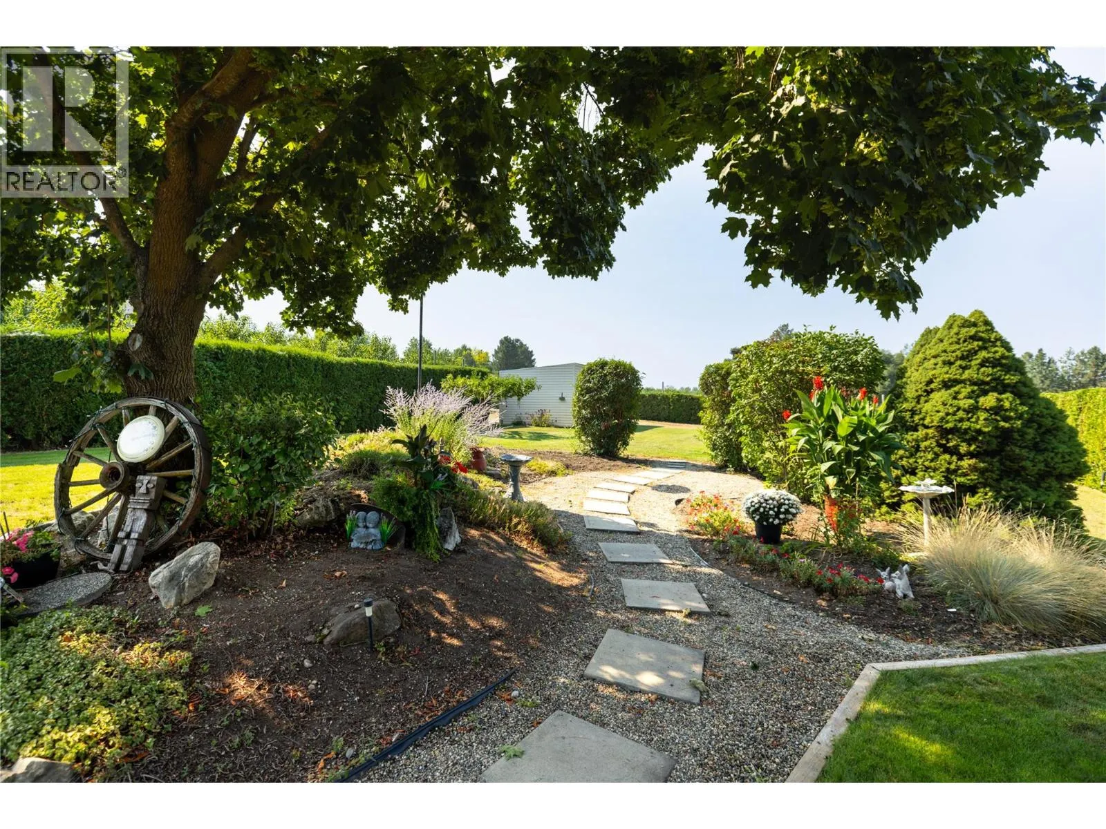 Outstanding value in one of Kelownaâs most coveted settings! Set on a rare 0.45-acre parcel surrounded by orchards, this lovingly maintained family home offers the perfect blend of privacy, potential, & lifestyle. Whether you envision expanding, adding a pool, or creating a legacy estate, this property provides endless opportunities. Inside, natural light fills the bright & welcoming layout through large windows & a skylight. The spacious kitchen flows seamlessly to the dining & living areasâideal for entertainingâwhile a cozy step-down family room offers the perfect space to relax. Upstairs, the primary suite is a true retreat, complete with a walk-in closet, spa-like ensuite, & private balcony to take in sweeping valley & mountain views. Two additional bedrooms & a full bathroom complete the level. The lower level includes a large rec room, fourth bedroom, & an expansive 7-foot crawl space with exceptional storage. Recent updatesânew windows & fresh exterior paintâadd peace of mind, while the private backyard oasis, mature landscaping, & large storage shed set the stage for your dream outdoor retreat. All of this is located minutes from amenities, golf courses, wineries, & hiking trailsâoffering the rare balance of country living with city convenience. (id:27476)