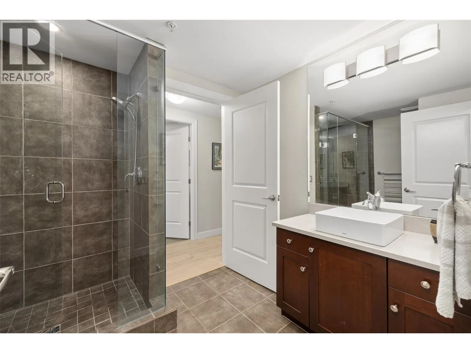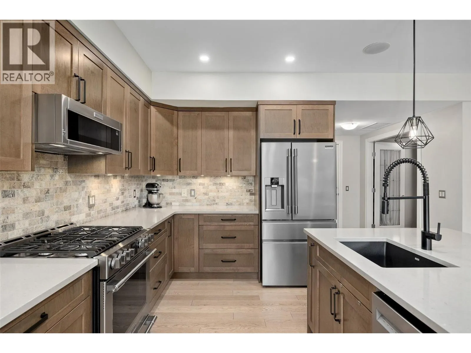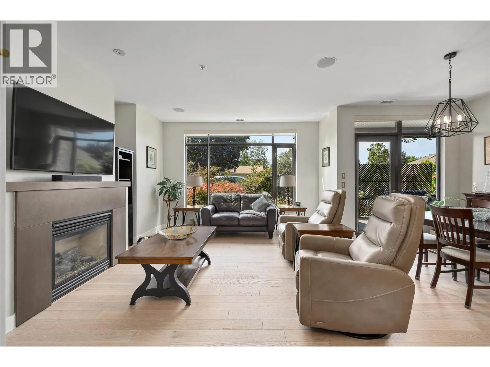 Located in the highly sought-after neighbourhood of Lower Mission, this 2 bed + den / 2 bath ground floor unit boasts 2 parking stalls and stress-free living with strata fees including heating/cooling. With 1,741 sqft of beautifully updated living space and approximately $100K in upgrades, the home features a chef-inspired kitchen with custom maple and birch cabinetry, quartz countertops, dovetailed drawers, stainless steel appliances, and feature lighting, complemented by Mirage engineered oak floors throughout. The open main living area is bright and inviting, with oversized windows letting in natural light. The primary suite includes a private fireplace, walk-in closet, and a spa-like 5-piece ensuite with heated floors. Additional features in the home include a second bedroom, full bath, separate laundry room, a versatile den perfect as an office or guest bedroom, and storage locker. Step outside to your covered patio with privacy screen and enjoy the immaculate landscaping. The complex offers resort-like amenities include an indoor pool, hot tub, gym, and entertainment area and only a short distance to schools, the Sunshine Market, Okanagan Lake, beaches, and recreation centres, this home combines luxury, lifestyle, and convenience. Call our team today to book your private viewing of this gorgeous home! (id:27476)