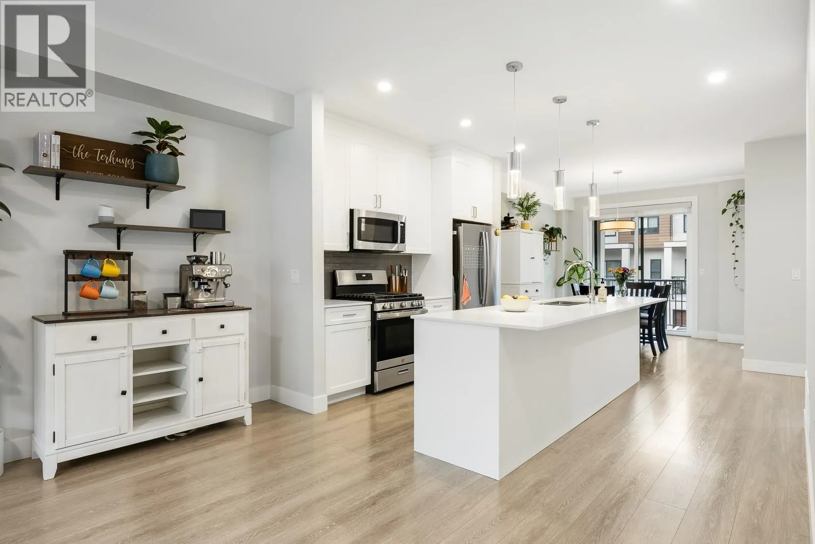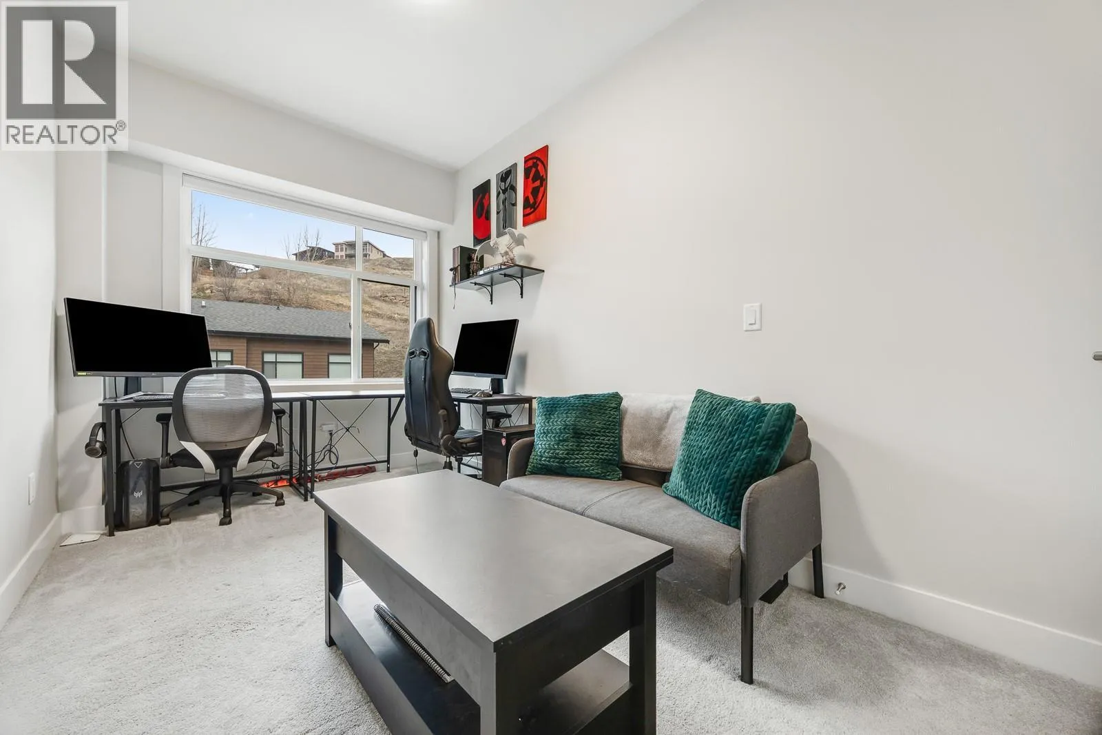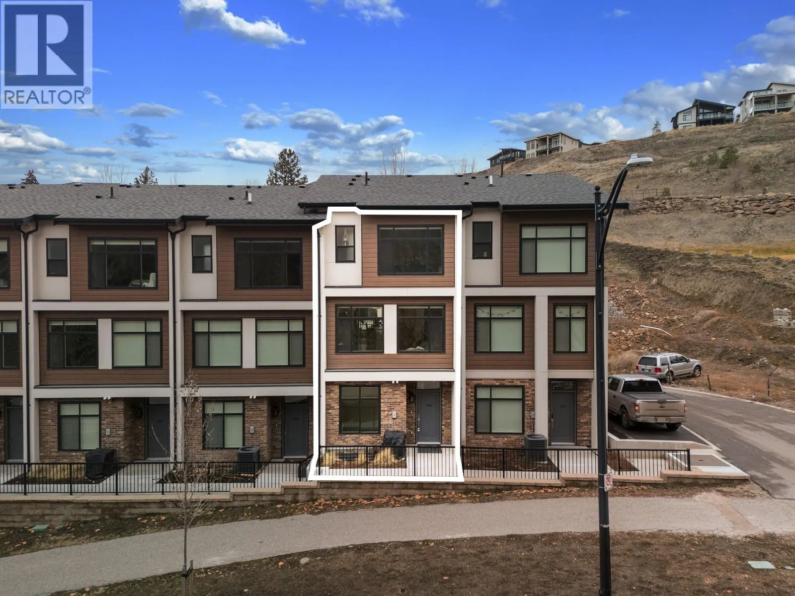 OPEN HOUSE SAT FEB 14 FROM 12-2PM.Life feels a little easier when your backyard is a golf course.This contemporary, modern townhouse is crafted for the way you actually liveâstylish, functional, and comfortable.Spanning three bright levels, this multi-level home offers four bedrooms and 3.5 bathrooms, giving everyone space to work, relax, and recharge.The open-concept main floor is flooded with natural light and anchored by a sleek kitchen with quartz countertops, S/S appliances, a large island, and a gas rangeâperfect for hosting.Step from the dining area onto your deck,then wind down in the cozy living room by the fireplace, with a convenient powder room completing the level.Upstairs, the primary suite feels like a retreat with its own ensuite and walk-in closet,plus two more bedrooms, a full bathroom and laundry.On the lower level, a private office makes working from home a breeze, while an additional full bathroom offers flexibility for guests.The welcoming foyer and extra storage throughout the home enhance its thoughtful design.A garage plus driveway parking adds everyday convenience.Located in the highly sought-after Black Mountain Golf Course community, youâre close to parks, schools, minutes to Hwy 33, just 10 minutes to the airport, and 30 minutes to Big White. Bonus: strata allows two dogs, two cats, or one of each with no size restrictions.If living steps from the golf course sounds like your kind of daily view, this one is worth a closer look. (id:27476)