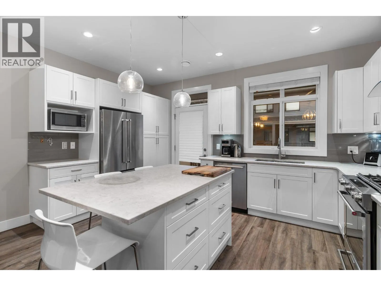 Welcome to this bright and spacious 3 bed + den, 3 bath end-unit townhouse designed for comfortable everyday living and effortless entertaining. This home stands out with its open-concept main floor, where a light-filled kitchen flows seamlessly into the living and dining areasâperfect for hosting friends, family gatherings, or simply enjoying day-to-day life. Outside the large outdoor patio off the main living space is an ideal extension of the home for summer dinners, morning coffee, or relaxing evenings. The thoughtful layout includes a versatile den, ideal for a home office, gym, or kidsâ play area, while the upper level offers well-proportioned bedrooms and bathrooms that suit both families & professionals alike. The oversized two-bay garage is a rare bonus, complete with plumbing for a dog wash, making it perfect for active lifestyles and pet owners. This pet-friendly complex is centrally located, offering unbeatable convenience. Youâre just minutes to Okanagan Lake, less than 10 minutes to Downtown Kelowna, and the Kelowna General Hospital. Daily amenities such as grocery stores, schools, parks, cafes, and transit are all close by, while nearby bike routes make it easy to commute or explore the city without relying on a car. Whether youâre a growing family or a professional looking to balance space, comfort, and location, this home delivers a lifestyle that blends modern living with the ease of being bike-distance to everything Kelowna has to offer. (id:27476)
