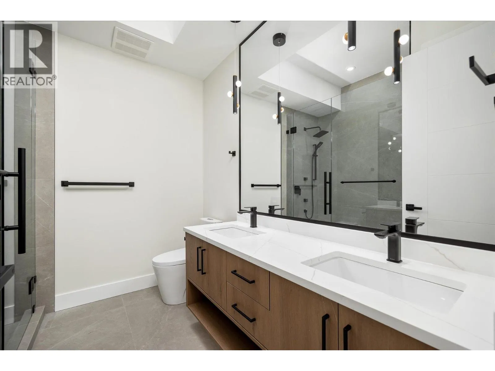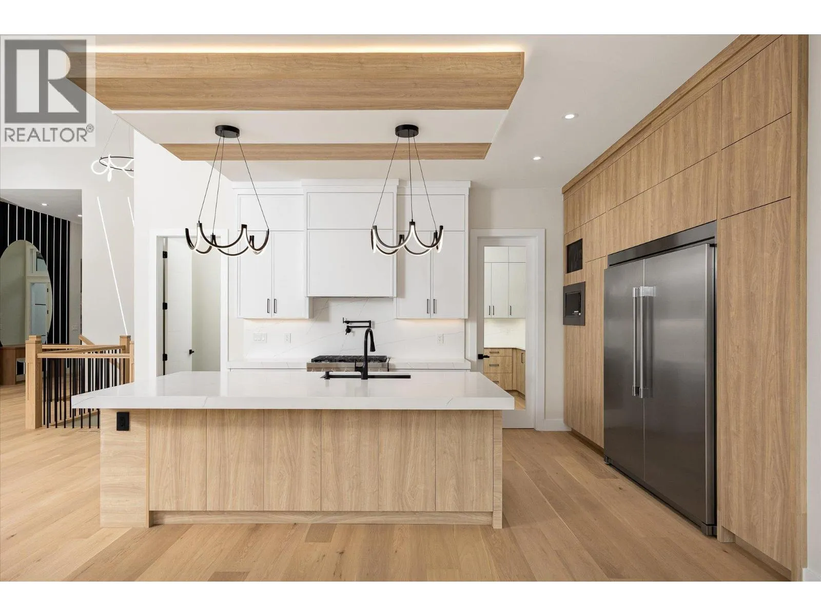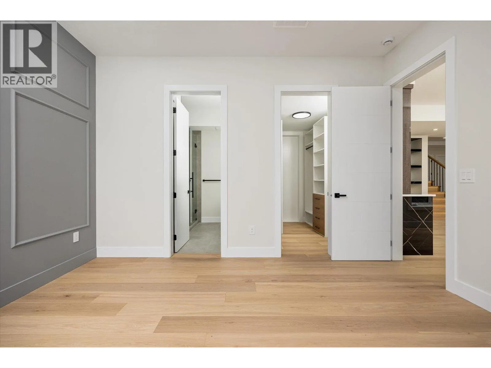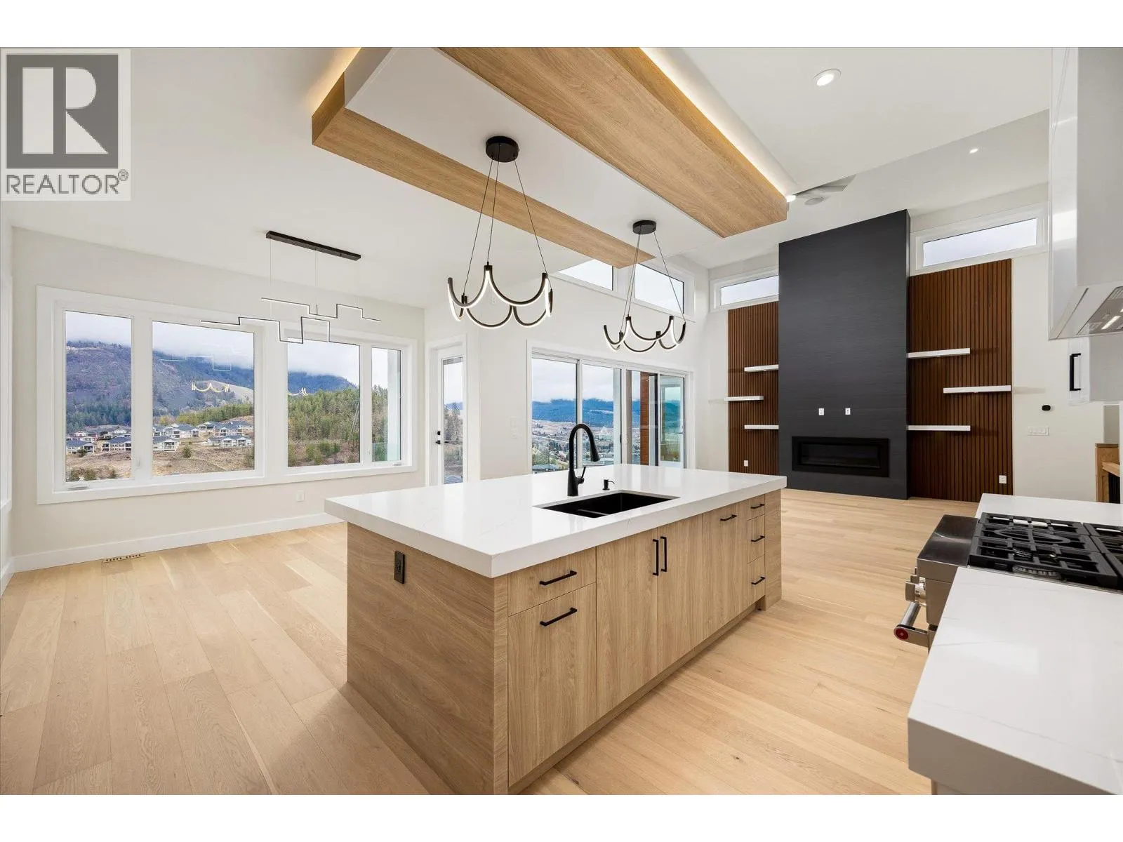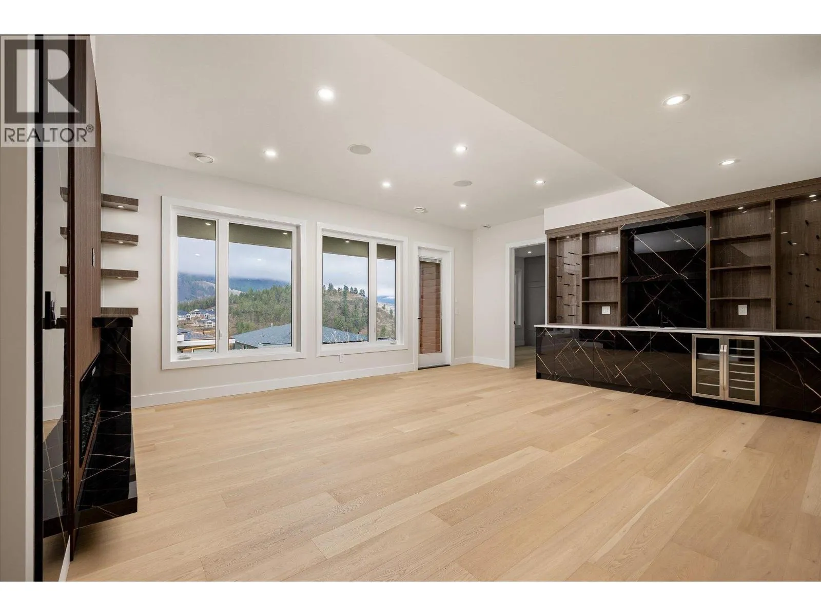 Welcome to this extraordinary brand-new 2026-built luxury residence by Empirical Homes, offering breathtaking mountain views and an uncompromising blend of opulence, innovation, and thoughtful design. This expansive eight-bedroom, six-bathroom estate is perfectly suited for large families, multi-generational living, or those seeking income potential, featuring a fully legal two-bedroom, one-bathroom suite with separate entrance and private laundry, plus a convenient interior access door allowing the main home to incorporate the suite if desired. Inside, dramatic black marble accents, hardwood flooring, custom recessed lighting throughout, and built-in features elevate every space, including custom illuminated closet shelving, designer fireplaces, a sophisticated wet bar, integrated speaker system, and a comprehensive video security system. Custom feature walls enhance the bedrooms, while the custom-designed cabinetry in all bathrooms and the spice kitchen reflect exceptional luxury craftsmanship. Beneath the suspended slab garage, a fully outfitted blackout media room with built-in accent lighting creates the ultimate private theatre experience. The primary suite offers a true sanctuary with a massive custom-lit walk-in closet and a spa-inspired ensuite complete with a soaker tub, glass-encased shower, dual vanities, radiant heated flooring, and a heated towel holder. Completing the package is a three-car garage with epoxy flooring. Blending bold modern elegance with high-end craftsmanship and panoramic surroundings, this stunning Black Mountain home delivers luxury living at its finest. Book a showing to see the extensive upgrade list in person. GST applicable. (id:27476)