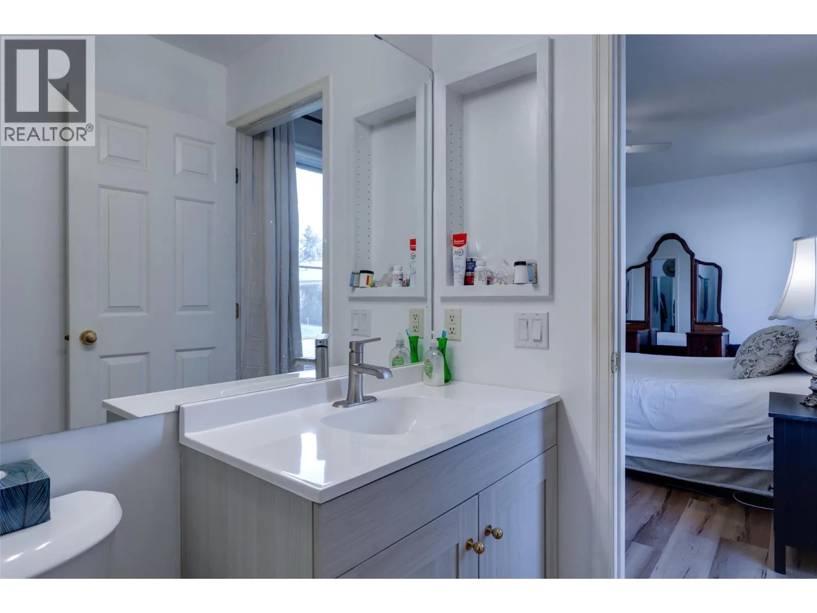 Step into this refreshed E-plan home where both bedrooms offer their own ensuites and walk-in closets for ideal privacy. The new kitchen features updated cabinets, quartz countertops, new appliances, a corner pantry, and room to add an island. The layout has been opened up to feel bright and fresh, with luxury vinyl plank flooring throughout. Updates include new interior doors and trim, all new lighting, Furnace & AC (2025), hot water tank (2023), all Poly-B removed, and upgraded attic insulation. Enjoy the added comfort of a sunroom plus a double garage. Backyard is a little oasis with garden box, flower beds and a fruit producing peach tree. Located in the popular Sunrise Villageâa well-kept, 45+ community in a great Kelowna location. Pets allowed. (id:27476)
