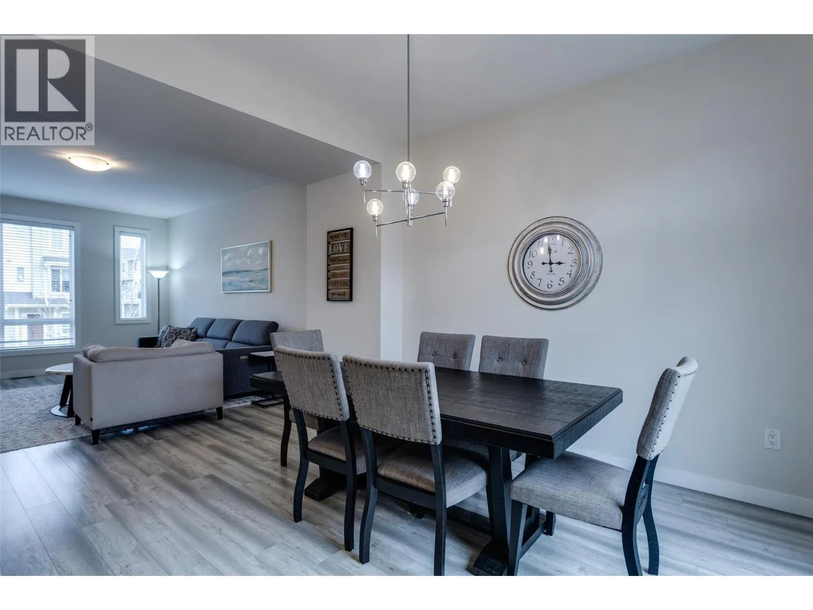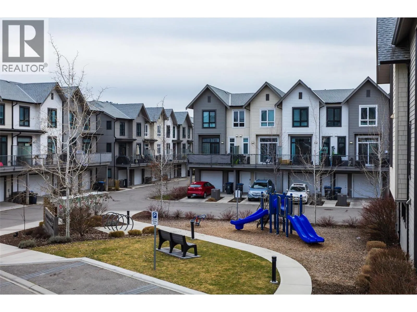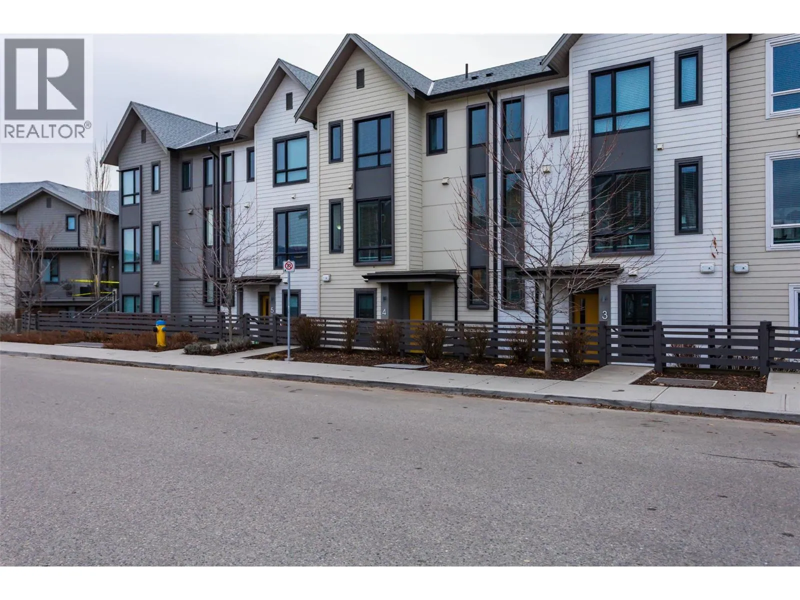 Discover Drysdale Row, a beautiful and thoughtfully created 4-bedroom, 2.5-bathroom townhome in one of North Glenmoreâs most sought-after communities. Offering just under 1,600 sq. ft., the open-concept main level is designed for modern living, with elevated ceilings, a bright & spacious living area, and a gorgeous kitchen at the heart of the home. This home features a wider floor plan and large windows that fill the space with natural light. Situated on a quiet residential street, the sidewalk access leads to a charming front yard. The chef-inspired kitchen showcases a large quartz island with built-in wine storage, stainless steel appliances, and a gas range, flowing seamlessly into the open-concept living and dining areasâideal for entertaining. A deck made for morning coffees or summer BBQs and a stylish 2-piece powder room complete this level. Upstairs offers three spacious bedrooms, a full bathroom, and convenient laundry. The primary suite includes spa-like ensuite and a walk-in closet. The lower level features a fourth bedroom or flex space, perfect for a home office, gym, or hobby room, with direct access to the side-by-side double garage. Located in a family-friendly neighbourhood, it is only a few steps to Dr. Knox Middle School and North Glenmore Elementary, with bus routes to UBCO, and close to parks, trails, shopping, and restaurants. (id:27476)