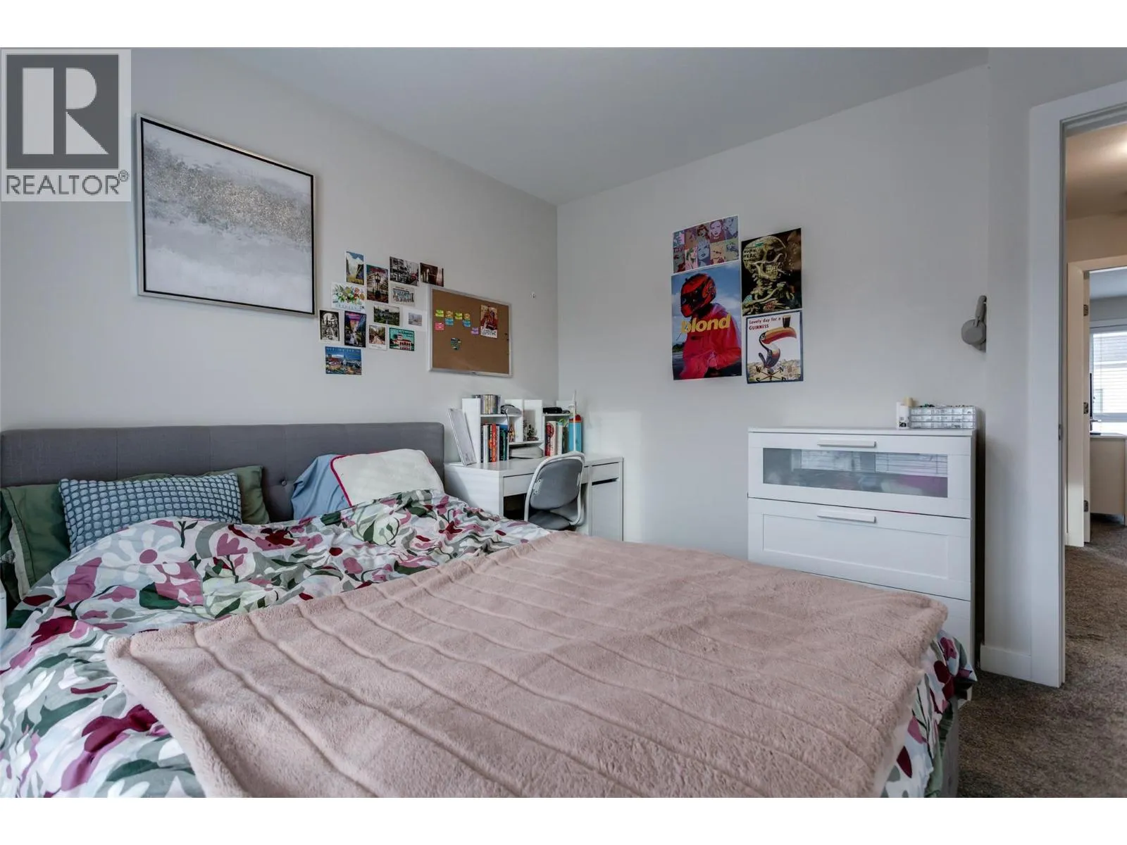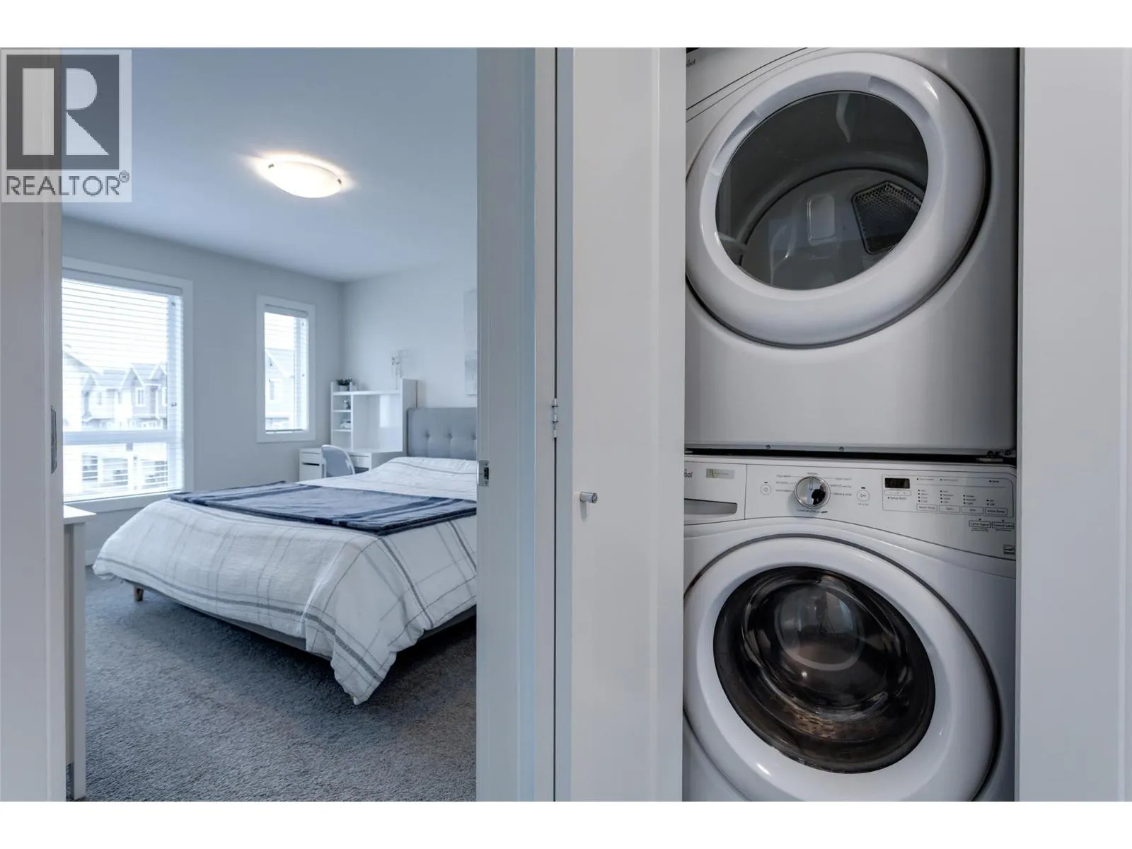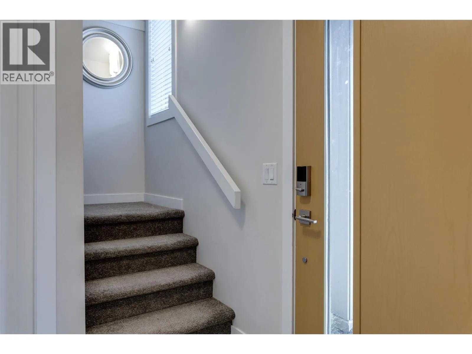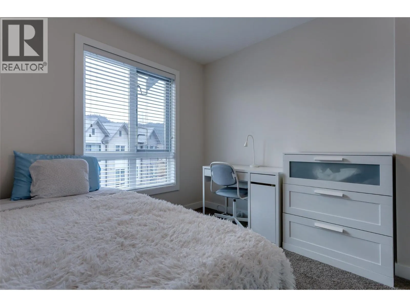 Discover Drysdale Row, a beautiful and thoughtfully created 4-bedroom, 2.5-bathroom townhome in one of North Glenmoreâs most sought-after communities. Offering just under 1,600 sq. ft., the open-concept main level is designed for modern living, with elevated ceilings, a bright & spacious living area, and a gorgeous kitchen at the heart of the home. This home features a wider floor plan and large windows that fill the space with natural light. Situated on a quiet residential street, the sidewalk access leads to a charming front yard. The chef-inspired kitchen showcases a large quartz island with built-in wine storage, stainless steel appliances, and a gas range, flowing seamlessly into the open-concept living and dining areasâideal for entertaining. A deck made for morning coffees or summer BBQs and a stylish 2-piece powder room complete this level. Upstairs offers three spacious bedrooms, a full bathroom, and convenient laundry. The primary suite includes spa-like ensuite and a walk-in closet. The lower level features a fourth bedroom or flex space, perfect for a home office, gym, or hobby room, with direct access to the side-by-side double garage. Located in a family-friendly neighbourhood, it is only a few steps to Dr. Knox Middle School and North Glenmore Elementary, with bus routes to UBCO, and close to parks, trails, shopping, and restaurants. (id:27476)