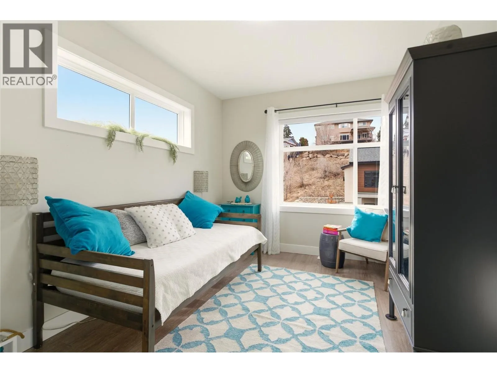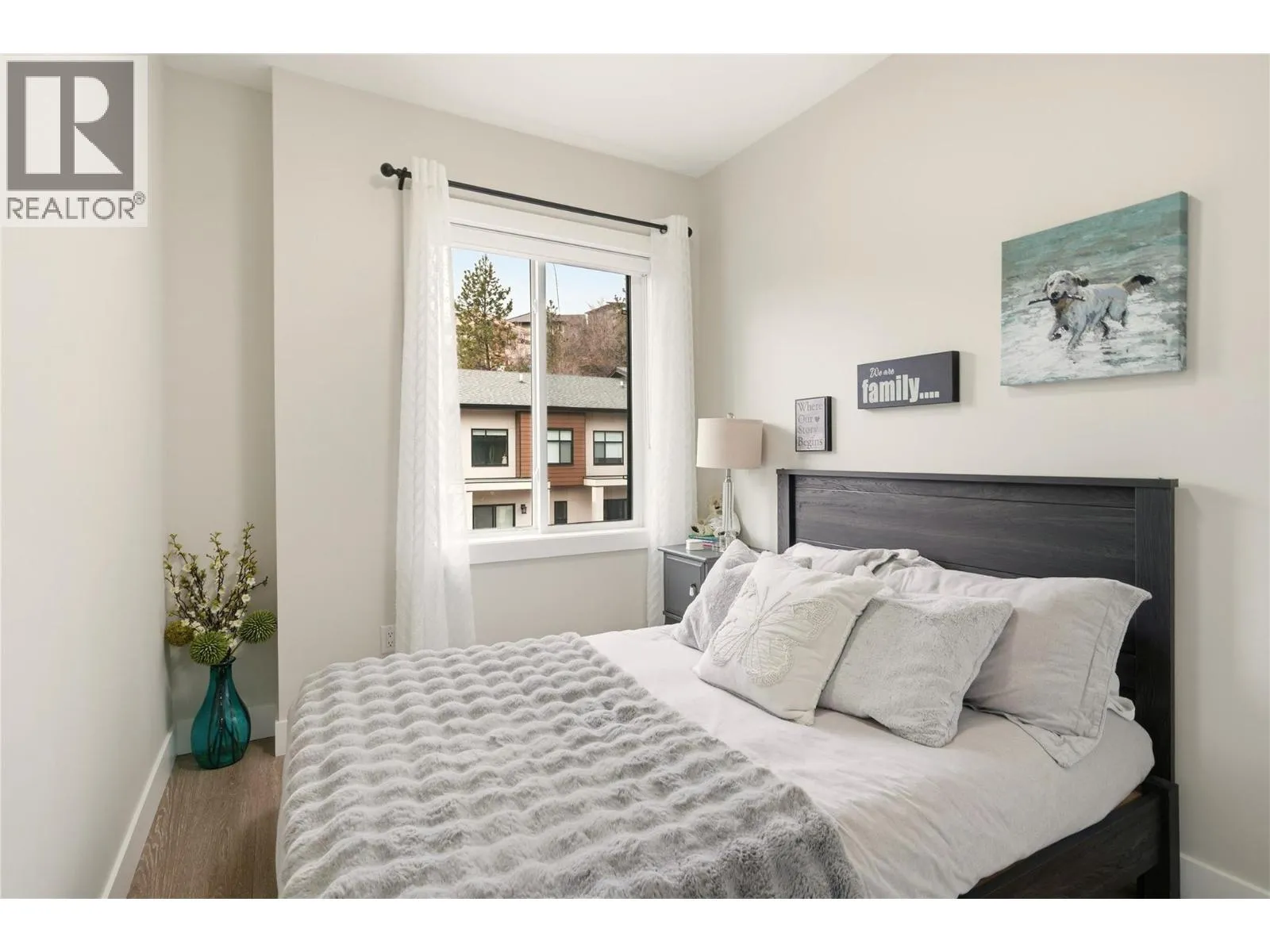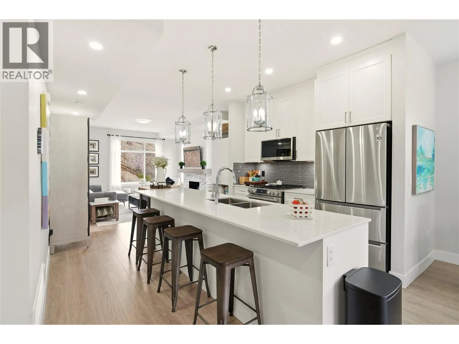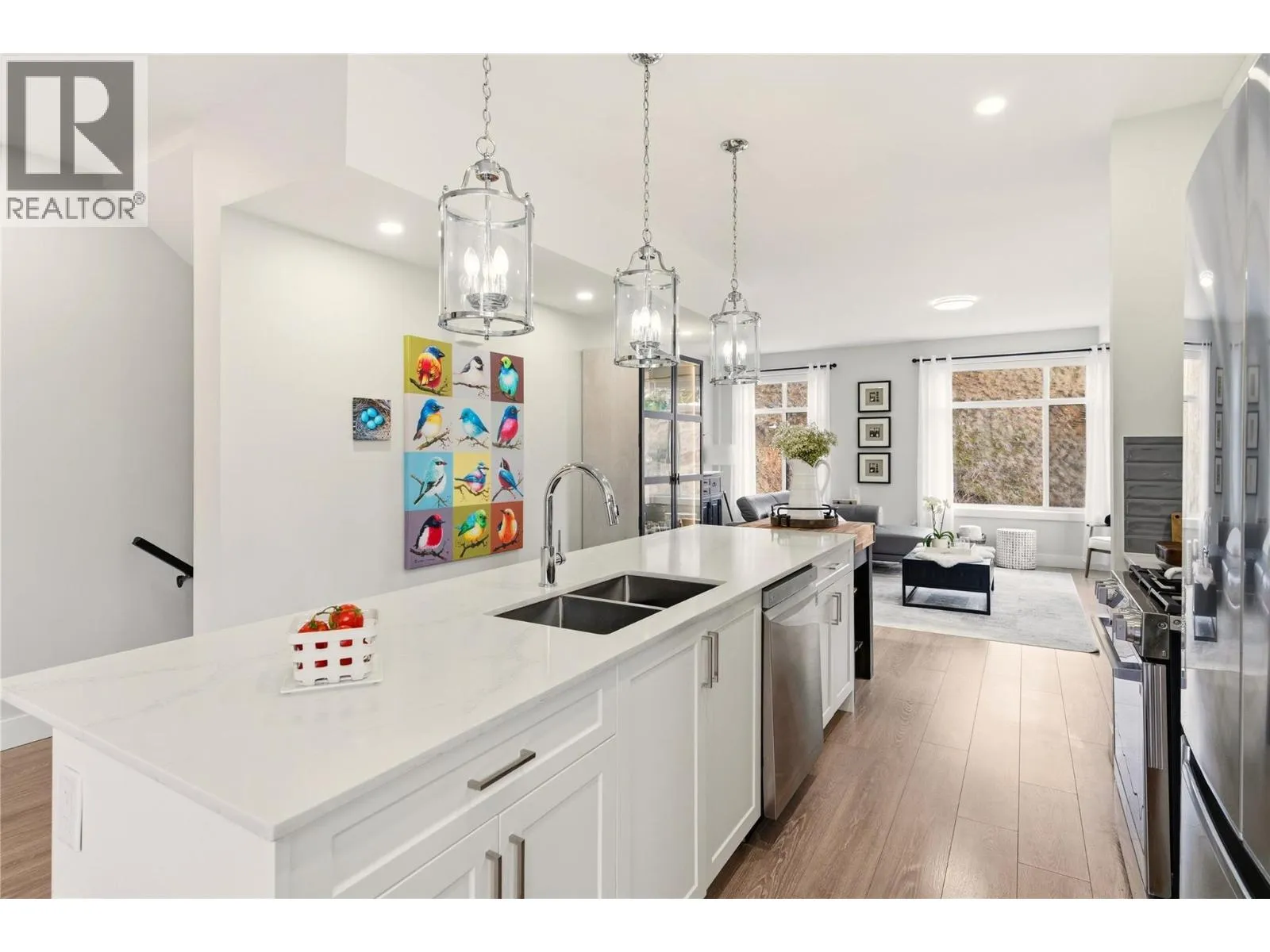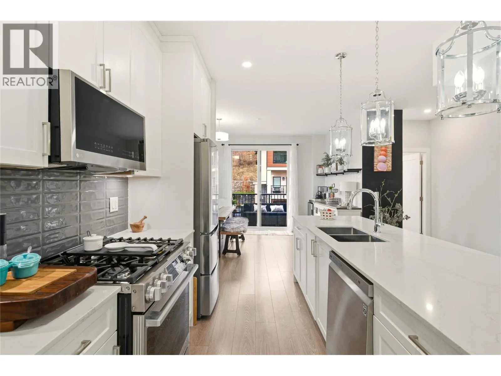 Welcome to Ascend â a beautifully positioned end-unit townhouse in the highly sought-after Black Mountain Golf Course community. Built in 2023, this thoughtfully updated 4-bedroom, 3.5-bathroom home offers nearly 1,900 sq ft of modern living across three levels. Ideally situated within the complex, this end unit enjoys mountain views and offers exceptional privacy along with the most natural sunlight exposure in the development, filling the home with warmth and brightness throughout the day. The open-concept main floor features updated flooring throughout and a bright living space anchored by a stylish electric fireplace with custom mantle. The contemporary kitchen flows seamlessly into the dining area with direct access to the balcony â perfect for entertaining or relaxing while taking in the surrounding views. Upstairs includes three bedrooms, highlighted by a spacious primary suite with a private 3-piece ensuite. The lower level offers a flexible office or fourth bedroom with a full bathroom. A standout opportunity combining desirable end-unit positioning, , multiple upgrades, low strata fees, and modern design just steps from the golf course. (id:27476)