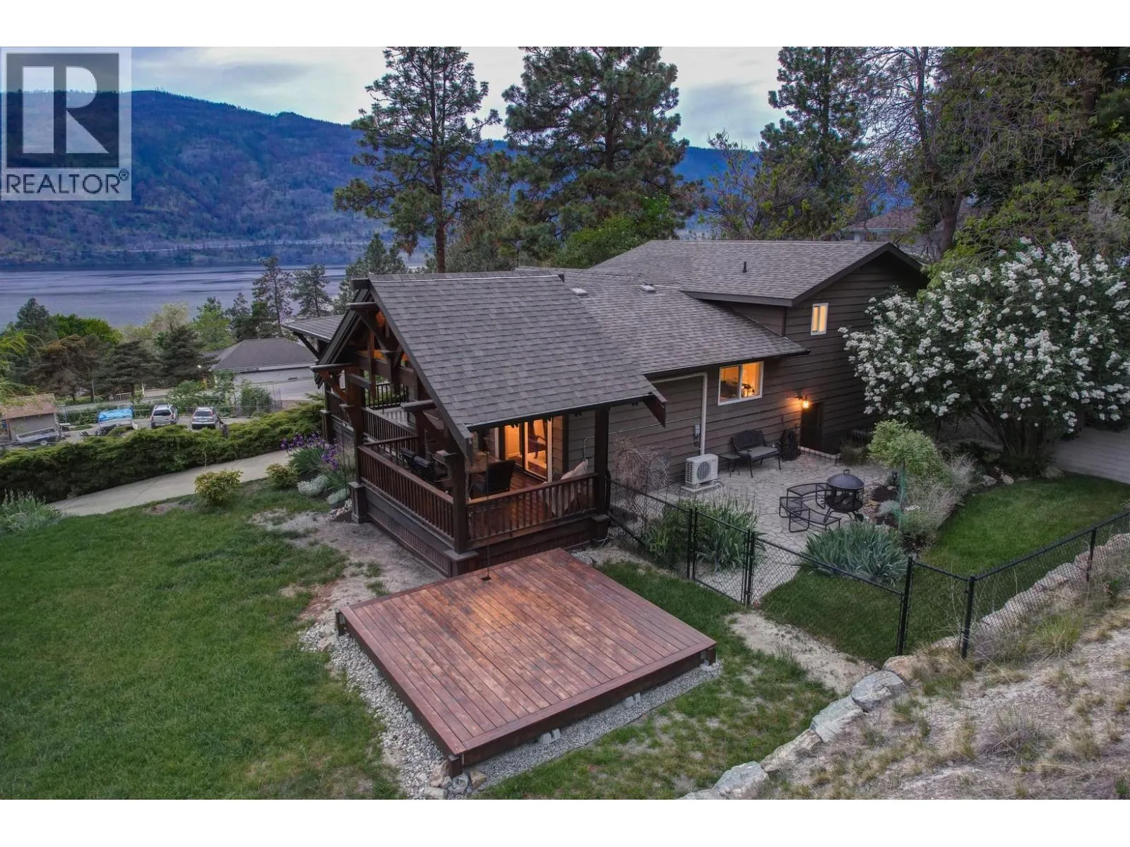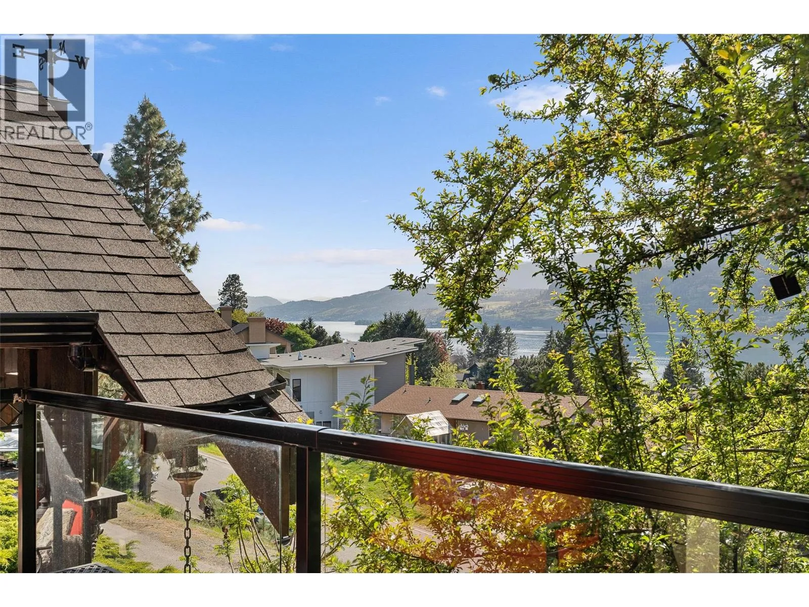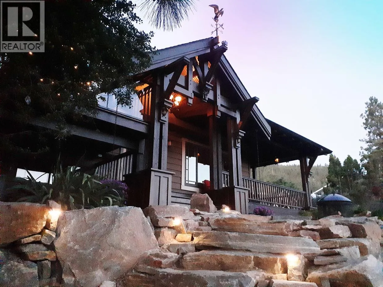 Welcome to this charming timber frame-style home in McKinley Landing, where rustic elegance meets relaxed Okanagan living. Thoughtfully maintained and filled with character, this 4-bedroom, 2-bathroom home offers stunning lake views, a flexible multi-level layout, and a location just a 5-minute stroll to a quiet, sun-drenched public beach with dock access. Inside, warm wood tones, laminate flooring, and high-end carpentry details create a welcoming ambiance. The bright kitchen features a breakfast bar island and built-in desk area, while the living and dining spaces open to a covered wraparound cedar deckâperfect for taking in panoramic views or hosting candlelit evenings under the stars. The upper level boasts a dreamy primary suite with walk-in closet, cozy nook, and 12â sliding doors to a private lakeview deck. A secondary bedroom features a built-in kitchenetteâideal for guests or short-term stays. Downstairs, enjoy two guest bedrooms, a rec room, office with a view, and a fully fenced backyard complete with workshop, storage, and a delightful playhouse. Located on a quiet private road just 10â20 minutes from UBCO, YLW, KGH, and downtown. This is lakeside living with room to grow and space to unwind. Possibly potential to be a bed and breakfast. (id:27476)