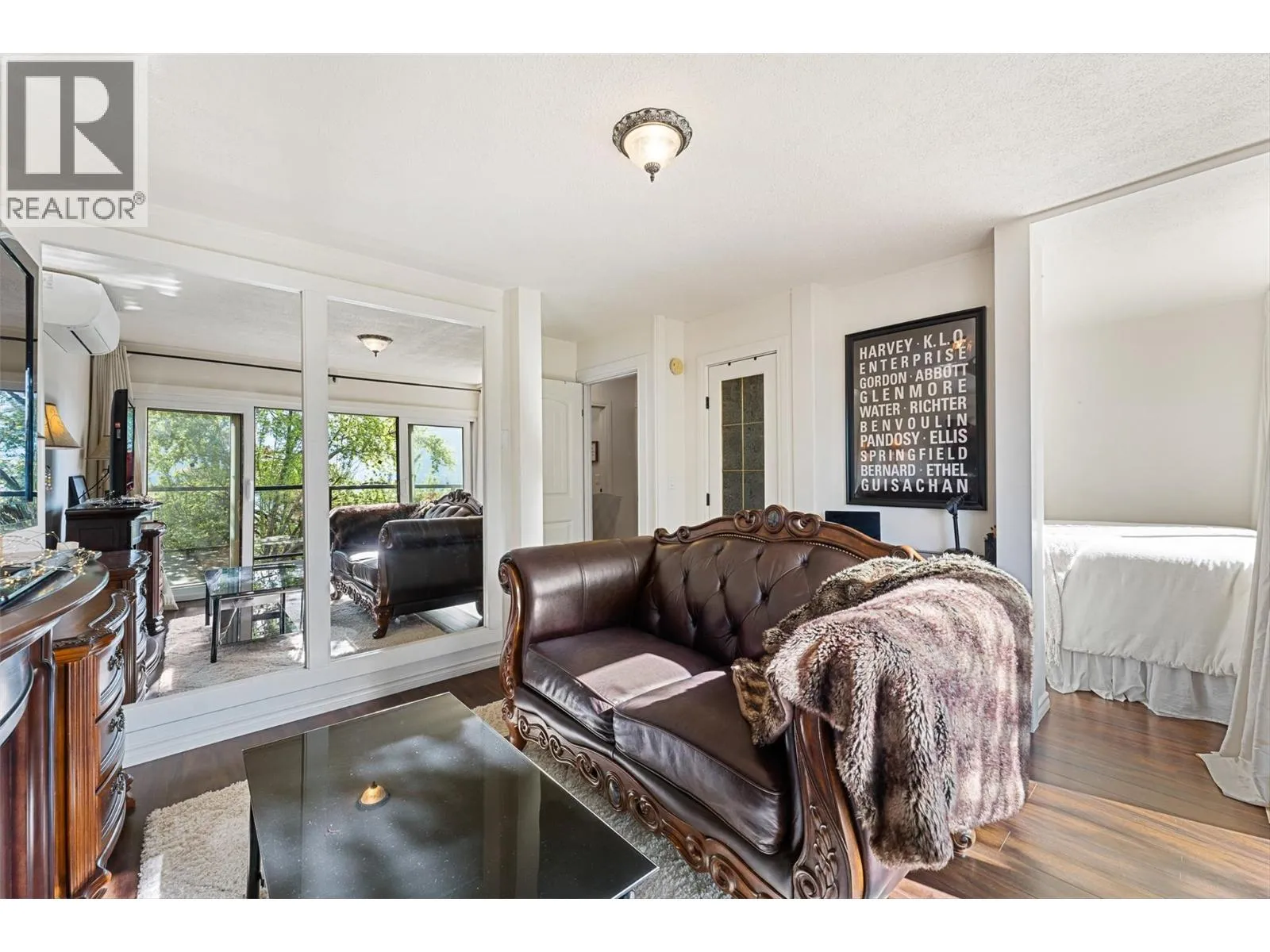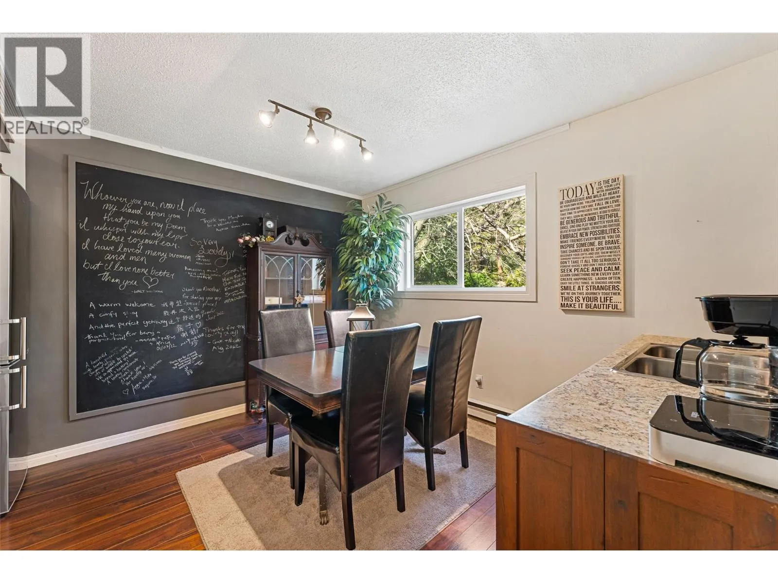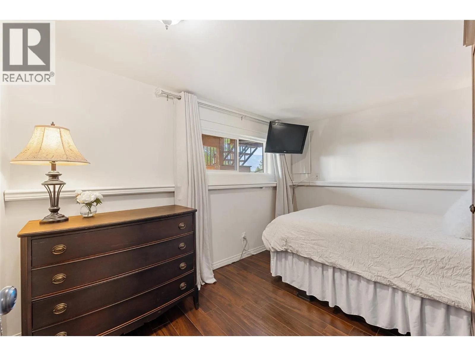 Welcome to this charming timber frame-style home in McKinley Landing, where rustic elegance meets relaxed Okanagan living. Thoughtfully maintained and filled with character, this 4-bedroom, 2-bathroom home offers stunning lake views, a flexible multi-level layout, and a location just a 5-minute stroll to a quiet, sun-drenched public beach with dock access. Inside, warm wood tones, laminate flooring, and high-end carpentry details create a welcoming ambiance. The bright kitchen features a breakfast bar island and built-in desk area, while the living and dining spaces open to a covered wraparound cedar deckâperfect for taking in panoramic views or hosting candlelit evenings under the stars. The upper level boasts a dreamy primary suite with walk-in closet, cozy nook, and 12â sliding doors to a private lakeview deck. A secondary bedroom features a built-in kitchenetteâideal for guests or short-term stays. Downstairs, enjoy two guest bedrooms, a rec room, office with a view, and a fully fenced backyard complete with workshop, storage, and a delightful playhouse. Located on a quiet private road just 10â20 minutes from UBCO, YLW, KGH, and downtown. This is lakeside living with room to grow and space to unwind. Possibly potential to be a bed and breakfast. (id:27476)
