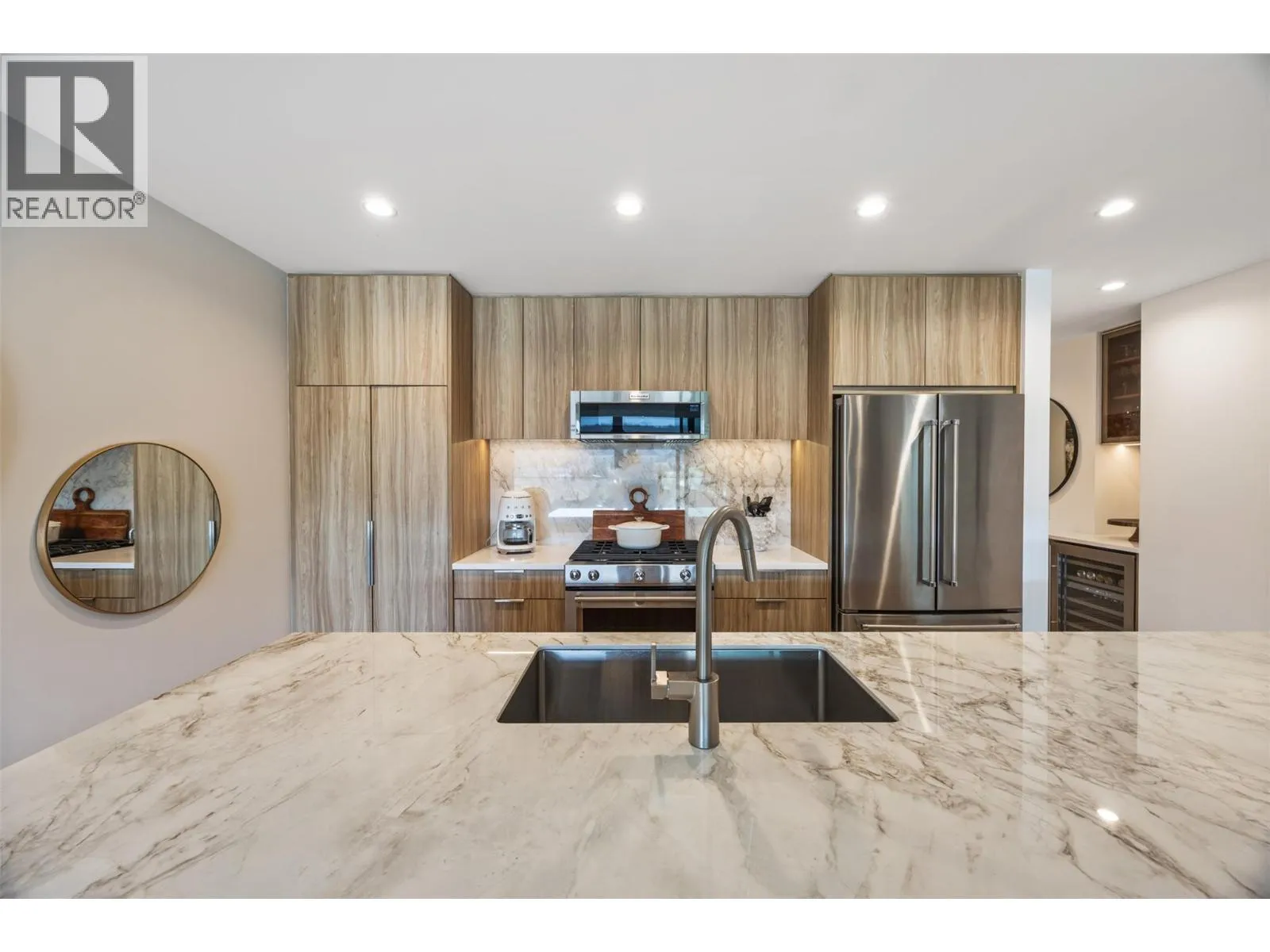 Experience elevated condo living in this exquisite two-bedroom, two-bathroom home at Ariva. From the moment you step inside, youâll be captivated by the attention to detail, high-end finishes, and soothing palette of neutral tones that enhance the sense of space and serenity. The gourmet kitchen is a showstopper, featuring a striking waterfall island, full slab backsplash, gas stove, soft-close cabinetry, and convenient pull-out drawersâall complemented by elegant, neutral finishes. A sleek linear fireplace anchors the open-concept living area, adding warmth and modern style. Enjoy seamless indoor-outdoor living with retractable glass doors that open onto a spacious deckâcomplete with a built-in BBQ, stone fire table, motorized roll-down screensâcreating a warm and inviting space perfect for year-round entertaining. The primary suite offers a peaceful retreat with space for a reading nook, office, or lounge area, a walk-in closet, and a spa-inspired ensuite featuring dual vanities, quartz countertops, a deep soaking tub, and a glass-enclosed showerâall in calming, neutral tones. The second bedroom offers flexible use (no window or closet), while the stylish main bathroom and a separate laundry room with additional storage complete the layout. Additional features include motorized blinds, a Control4 smart home system with integrated lighting and audio, and access to Arivaâs exceptional amenities: outdoor pool and hot tub, fitness centre, pickleball court, yoga studio, steam room, and a stunning lakeview resident lounge and terrace. Live the Okanagan lifestyle you deserve at Ariva. (id:27476)