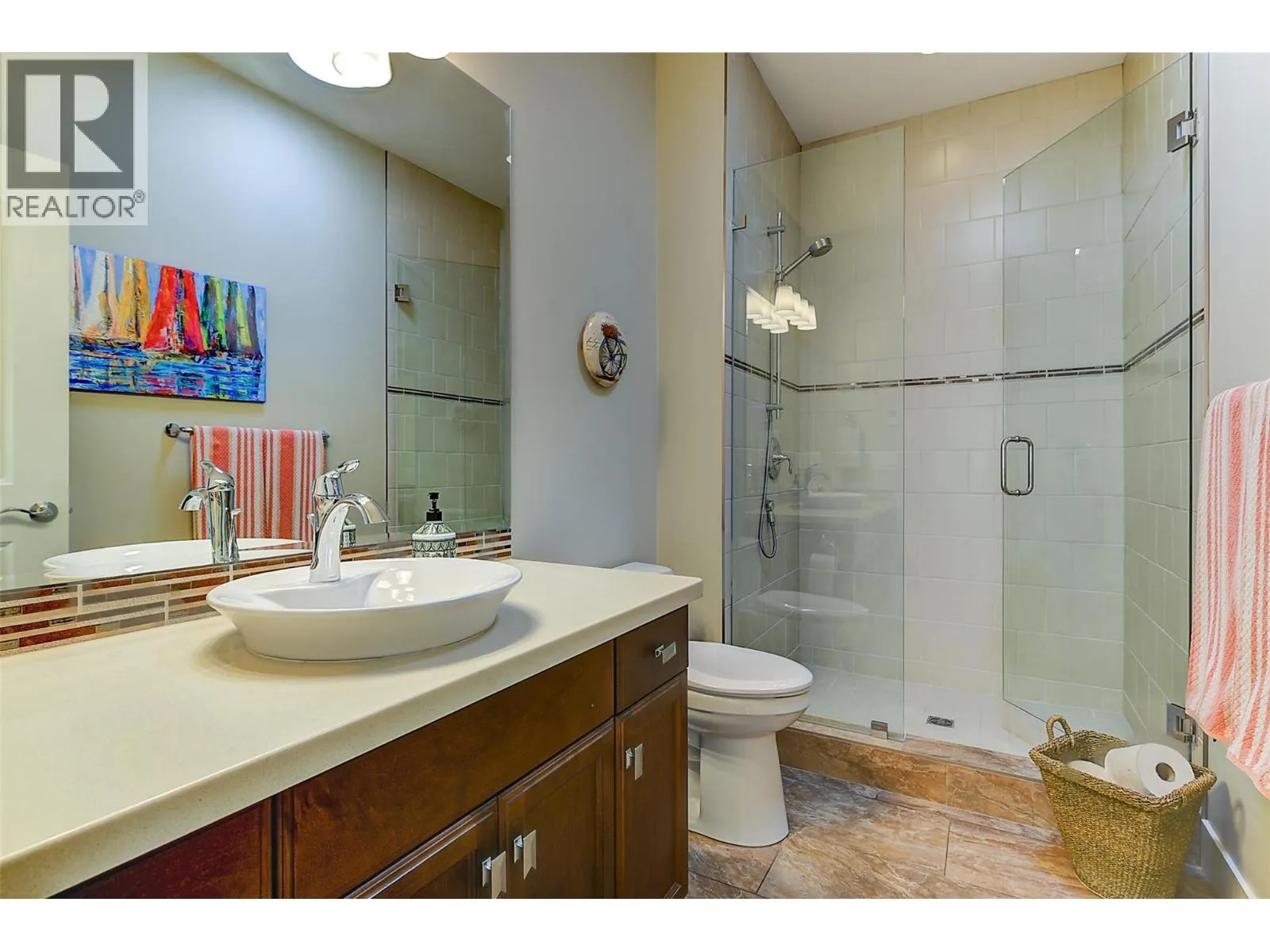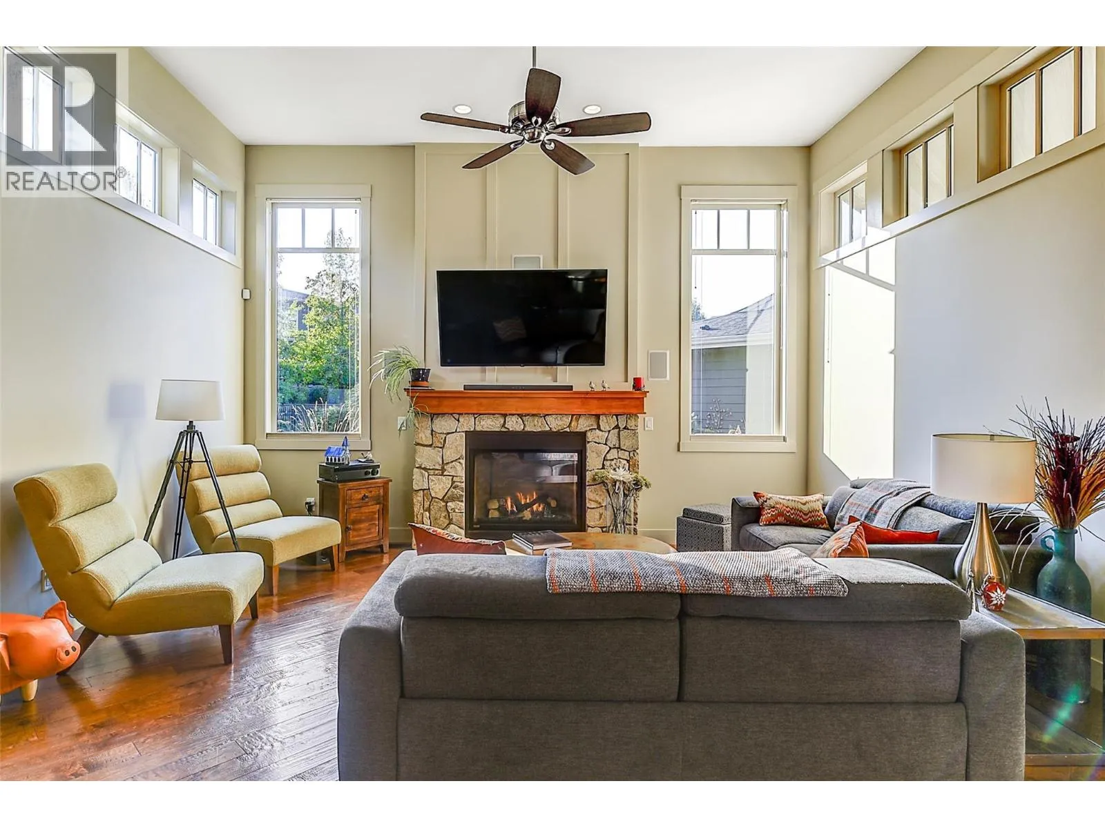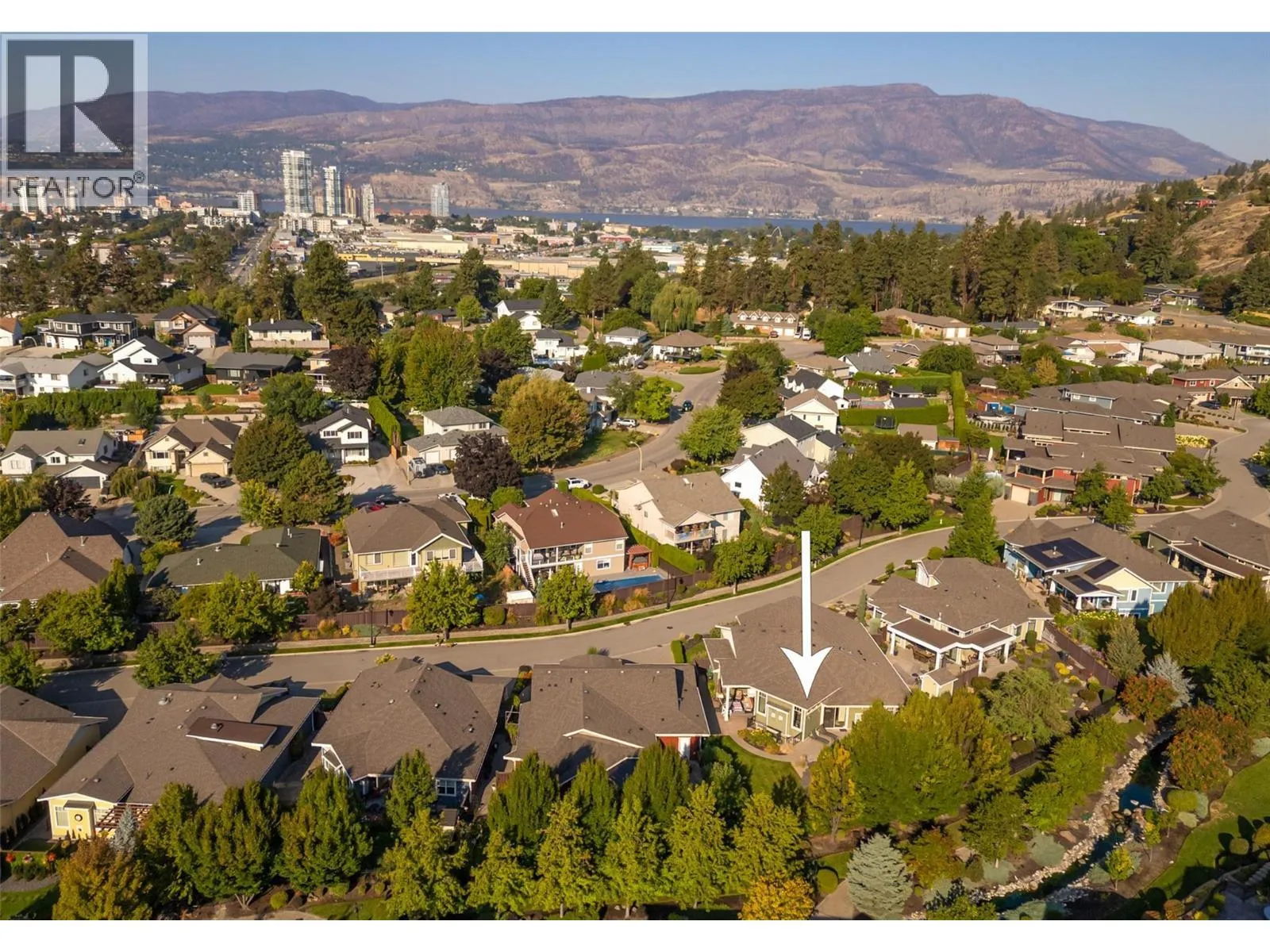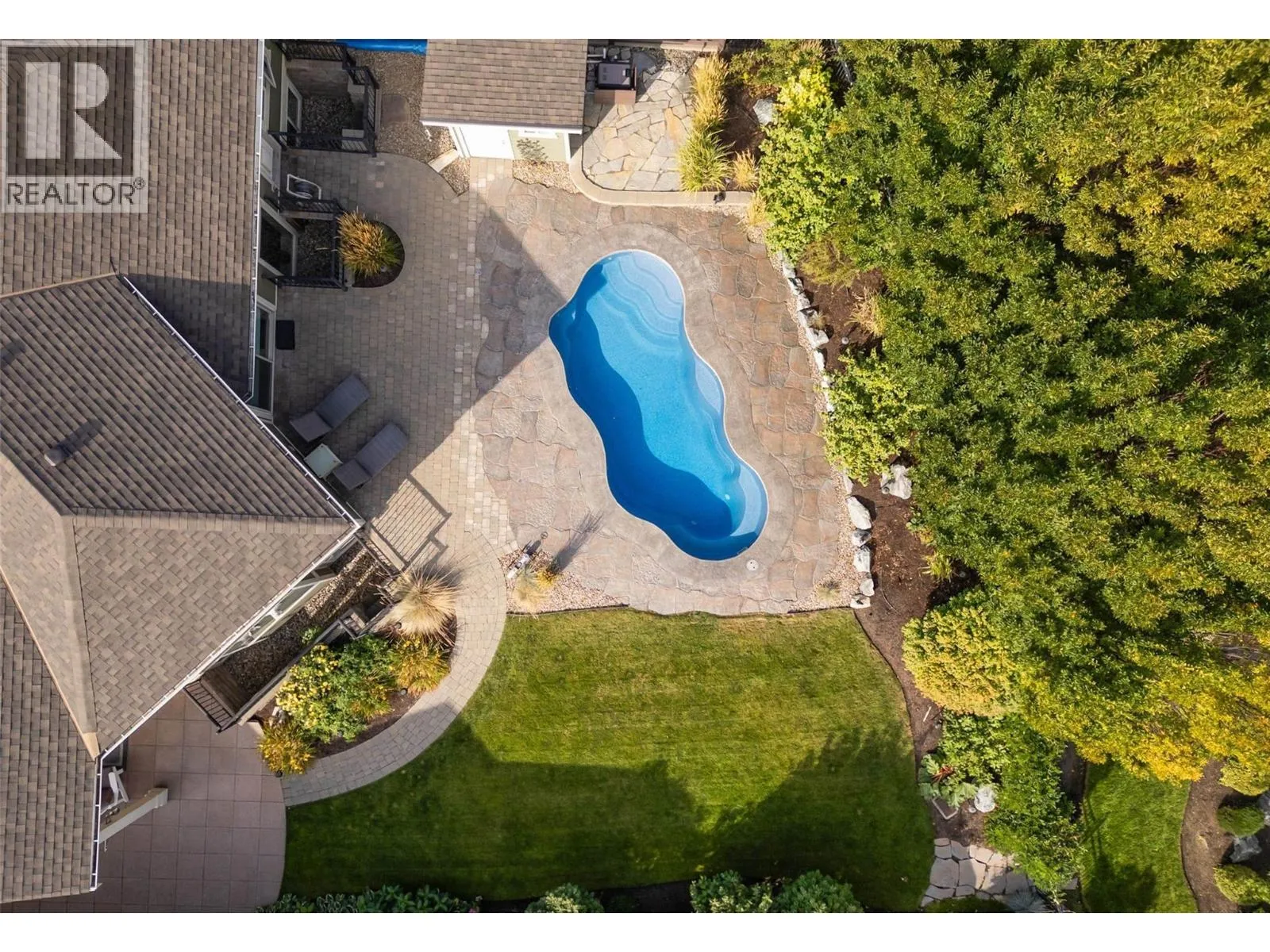 This award-winning home is designed for those who value both elegance and lifestyle, with the backyard as its crown jewel. Just minutes from downtown Kelowna, this property showcases a private resort-style oasis where every day feels like a getaway. The sparkling in-ground saltwater pool is surrounded by expansive stamped concrete patios, vibrant landscaping, and multiple lounge areas that flow seamlessly from sun-soaked relaxation to shaded retreats - creating the perfect setting for lively gatherings, quiet evenings under the stars, or weekend pool parties with friends and family. Inside, soaring ceilings and timeless hardwood anchor an open-concept design centered on a Westwood custom kitchen with granite counters, oversized island, and professional-grade appliances. The dining and Living areas, complete with a feature gas fireplace, connect effortlessly to the outdoor lounge, extending the Living space. The king-sized primary suite offers a lavish walk-in closet, heated floors, double vanities, a custom shower, and a soaker tub, while a second bedroom with a wall bed/desk and private entrance makes the perfect guest suite or office. A second bath and laundry complete the main level, while the finished lower level impresses with a massive recreation space, full wet bar, office, media/games room, bedroom, and bath. Additional highlights include a triple tandem garage, owned geothermal system, and a pet-friendly community with landscaped pathways and ponds. (id:27476)