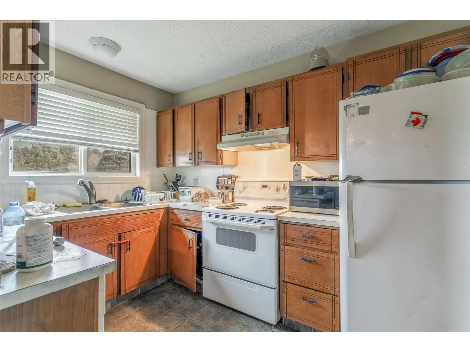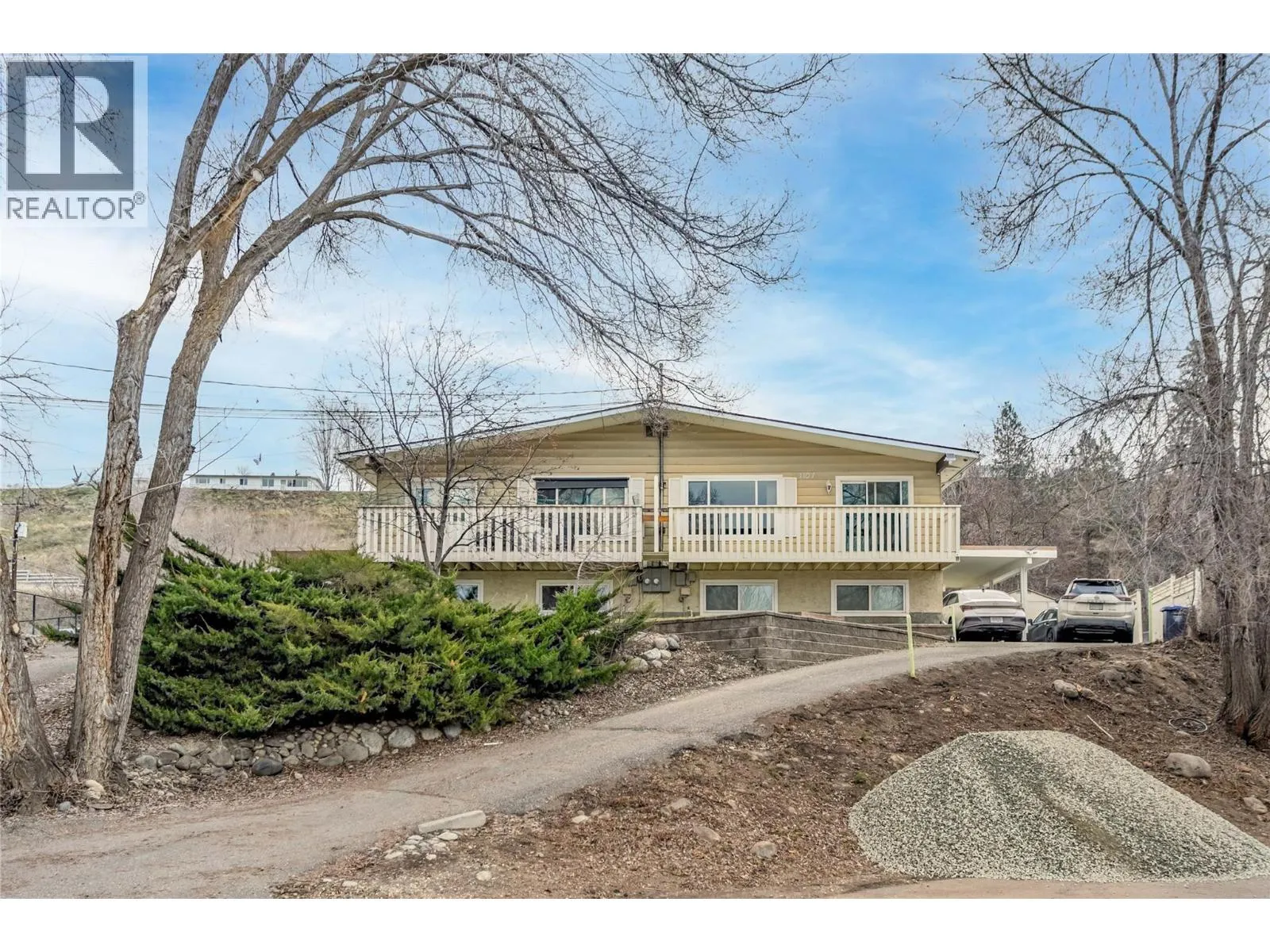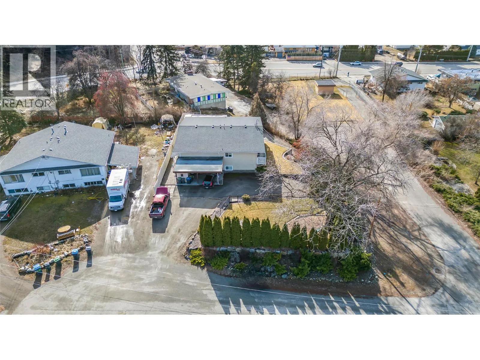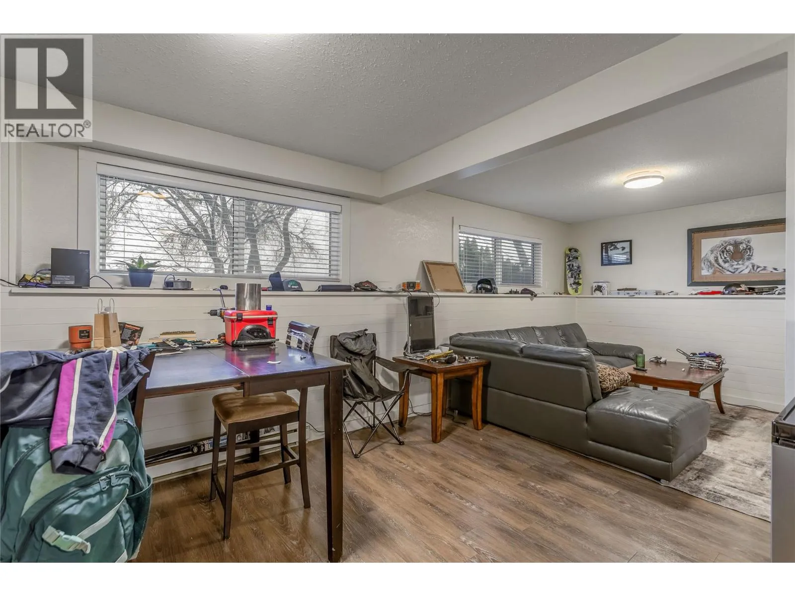HUGE POTENTIAL with a little cosmetic elbow grease (see potential virtual photos). Half duplex in Rutland South, ideal for first-time home buyers and investors. New roof and gutters in 2024. The main level offers 2 bedrooms and 1 full bathroom. Lower level features a self-contained 2 bedroom, 1 bathroom suite with SEPARATE entrance, offering flexible living options or mortgage helper potential. Both units have baseboard heating, laundry and vinyl windows. Lower level has been updated in 2023. Property includes excellent parking, storage sheds, and a substantial fenced green space. No Strata Fees and shared building insurance. Conveniently located close to schools, transit, shopping, and parks. Neighboring property is the proposed site of the Hindu Society Cultural Centre which is planning to have a daycare. Future potential for redevelopment as well. Please not that some photos have been virtually staged to show potential and lower suite pictures have been virtually decluttered of tenants personal items. (id:27476)