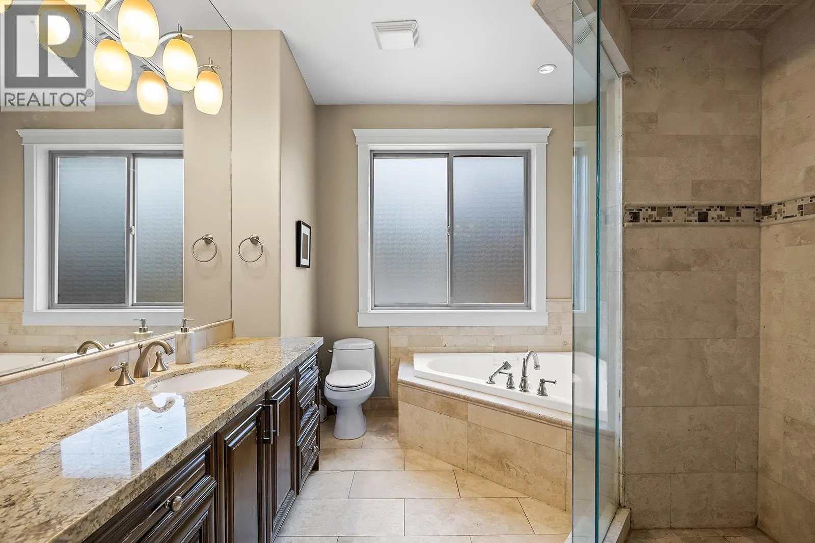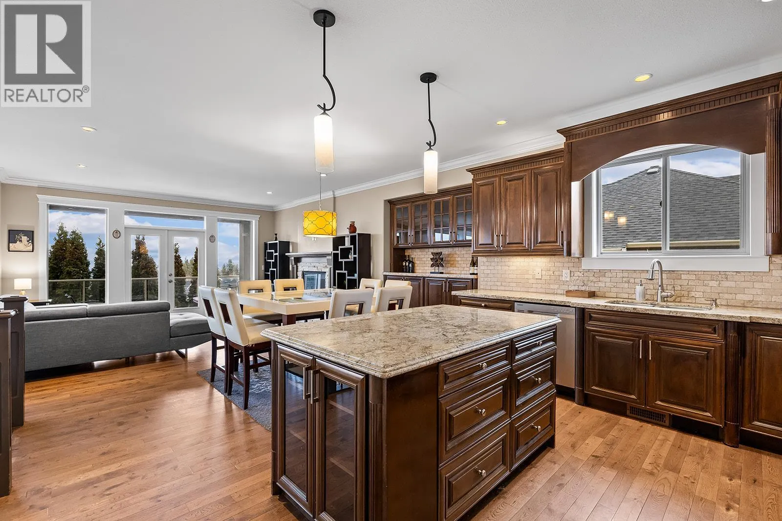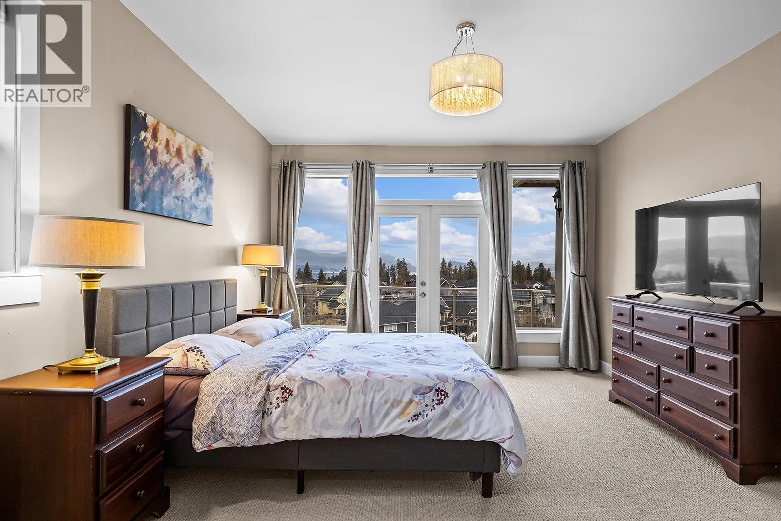 Stunning 4 bedroom, 3.5-bath residence with a dedicated office and recently added theatre room, thoughtfully crafted for comfortable living and effortless entertaining. From the moment you enter, youâre welcomed by breathtaking panoramic views of the city, surrounding mountains, and the tranquil lake, creating an unforgettable backdrop throughout the home. The bright, contemporary kitchen is a true centerpiece, showcasing granite countertops, stainless steel appliances, and an oversized island ideal for cooking, hosting, and gathering with family and friends. The open-concept design connects the kitchen to the dining and living areas, flowing seamlessly onto a covered patio for convenient year-round enjoyment. The spacious primary suite offers a private retreat, complete with its own deck, generous walk-through closet, and a spa-inspired ensuite featuring a steam shower and jetted soaker tub. The lower level expands your living space with two additional bedrooms, a versatile recreation area with wet bar, and a newly added bedroom with a full ensuite, perfect for guests or extended family. A recently converted theatre room provides the ultimate entertainment experience and can easily adapt to suit your needs. Outdoors, beautifully landscaped gardens, multiple decks, and a welcoming front patio with pergola create inviting spaces to relax and unwind. Meticulously cared for and move-in ready, this exceptional home showcases true pride of ownership inside and out. (id:27476)