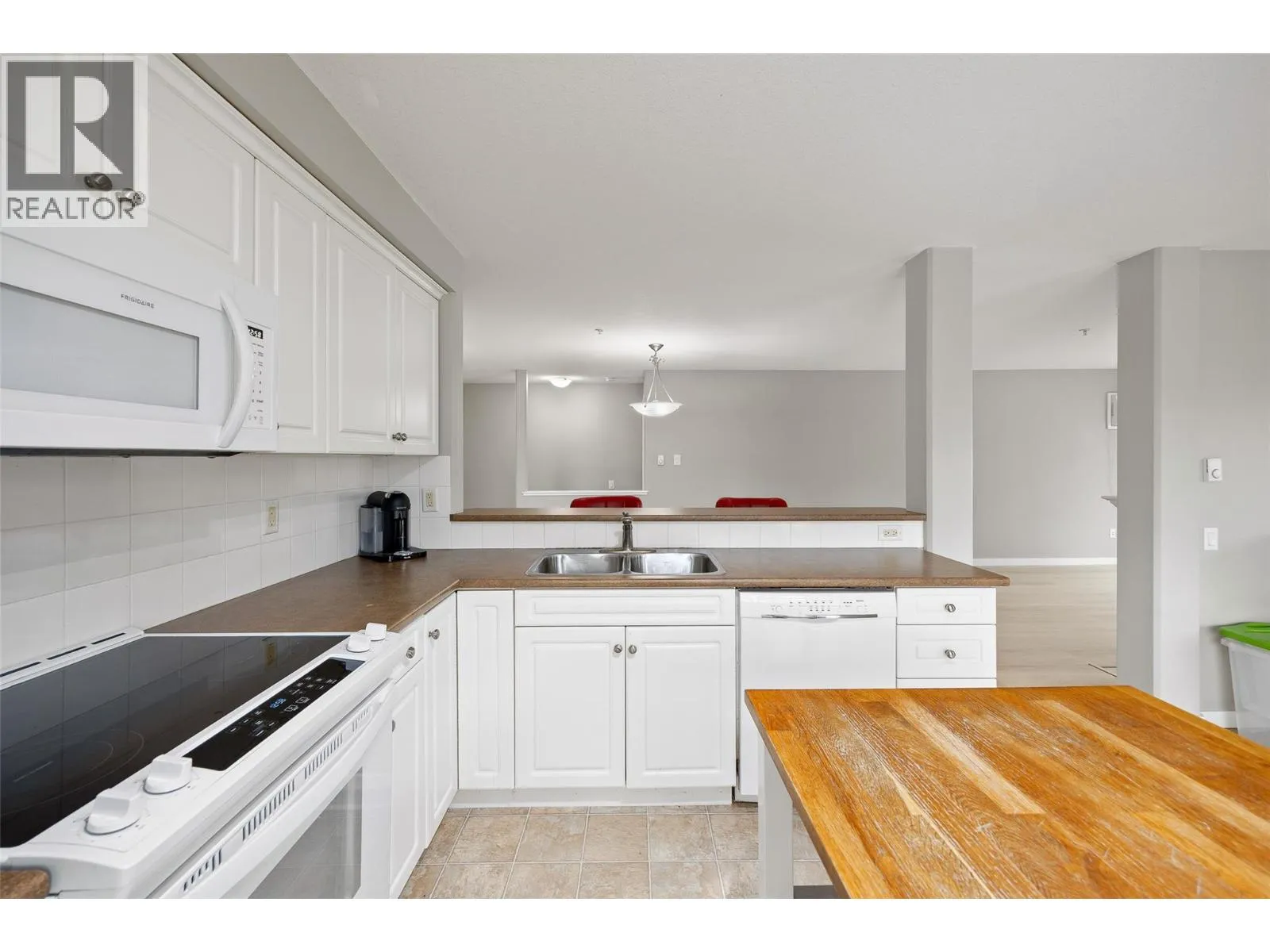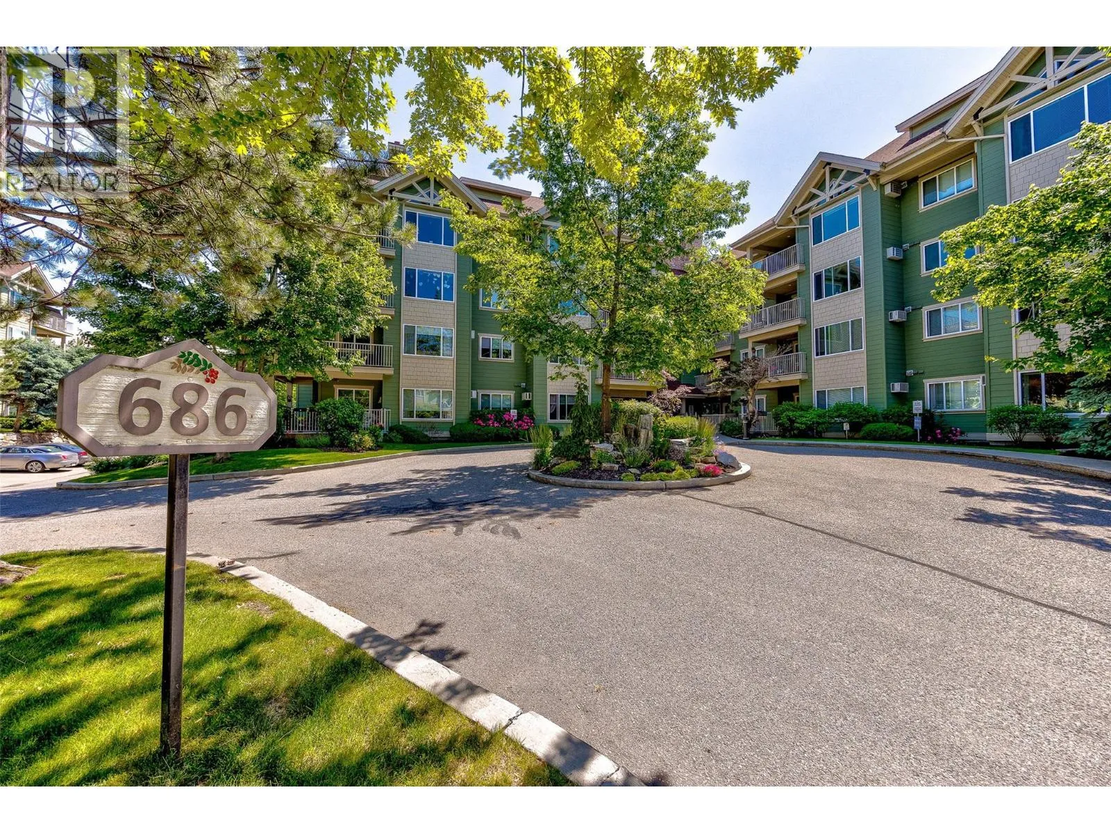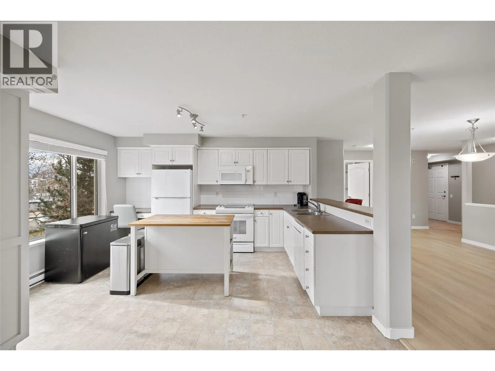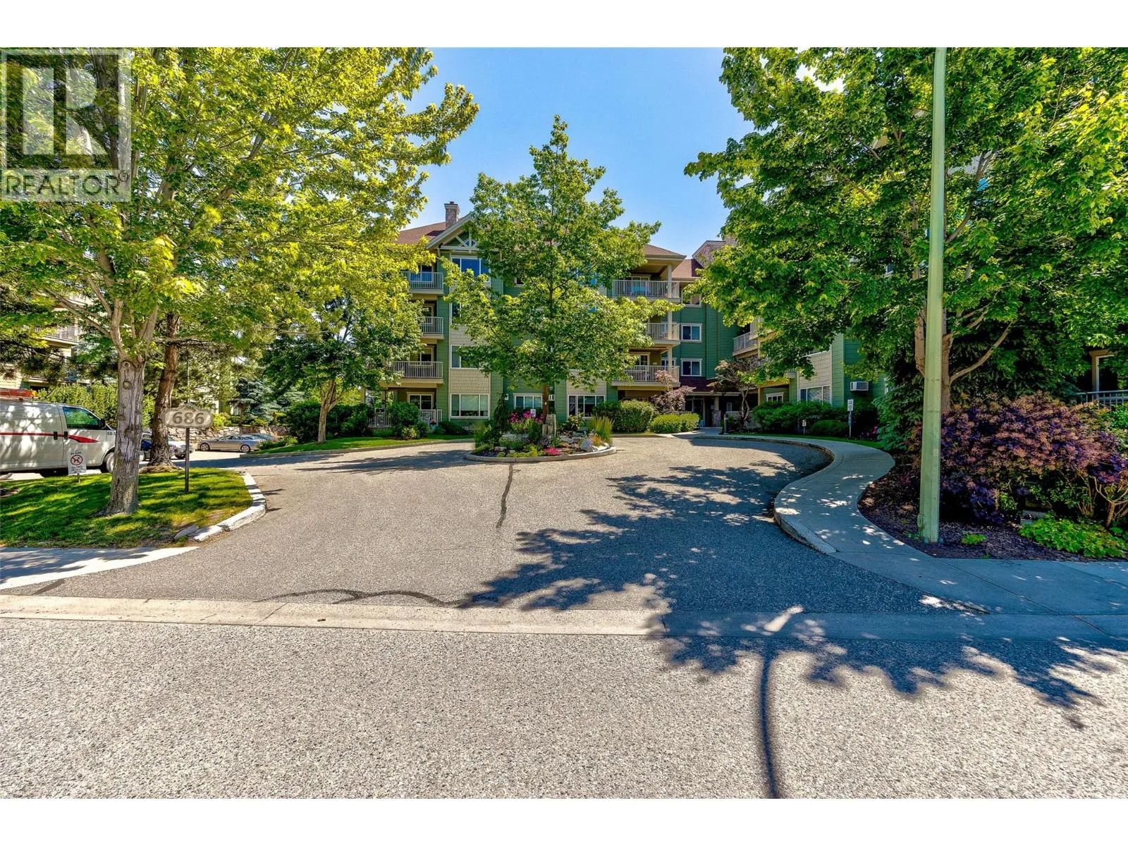The Ultimate Lower Mission Lifestyle. This bright 2-bed corner unit in Wildwood Village is fully refreshed with new flooring, fresh paint, and updated appliances. The open-concept layout flows onto a massive wrap-around patioâperfect for entertaining. Enjoy a premier Okanagan location: steps to the beach, H2O Centre, golf courses, and wineries. Includes a cozy fireplace, A/C, underground parking, and a building guest suite. Modern, spacious, and move-in ready. Pet & Rental friendly. Truly a must-see! (id:27476)