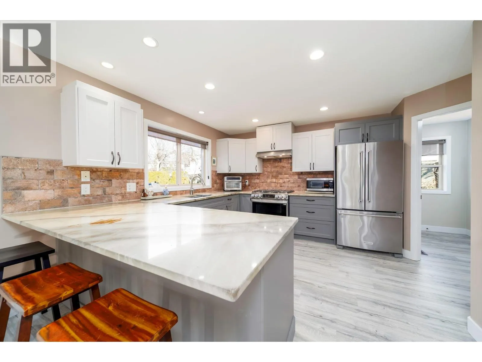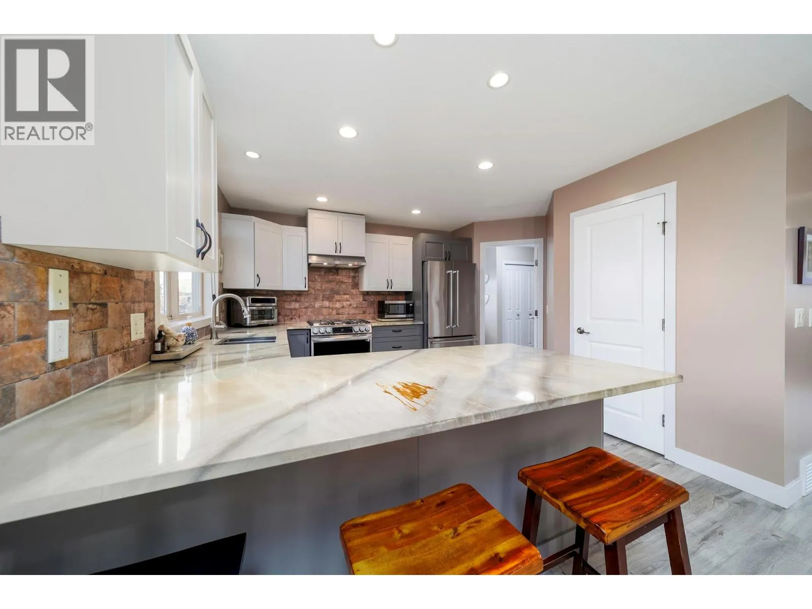 Spacious two-storey home with a detached double garage and self-contained carriage suite, set on a flat, fully fenced 0.21-acre lot in a quiet cul-de-sac. The main residence offers 1,758 sq.ft. with 3 bedrooms and 2.5 bathrooms, plus a studio-suite above the garage, bringing total finished space to 2,322 sq.ft. The main floor shows bright and refreshed with 2024 updated flooring, replaced baseboards, and refaced fireplaces. The kitchen has been updated with new countertops, sink and faucets, gas range, newer stove and dishwasher (approx. 3 years), and connects easily to the dining area and backyard patio. A mudroom and main floor laundry add everyday function. Upstairs, the primary suite features a walk-in closet and 5-piece ensuite. The two additional bedrooms share a full 4-piece bathroom with updated mirrors, sinks, toilets, and cabinet doors. Major improvements include a 2019 furnace and central A/C, updated central vacuum, refreshed bathrooms, and suite updates including countertops, sink, faucet, bathroom improvements, and updated hot water tank. The detached garage and suite both offer electric heat. Located close to schools, parks, transit and everyday amenities. (id:27476)
