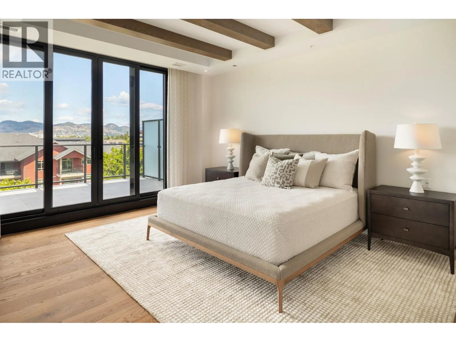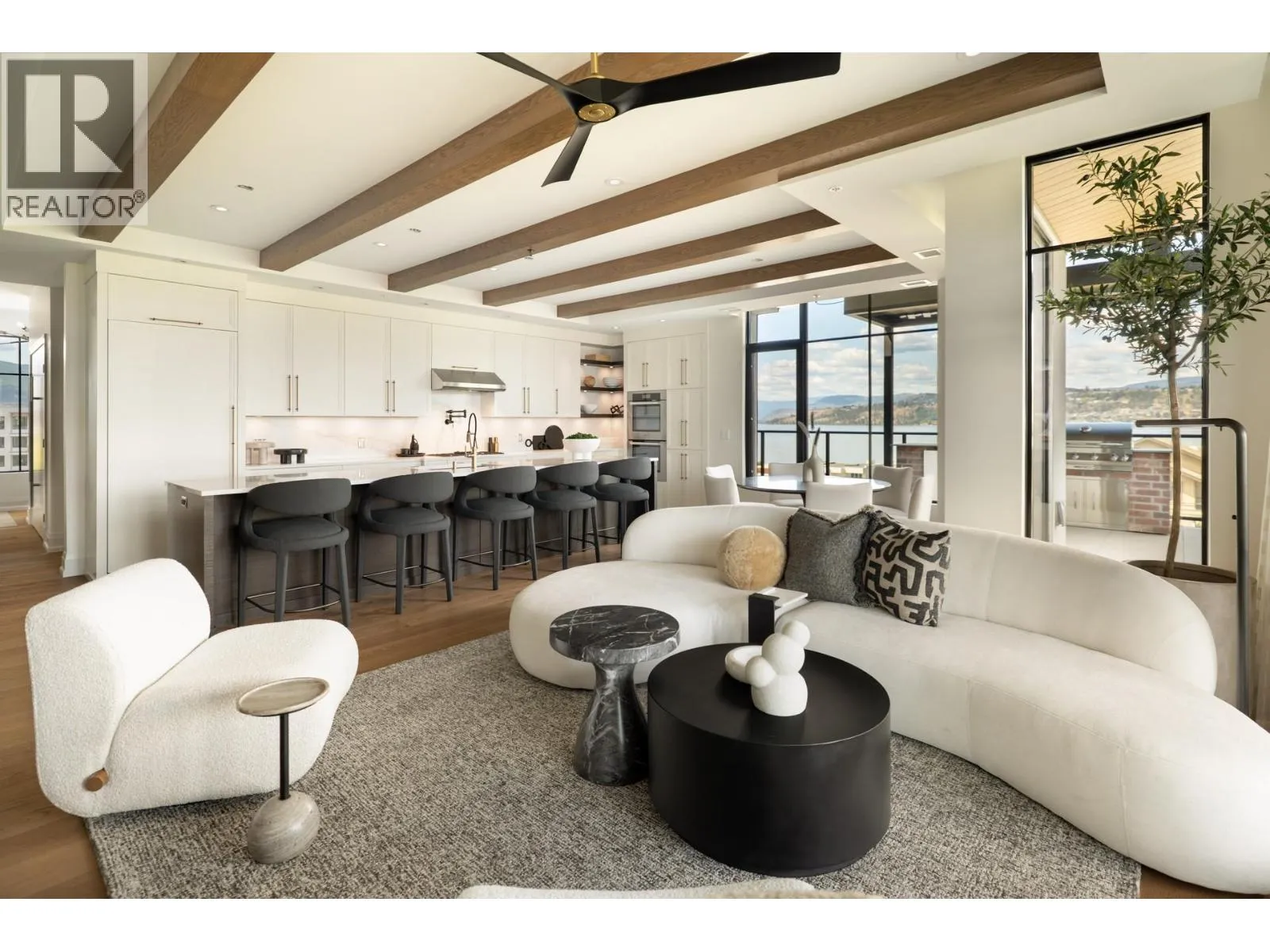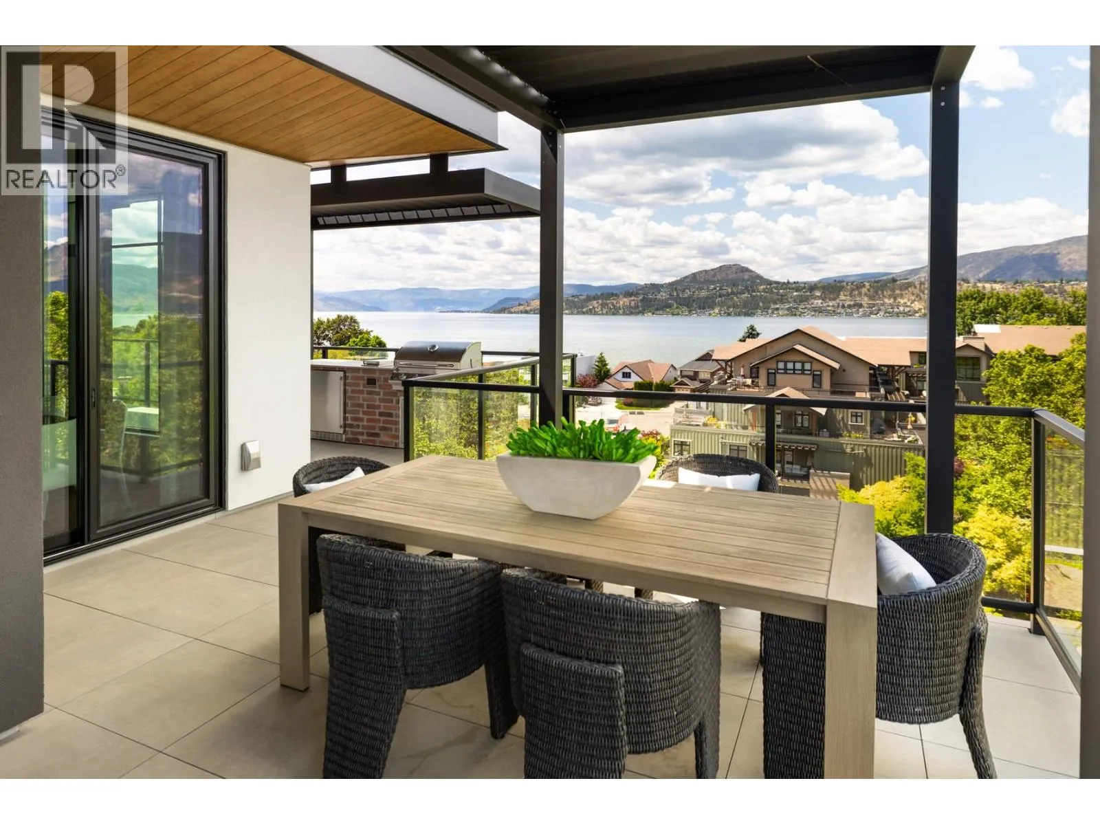 Unit 601 - 450 Parc: Award-Winning Penthouse Living in South Pandosy. Crowning the vibrant Pandosy neighbourhood, this one-of-a-kind penthouse offers over 2,260 sq ft. of interior space & 1,000 plus sq ft. of outdoor living. Designed for those who value elegance & ease, the 3-bedroom, 4-bath residence blends contemporary luxury w/panoramic views of Okanagan Lake, the city, & surrounding mountains. Part of an award-winning development recognized with 4 Gold Awards, including Best Condominium Community in B.C., 450 Parc is celebrated for exceptional design, craftsmanship, & livability. Soaring 10-foot ceilings, wide-plank oak floors, & exposed beams create a upscale ambiance. The chefâs kitchen features a Miele fridge, four Sub-Zero freezer drawers, double Miele wall ovens, quartz counters, & a generous islandâperfect for entertaining. A glass-enclosed wine room is ready for customization & a wet bar complete the space. The primary suite is a true retreat with dual walk-in closets, a spa-like ensuite, & access to the terrace, where a saltwater hot tub is coming soon. Two additional bedrooms with private ensuites, a powder room, & full laundry round out the layout. Enjoy outdoor living with a built-in kitchen, Jackson Grills BBQ, fire table, & automated louvred pergolas. Smart tech includes Control4 automation, motorized blinds, designer lighting & EV-ready parking. Private and set in one of Kelownaâs most walkable areas, this penthouse elevates luxury living. (id:27476)