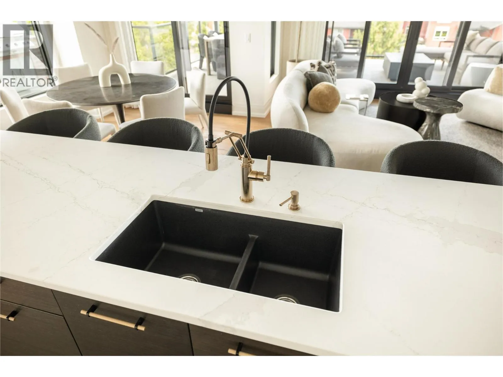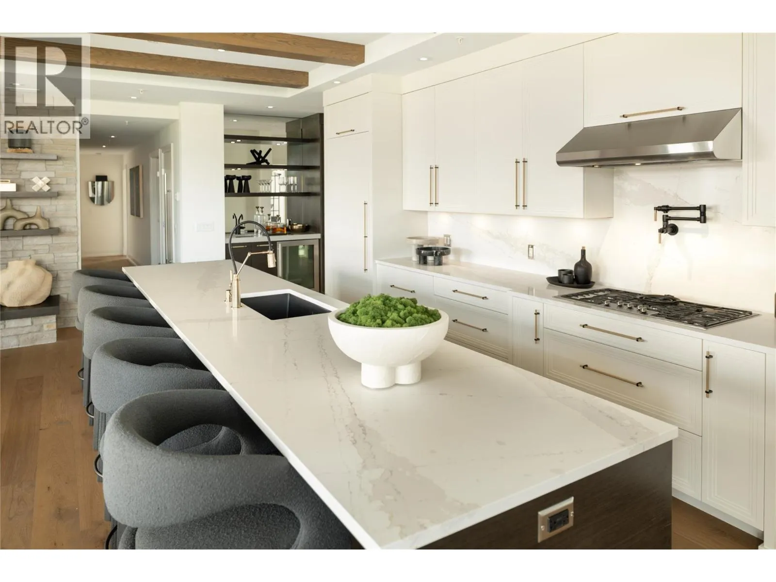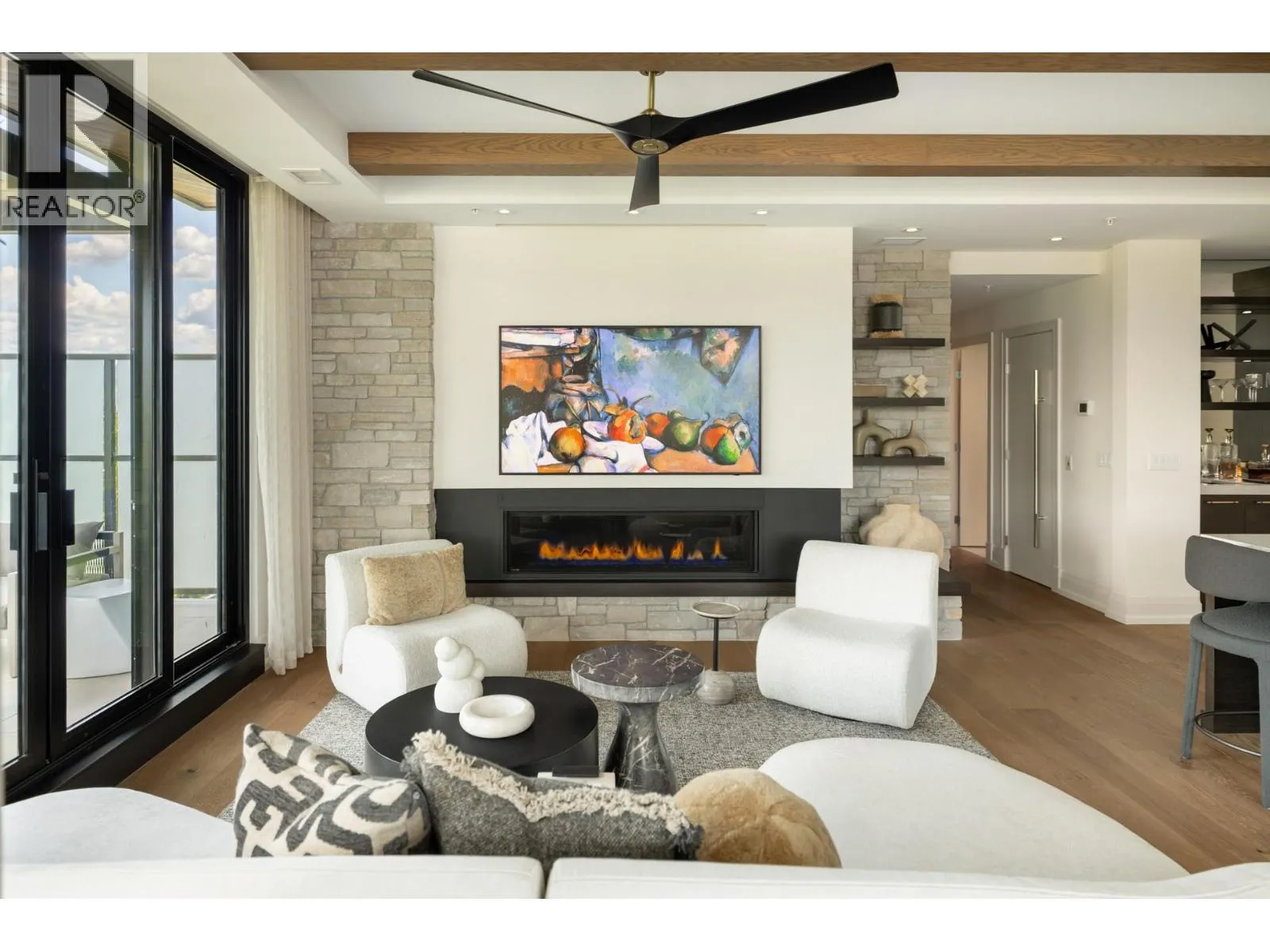Unit 601 - 450 Parc: Award-Winning Penthouse Living in South Pandosy. Crowning the vibrant Pandosy neighbourhood, this one-of-a-kind penthouse offers over 2,260 sq ft. of interior space & 1,000 plus sq ft. of outdoor living. Designed for those who value elegance & ease, the 3-bedroom, 4-bath residence blends contemporary luxury w/panoramic views of Okanagan Lake, the city, & surrounding mountains. Part of an award-winning development recognized with 4 Gold Awards, including Best Condominium Community in B.C., 450 Parc is celebrated for exceptional design, craftsmanship, & livability. Soaring 10-foot ceilings, wide-plank oak floors, & exposed beams create a upscale ambiance. The chefâs kitchen features a Miele fridge, four Sub-Zero freezer drawers, double Miele wall ovens, quartz counters, & a generous islandâperfect for entertaining. A glass-enclosed wine room is ready for customization & a wet bar complete the space. The primary suite is a true retreat with dual walk-in closets, a spa-like ensuite, & access to the terrace, where a saltwater hot tub is coming soon. Two additional bedrooms with private ensuites, a powder room, & full laundry round out the layout. Enjoy outdoor living with a built-in kitchen, Jackson Grills BBQ, fire table, & automated louvred pergolas. Smart tech includes Control4 automation, motorized blinds, designer lighting & EV-ready parking. Private and set in one of Kelownaâs most walkable areas, this penthouse elevates luxury living. (id:27476)