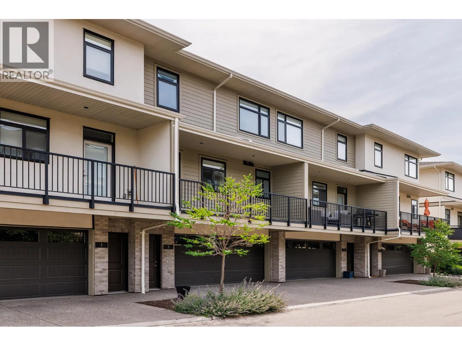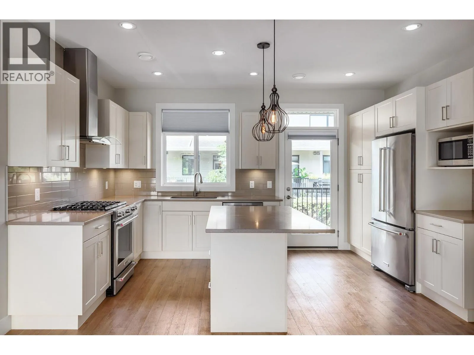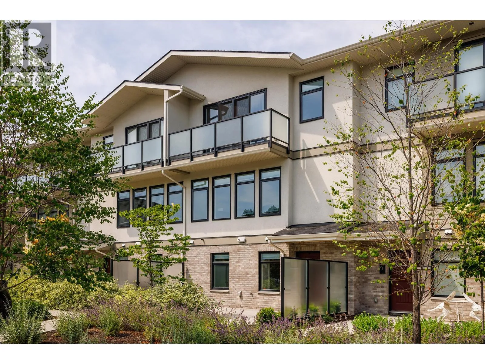 Move in Ready! Modern 3 level townhome offering 4 bedrooms and 4 bathrooms, in Cameron Mews, this sought-after Lower Mission neighbourhood. The lower level features a two-car side by side garage, a spacious foyer, and bedroom with an ensuite, ideal for guests or a home office. The chef-inspired kitchen features sleek quartz countertops, a large island, stainless steel appliances, and a gas range. The open-concept layout features 9' ceilings, large windows and seamlessly connects the kitchen to the living and dining areas, creating the perfect space for entertaining or relaxing. Step outside to the covered patio, complete with a NG BBQ hookup, for outdoor dining. Upstairs, the spacious primary suite offers a private balcony, a 4-piece ensuite, and a generous closet. Two additional bedrooms, a full 4-piece bath, and convenient laundry complete the upper level. Located just across from Guisachan Village Centre, this home offers unbeatable access to shopping, restaurants, cafes, great schools, H2O fitness Centre and the shores of Okanagan Lake. With its modern design and prime location, this townhome is a rare opportunity. THIS ONE IS AVAILABLE AND EASY TO SHOW! (id:27476)
