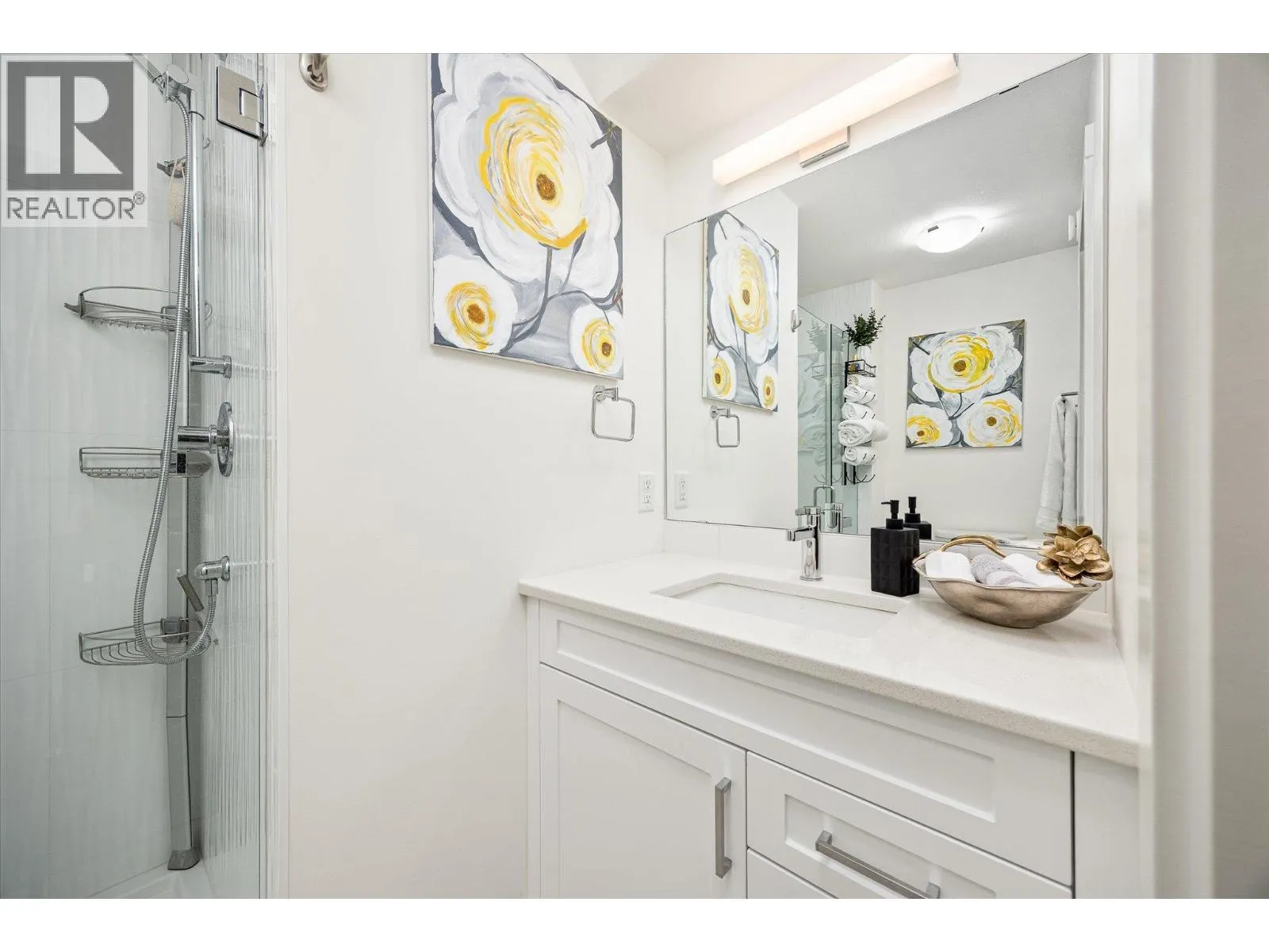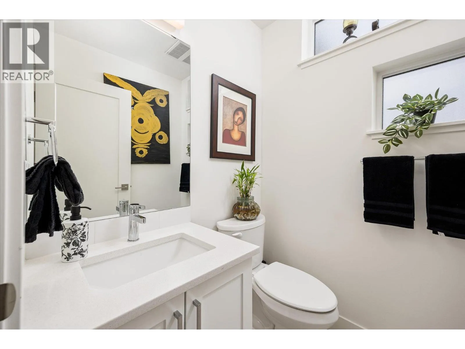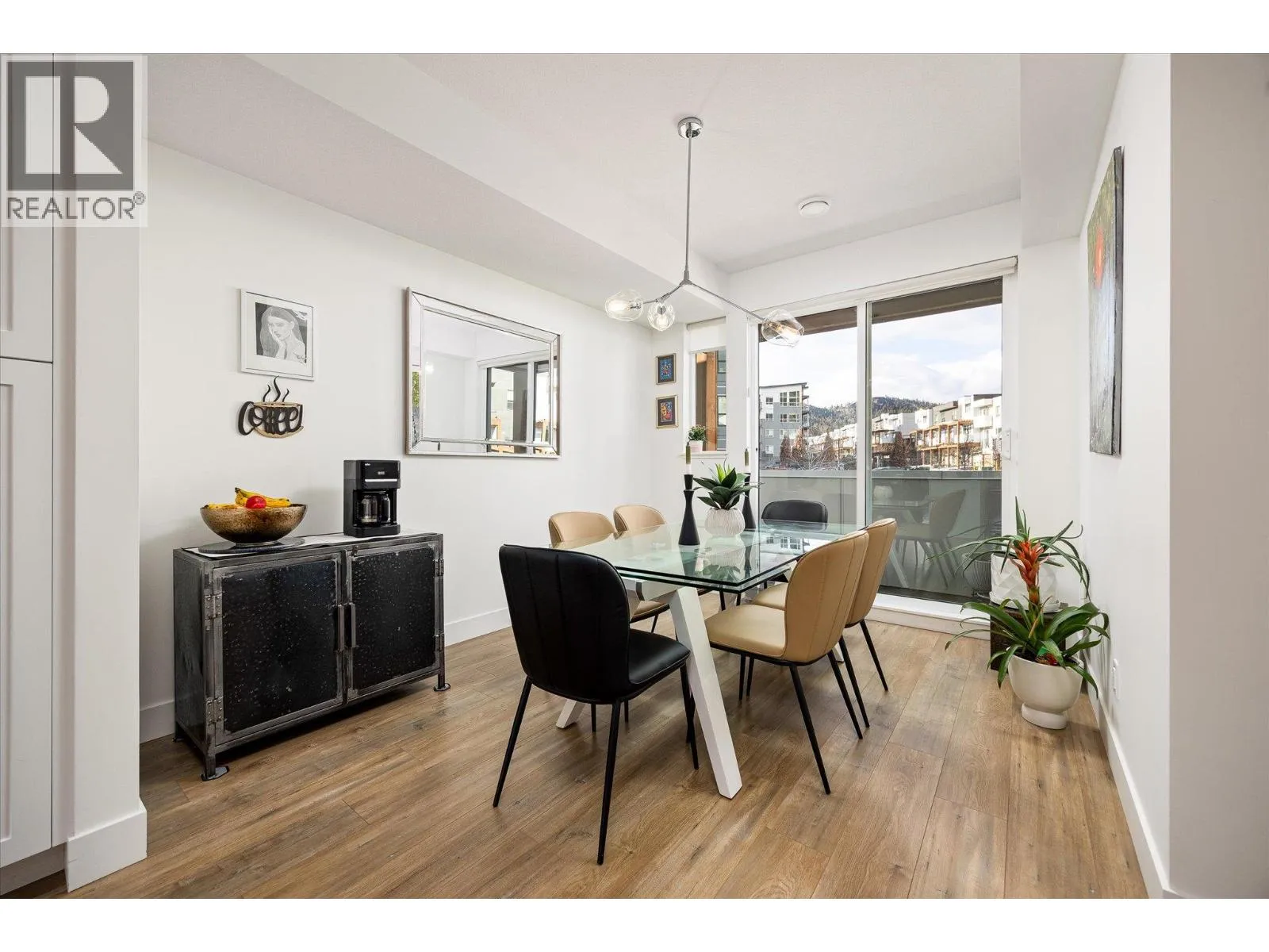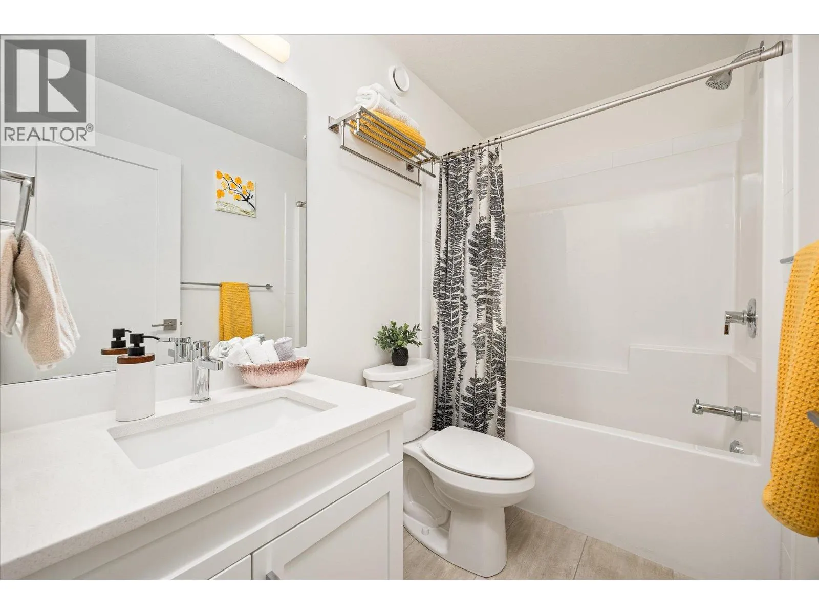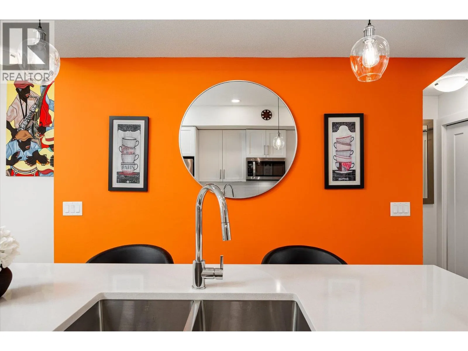 Welcome to Trellis! Located in one of Kelownaâs most sought-after family neighbourhoods, Trellis offers rich, modern design and exceptional functionality. Unit 48 enjoys a premium position on the quieter Valley Road side of the complex, providing added privacy and tranquility, and an acoustically engineered party wall ensures added peace and quiet between units. The walkout entry level offers a 40-foot tandem garage with storage options, ideal for vehicles, bikes, and all your Okanagan lifestyle gear. The main living level showcases a beautifully appointed kitchen flowing seamlessly into the dining and living areas, with a convenient powder room for guests, perfect for entertaining or everyday comfort. Thoughtfully finished throughout, this home features a stainless steel Whirlpool appliance package with gas stove, quartz countertops, ceramic tile backsplash, expansive windows, and 9-foot ceilings that create a bright, airy atmosphere. Upstairs, the second level hosts the primary suite complete with walk-in closet and a stunning ensuite. Two additional bedrooms, a full bathroom, and laundry are also located on this level, offering ideal family functionality. The top floor is the showstopper, with a private rooftop patio with BBQ area and sweeping valley views, creating the perfect outdoor retreat. Glenmore continues to be highly desirable thanks to its close proximity to downtown Kelowna, grocery shopping, restaurants, hiking trails, and multiple schools. This townhome offers pristine quality, thoughtful design, and exceptional value in an unbeatable location. Pet-friendly (with restrictions). (id:27476)