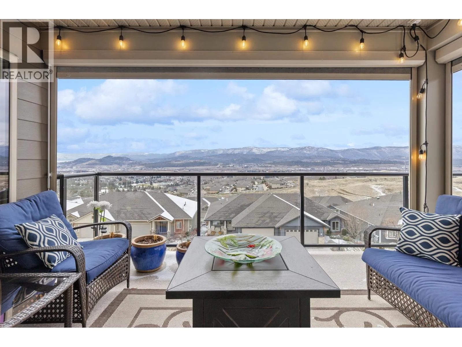 Located in the prestigious gated community of Sunset Ranch, this beautifully maintained walkout rancher offers sweeping views of Lake Okanagan, Beaver Lake, the valley, surrounding mountains and the fairways of Sunset Ranch Golf Course. Designed for effortless main floor living, the home features a bright open concept layout with vaulted ceilings, a spacious primary suite on the main level and seamless access to a covered deck ideal for morning coffee or evening sunsets. The chef-inspired kitchen includes an induction cooktop, quality appliances and generous workspace for entertaining. Unlike many homes in the community, this floorplan offers an oversized lower-level recreation room, creating exceptional space for entertaining, hobbies or visiting guests. The walkout level also includes a guest bedroom, full bathroom and access to a second covered outdoor space complete with hot tub. Thoughtful upgrades include a dedicated EV charging circuit with breaker in the garage panel, exterior sunscreen roller shades on the deck, synchronized bathroom exhaust fans, water softener and central air. Located on a quiet cul-de-sac with low monthly strata fees and an attached double garage, this home offers comfort, privacy and low maintenance living just minutes from Kelowna International Airport and UBCO. (id:27476)