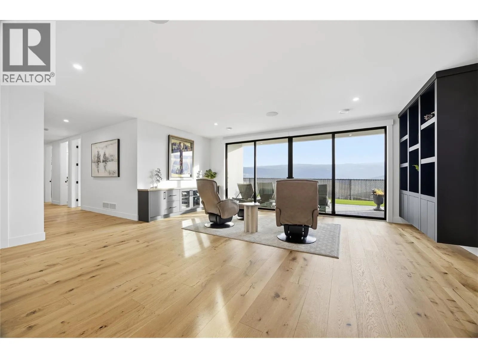 Better Than New! Step into this modern, custom-built masterpiece, meticulously designed for those who appreciate living at the highest level. Expansive south-facing windows illuminate the 30-foot ceilings, showcasing a chefâs kitchen with an oversized island that flows effortlessly onto the spacious covered patio, perfect for taking in the panoramic views. This residence seamlessly blends grand scale with exquisite finishes, including engineered hardwood, custom cabinetry, high-end appliances, & a kitchenette in the bright pantry with access to an additional cooking patio. Outdoors, enjoy low-maintenance syn lawn with a covered swim spa & hot tub, complemented by an outdoor shower, ready for outdoor BBQ kitchen dreams. Live in style on the lower level with a sleek wet bar & media room, plus large sliding doors that create a seamless connection to the outdoors. The triple car garage offers extended ceilings, epoxy floors, built-in storage, with a dog wash to elevate functionality. Upstairs, a private 1-bed legal suite with a full kitchen, patio, and stair lift offers versatile accommodation for your family, guests, or rental potential. Sophisticated tech, including various media zones & exterior cameras, helps to ensure your comfort. From expansive entertaining areas to thoughtfully designed family amenities, this home epitomizes elevated living with unparalleled Black Mountain prestige, offering a rare combination of scale, functionality & refined sophistication. GST paid (id:27476)