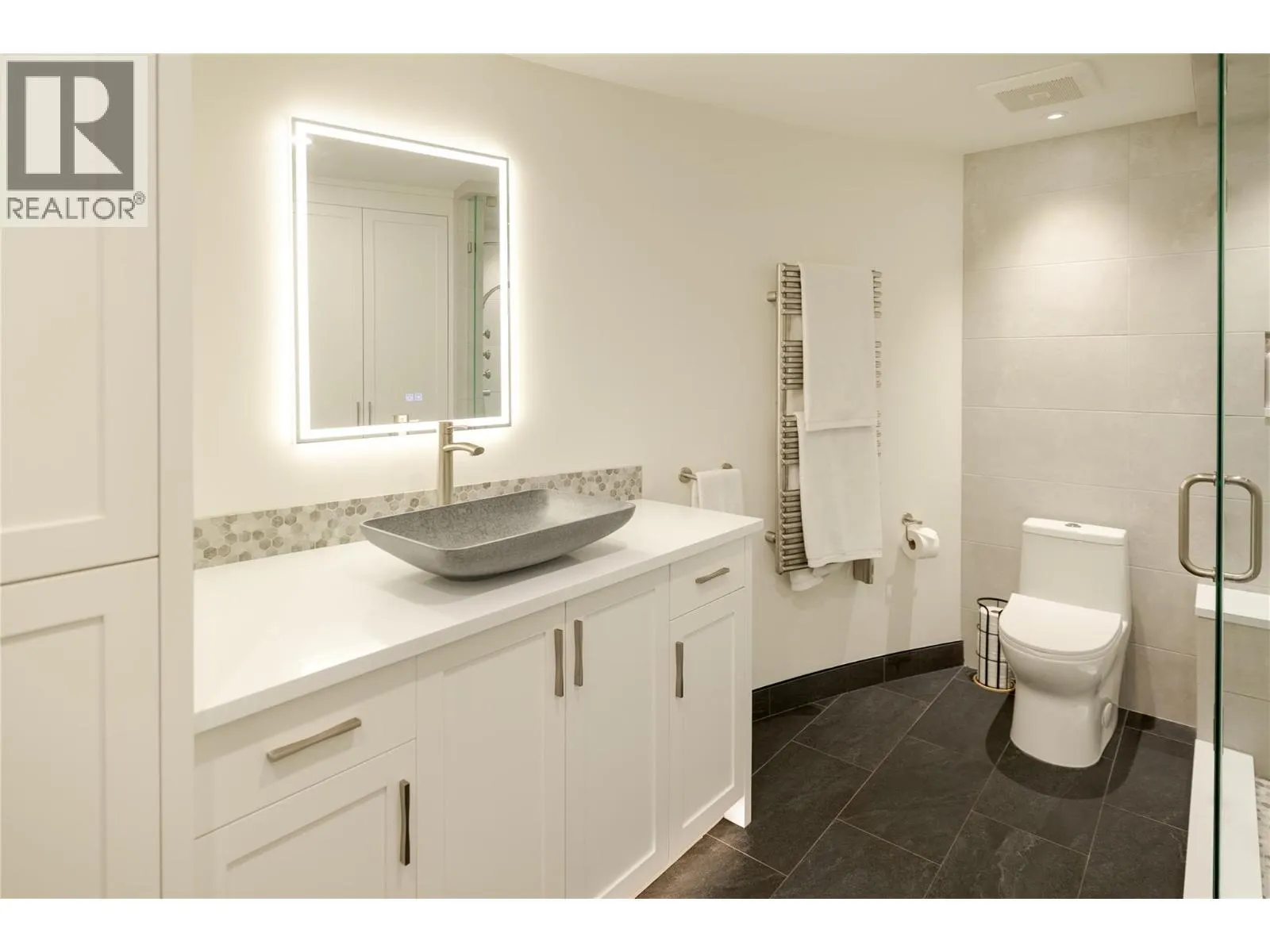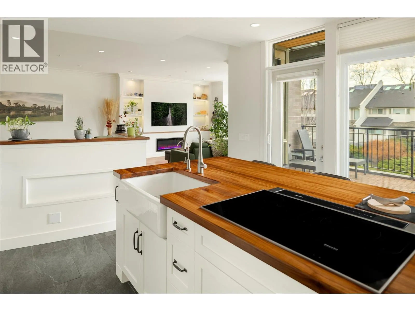 Mornings here begin with a short walk to the shoreline â coffee in hand, paddleboard tucked under your arm, the lake just steps from your door. Positioned directly across from the water in one of the cityâs most sought-after waterfront corridors, this extensively renovated townhome was thoughtfully redesigned for both comfort and connection. The main living spaces are elevated on the upper level, where natural light pours through expansive windows and the rhythm of daily life unfolds. The kitchen was completely reimagined to be both beautiful and highly functional. Commercial-grade black walnut countertops bring warmth and depth, complemented by custom cabinetry with soft-close hardware and a full Miele appliance package. Whether preparing a quiet dinner or hosting friends after a day at the beach, the space feels intentional and inviting. The living area centres around a sleek fireplace framed by custom built-ins, creating a welcoming atmosphere year-round. From here, step onto the generous west-facing deck with retractable awningâ a favourite place to unwind as the afternoon light softens. Downstairs, the home shifts into retreat mode. All bedrooms are located on the walk-out level, offering privacy and separation from the main entertaining areas above. The primary suite has been fully redesigned with a custom walk-through closet and spa-inspired ensuite featuring heated floors, heated towel bar and mirror, slate tile, vessel sink, and a multi-spray tiled shower. A second bedroom and flexible den allow space for guests, work, or creative pursuits. The lower patio includes storage for paddleboards and kayaks â making it easy to decide on a spontaneous evening paddle, while secure parking and storage unit provide convenience. This home is designed for those who value simplicity, quality, and a lifestyle that unfolds just beyond the front door. (id:27476)