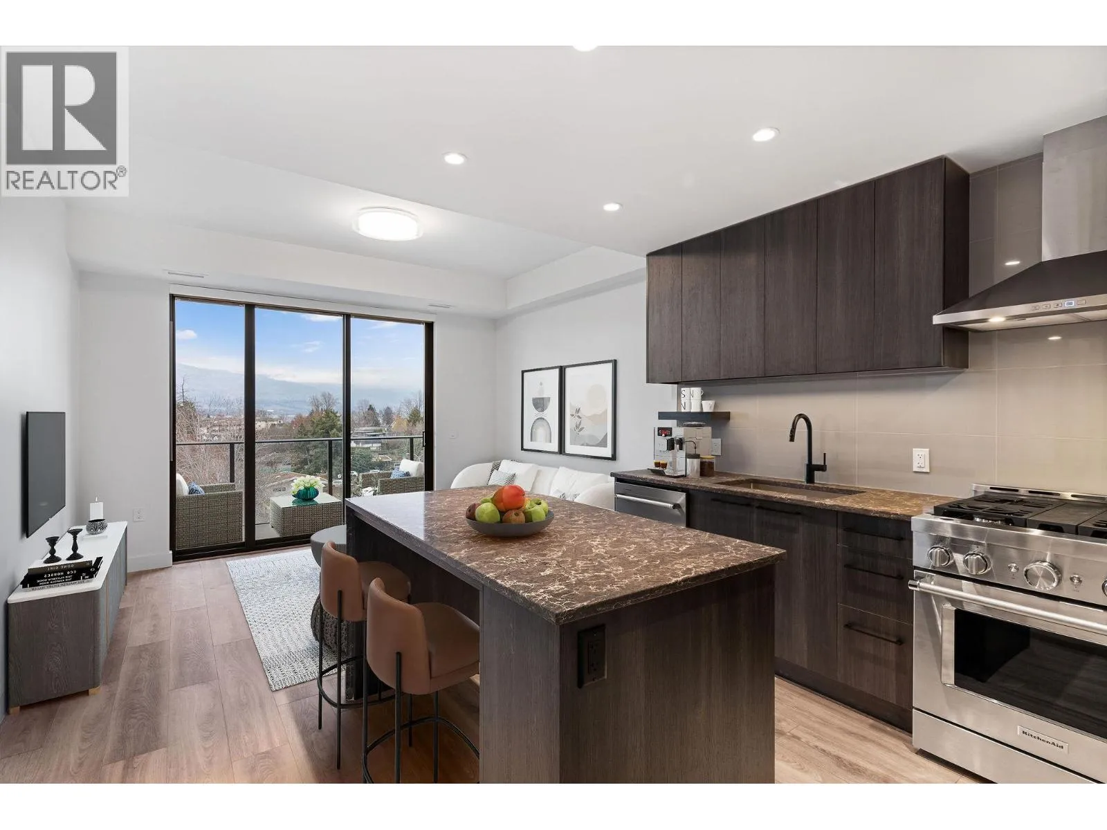 Welcome to ALMA, proudly developed by Mission Group. This south facing 2-bedroom, 1-bathroom home is filled with sunlight throughout the day, enhancing the open-concept layout and creating a bright, inviting atmosphere. The contemporary kitchen features sleek cabinetry, quartz countertops, stainless steel appliances, and ample storage seamlessly connecting to the dining and living areas for effortless entertaining and everyday comfort. Large windows frame partial lake views while maximizing the warm southern exposure Residents can enjoy amenities incl. an 8,000 sq ft lakeview terrace w/firepits, BBQs, and community gardens as well as a fully equipped fitness center, dog wash, & bike maintenance station. With a walk score of 93, youâre steps from transit, KGH, shops & restaurants of vibrant Pandosy Village, and beautiful Okanagan Lake. sq ft and room sizes are approximate and may vary. Photos may be of a similar home and layout. May be virtually staged . This home is newly constructed and move-in ready. (id:27476)
