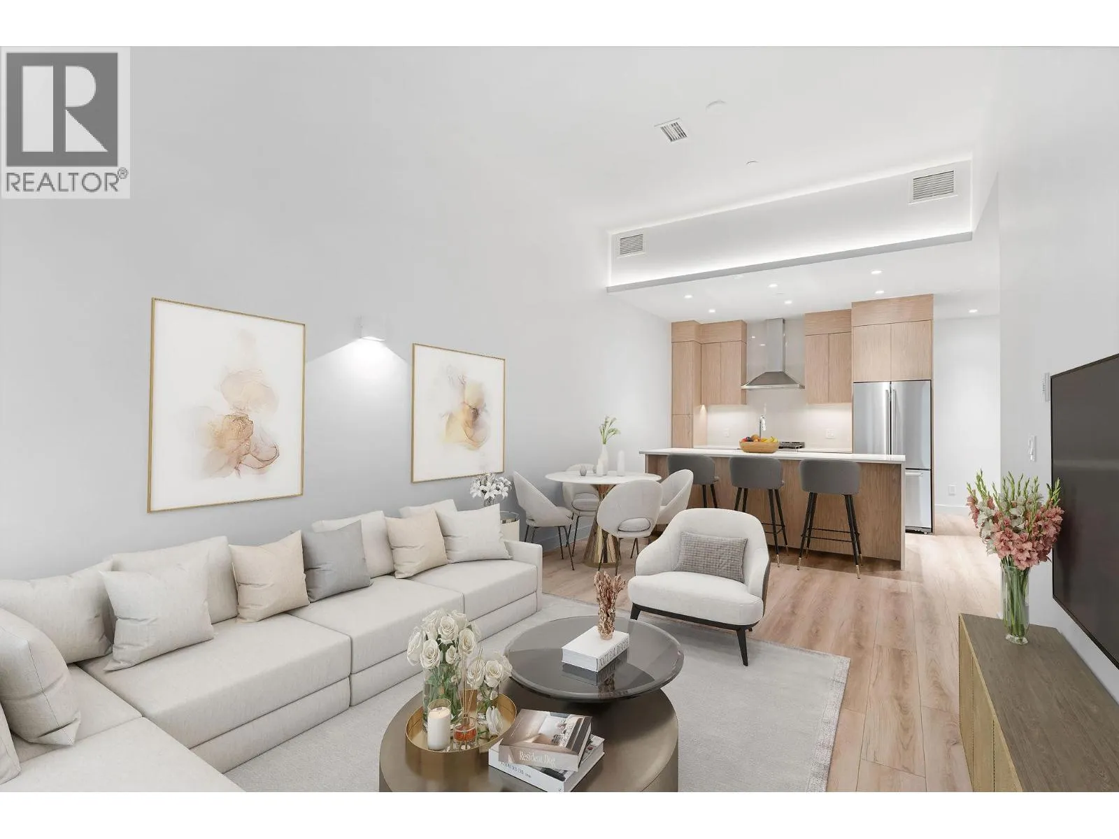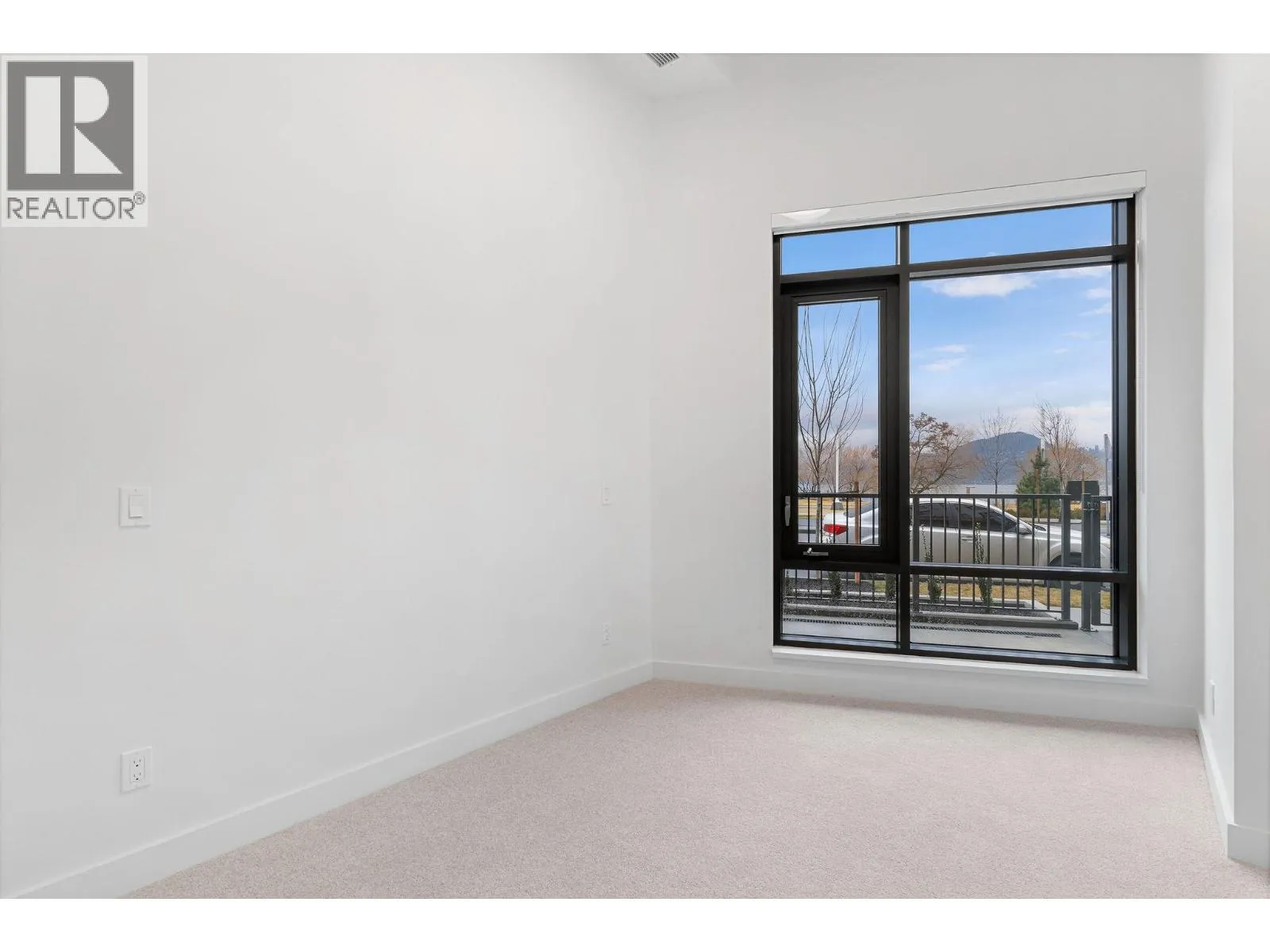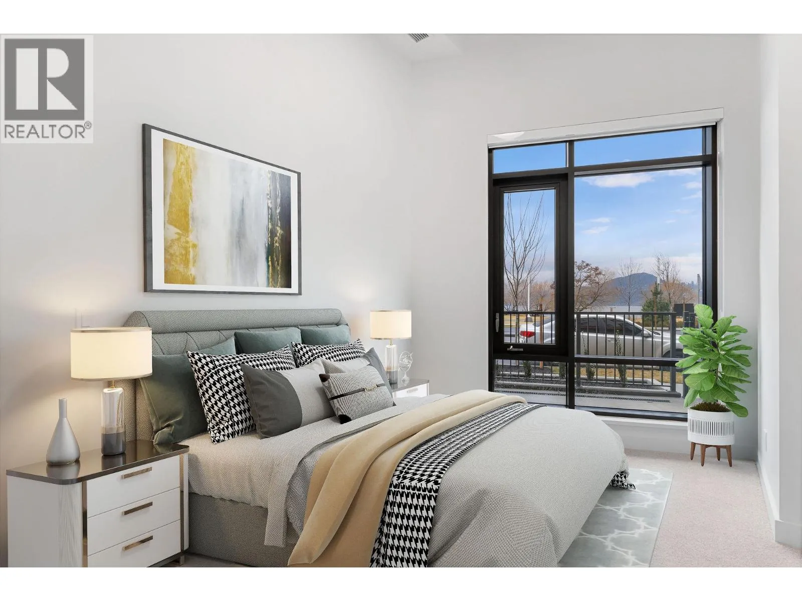 This ground-level townhome offers 2 bedrooms + den, 2 bathrooms, and impressive 11-foot ceilings that create a bright, airy feel throughout. The thoughtfully designed layout features an open-concept living space, modern kitchen with premium finishes, and expansive windows showcasing beautiful west-facing lake views. Enjoy seamless indoor-outdoor living with direct walk-out access from your front door to Abbott Street and the waterfront beyond â perfect for morning strolls and evening sunsets. The spacious primary suite includes a spa-inspired ensuite, while the second bedroom and versatile den which provides flexibility. Residents can enjoy amenities incl. an 8,000 sq ft lakeview terrace w/firepits, BBQs, and community gardens as well as a fully equipped fitness center, dog wash, & bike maintenance station. With a walk score of 93, youâre steps from transit, KGH, shops & restaurants of vibrant Pandosy Village, and beautiful Okanagan Lake. sq ft and room sizes are approximate and may vary. Photos may be of a similar home and layout and virtually staged. This home is newly constructed and move-in ready. (id:27476)