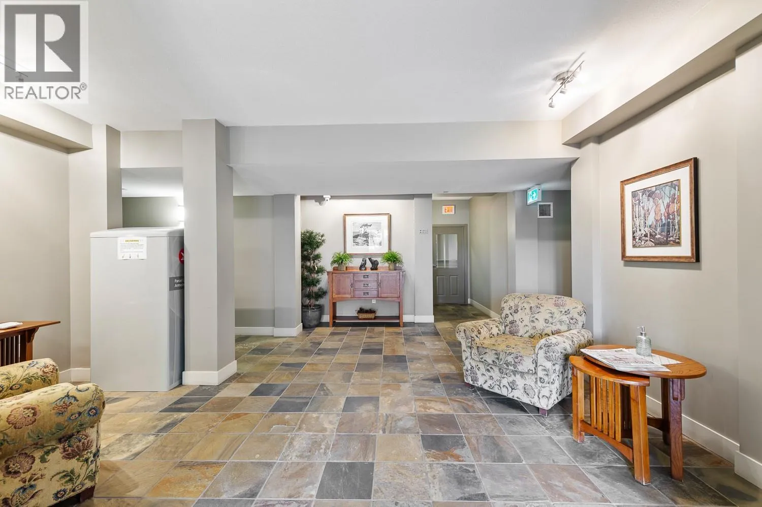 ""QUIET SIDE ""- Welcome to Wildwood Village, ideally located in the heart of Kelownaâs highly desirable Lower Mission. This beautifully updated 2-bedroom, 2-bathroom home offers 1,088 sq. ft. of functional and comfortable living space. With 9-foot ceilings, easy-care laminate flooring, and a cozy fireplace, the open-concept layout is both stylish and inviting. The updated kitchen is designed with high-end stainless steel LG appliances, quartz countertops and a raised eating barâperfect for casual dining or entertaining. Step outside to the spacious, covered deck, ideal for soaking in the Okanagan sun or enjoying a summer BBQ. The primary ensuite includes a walk-in shower, while the large in-suite laundry room provides additional storage or pantry space. Very healthy contingency and well run strata. This home also comes with a secure underground parking stall and lots of extra outdoor spots for an additional car or guests plus a storage locker. The building offers excellent amenities, including a guest suite. Perfectly situated across from the H2O Centre, MNP Place, sports fields, hockey rinks, transit and the Mission Creek Greenway with Okanagan Lake, parks, beaches, golf courses, coffee shops, and restaurants all just minutes away. Move-in ready and waiting for you. The plumbing throughout building has been replaced and fully paid for. Pet-friendly 1 dog (under 14"" at the shoulder) or 1 cat (id:27476)