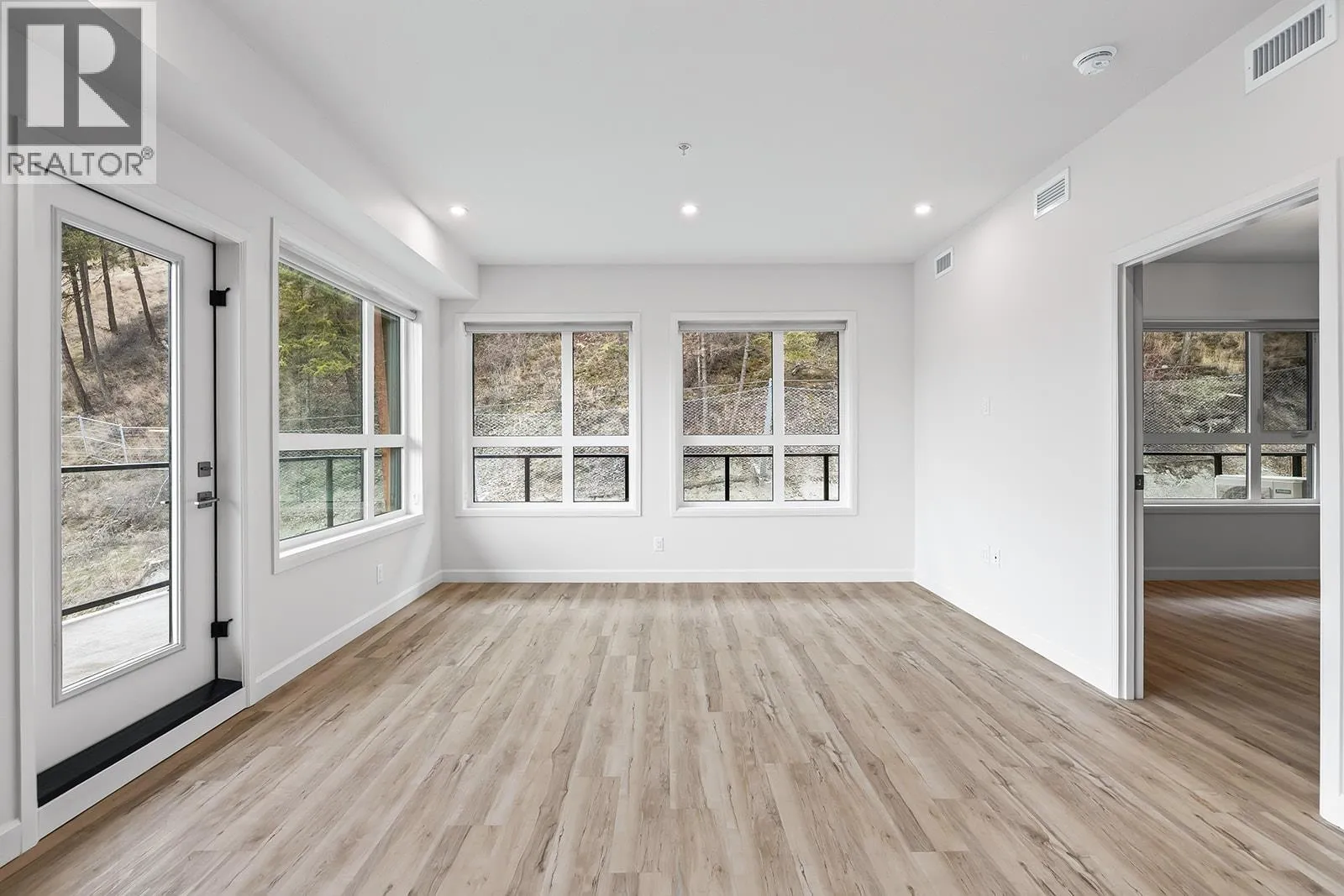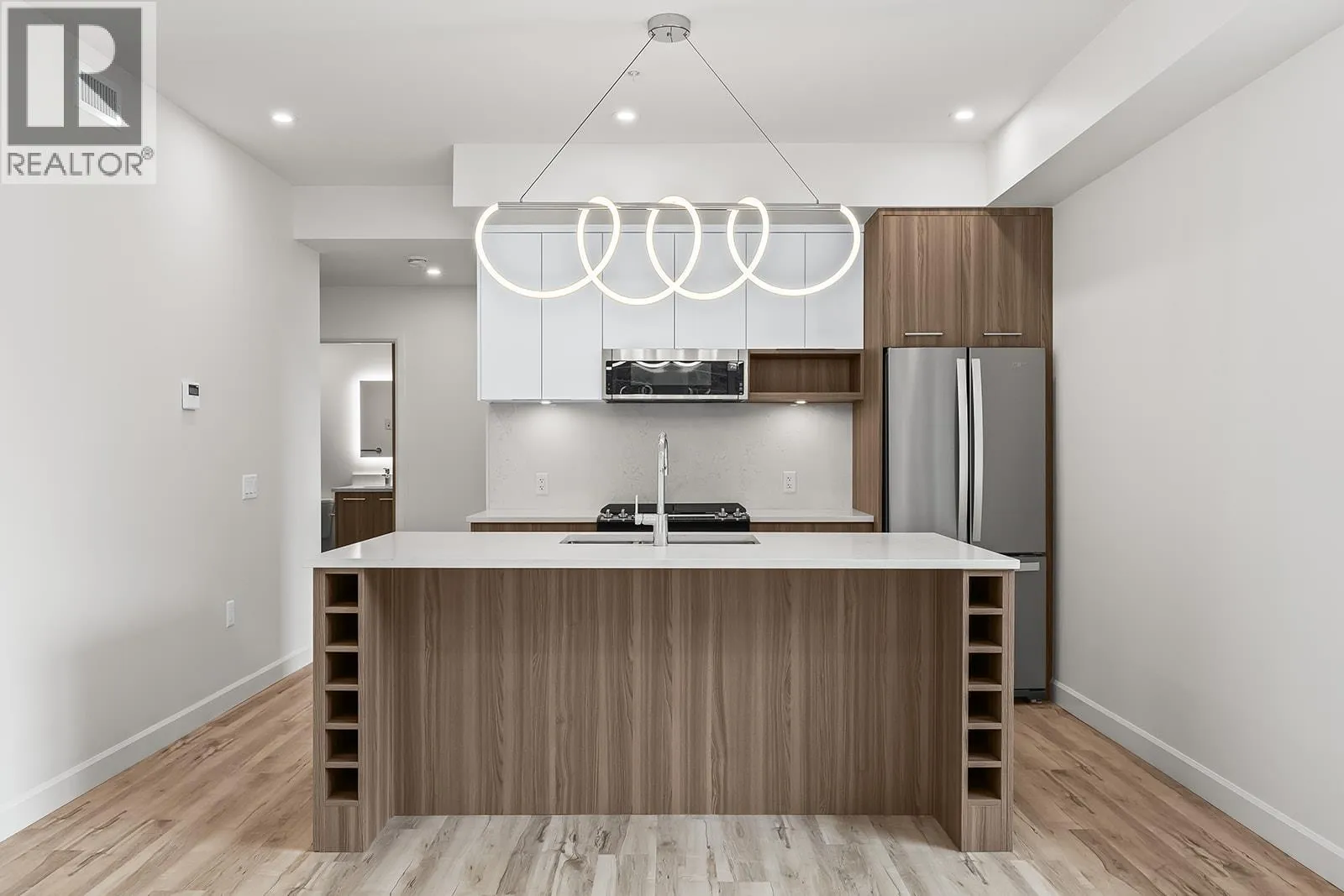 Private huge rooftop patio. New. Stylish. Move-In Ready. Spacious 2-Bed + Den corner top home at Eminence at Knox Mountain offers approx 1,152 sqft of beautifully finished living space with an abundance of light, a smart split-bedroom floorplan, a versatile den & laundry room. The kitchen is a designer focal point, complete with a large island, premium 2-tone cabinetry, quartz countertops, stainless steel appliances & a gas stove. Thoughtful details carry throughout, from 9-ft ceilings & expansive windows to warm wood tones, bold black accents & glass elements that echo the surrounding views. Designer LED lighting, a statement entry door, solid-core interior doors & custom closet & shelving solutions. 2 underground parking stalls plus 2 private bike cages. 2 spacious outdoor decks provide approx. 1,352 sqft of outdoor living. The buildingâs common rooftop viewing terrace gives all new meaning to Kelownaâs Patio Season. Pet-friendly & nature is at your doorstep with direct access to Knox Mountainâs hiking & biking trails. Downtown Kelowna & Glenmore are minutes away. Buy new & save. Eligible buyers may qualify for the Property Transfer Tax exemption & the upcoming 1st time home buyer GST exemption & remaining homes include up to $100k in built-in savings from original pricing. If you want a designer condo youâll love coming home to, this one checks all the boxes. Move-In Ready 1-Bed to 2-Bed + Den homes available. Sales Centre open Saturday 12-4pm or by appointment. (id:27476)