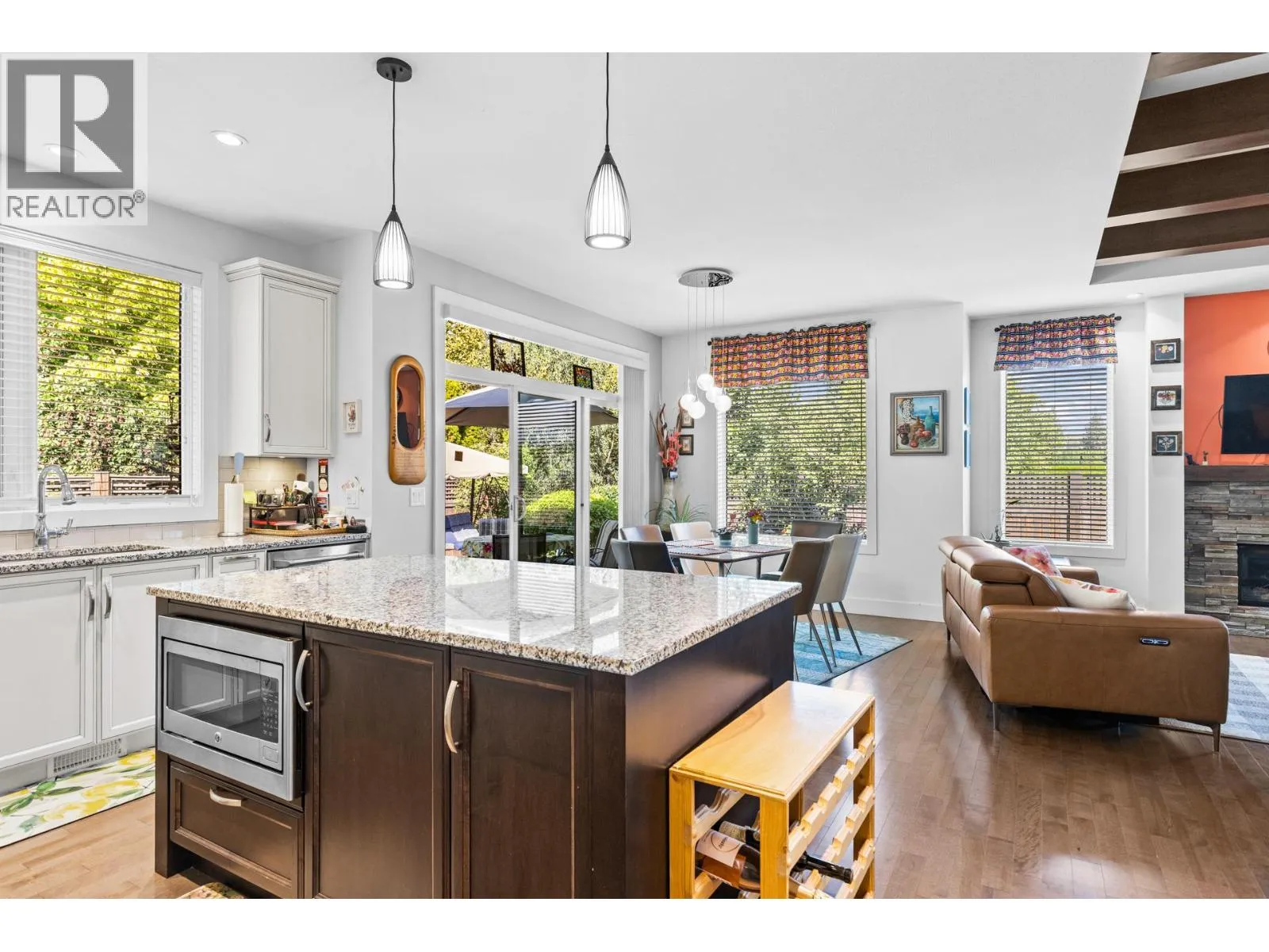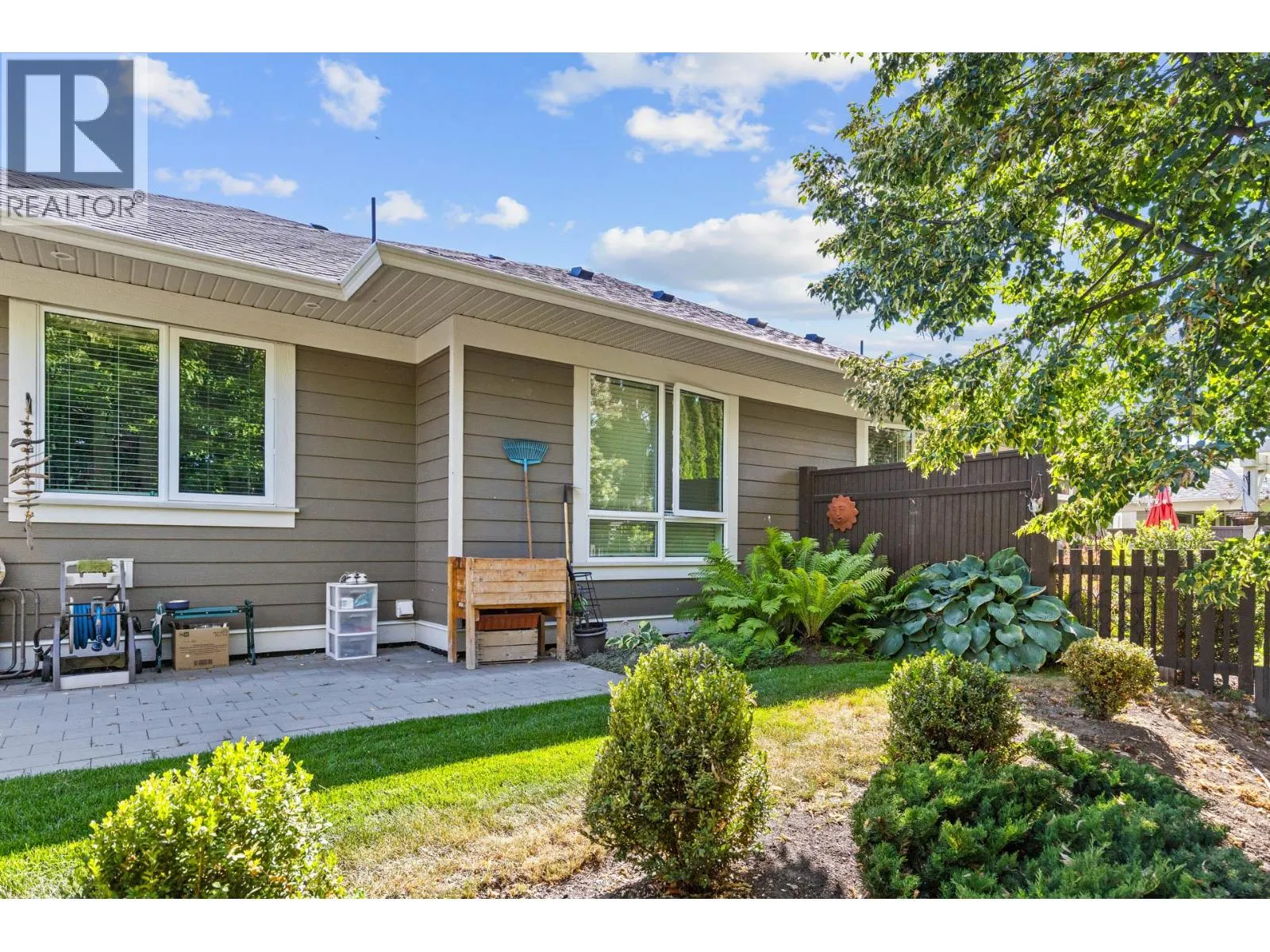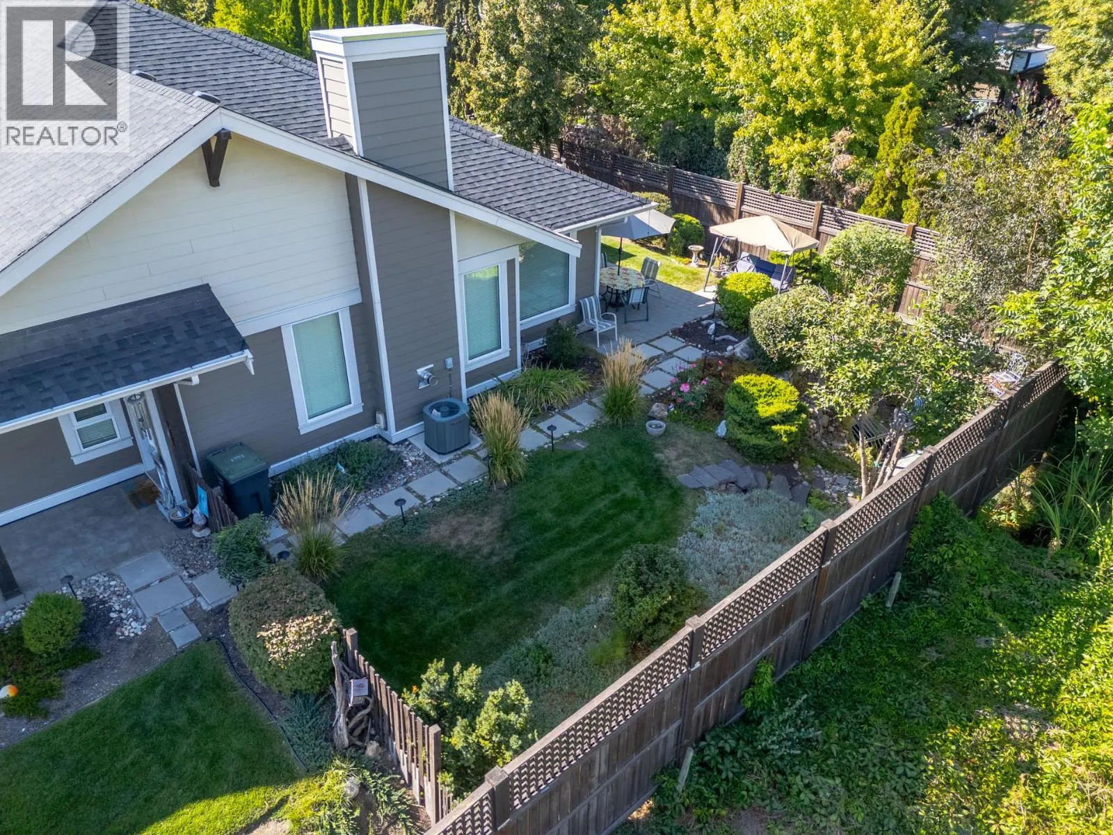 Welcome to Gablecraft in the Mission! This beautiful corner townhome offers a rare combination of privacy, style, and functionality in one of Kelownaâs most sought-after complexes. With mature landscaping, and timeless curb appeal including stone accents, tiled terrace, and a charming front gate, this home stands out from the rest. Inside, youâll find a thoughtful two-bedroom, two-bathroom layout with bedrooms set on opposite sides of the entry hall for added privacy. Soaring ceilings and oversized windows fill the home with natural light, while quality finishes like granite counters, custom tile work, and double sinks in the primary ensuite provide a touch of luxury. The open-concept living and dining areas flow seamlessly into a chef-inspired kitchen featuring a large island, GE stainless steel appliances, soft-close cabinetry, and ample workspace, perfect for both everyday living and entertaining. A gas fireplace, upgraded ceiling beams, and sliding glass doors to the back patio with views of the southeast hills add warmth and character. Additional features include a spacious double garage, a convenient laundry room just off the kitchen, and a versatile flex area that adapts to your lifestyle. Fully fenced private yard with concrete patio area. (id:27476)