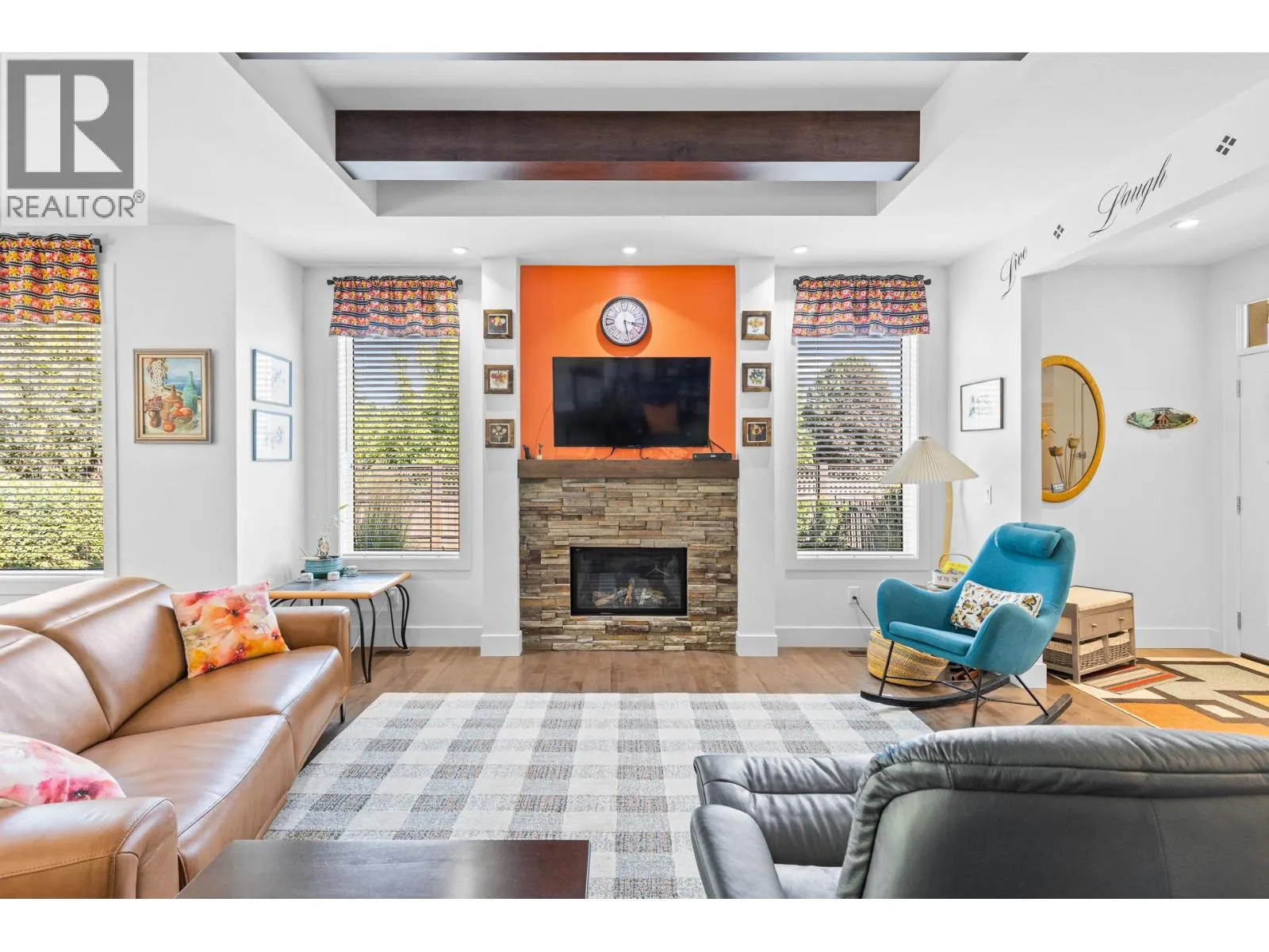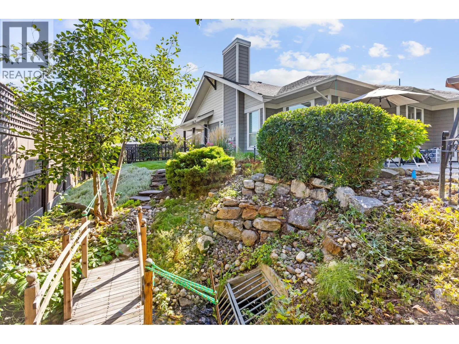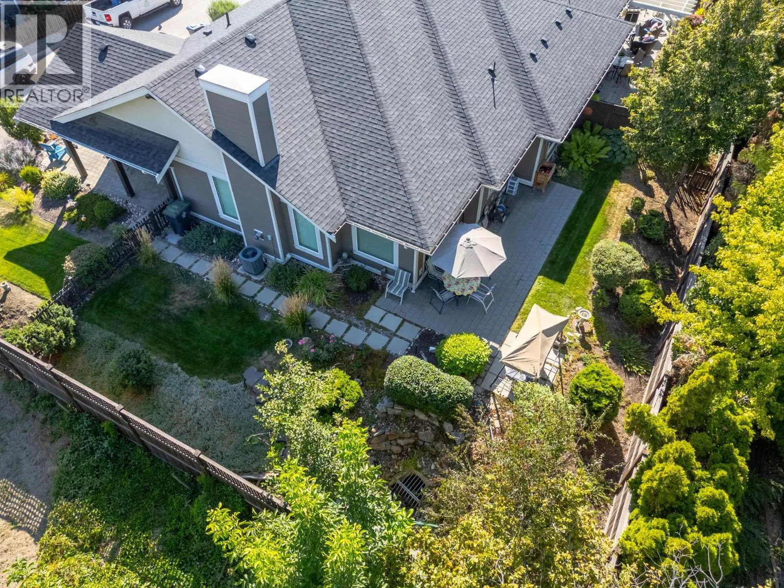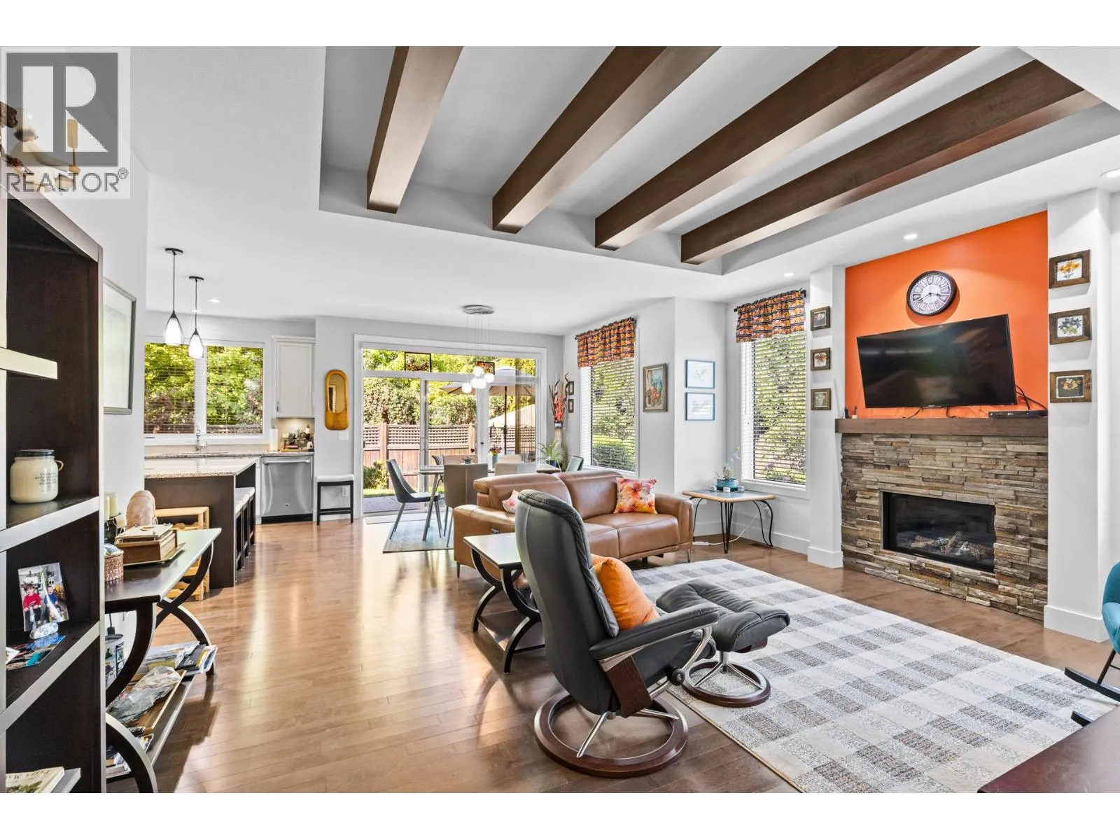 Welcome to Gablecraft in the Mission! This beautiful corner townhome offers a rare combination of privacy, style, and functionality in one of Kelownaâs most sought-after complexes. With mature landscaping, and timeless curb appeal including stone accents, tiled terrace, and a charming front gate, this home stands out from the rest. Inside, youâll find a thoughtful two-bedroom, two-bathroom layout with bedrooms set on opposite sides of the entry hall for added privacy. Soaring ceilings and oversized windows fill the home with natural light, while quality finishes like granite counters, custom tile work, and double sinks in the primary ensuite provide a touch of luxury. The open-concept living and dining areas flow seamlessly into a chef-inspired kitchen featuring a large island, GE stainless steel appliances, soft-close cabinetry, and ample workspace, perfect for both everyday living and entertaining. A gas fireplace, upgraded ceiling beams, and sliding glass doors to the back patio with views of the southeast hills add warmth and character. Additional features include a spacious double garage, a convenient laundry room just off the kitchen, and a versatile flex area that adapts to your lifestyle. Fully fenced private yard with concrete patio area. (id:27476)