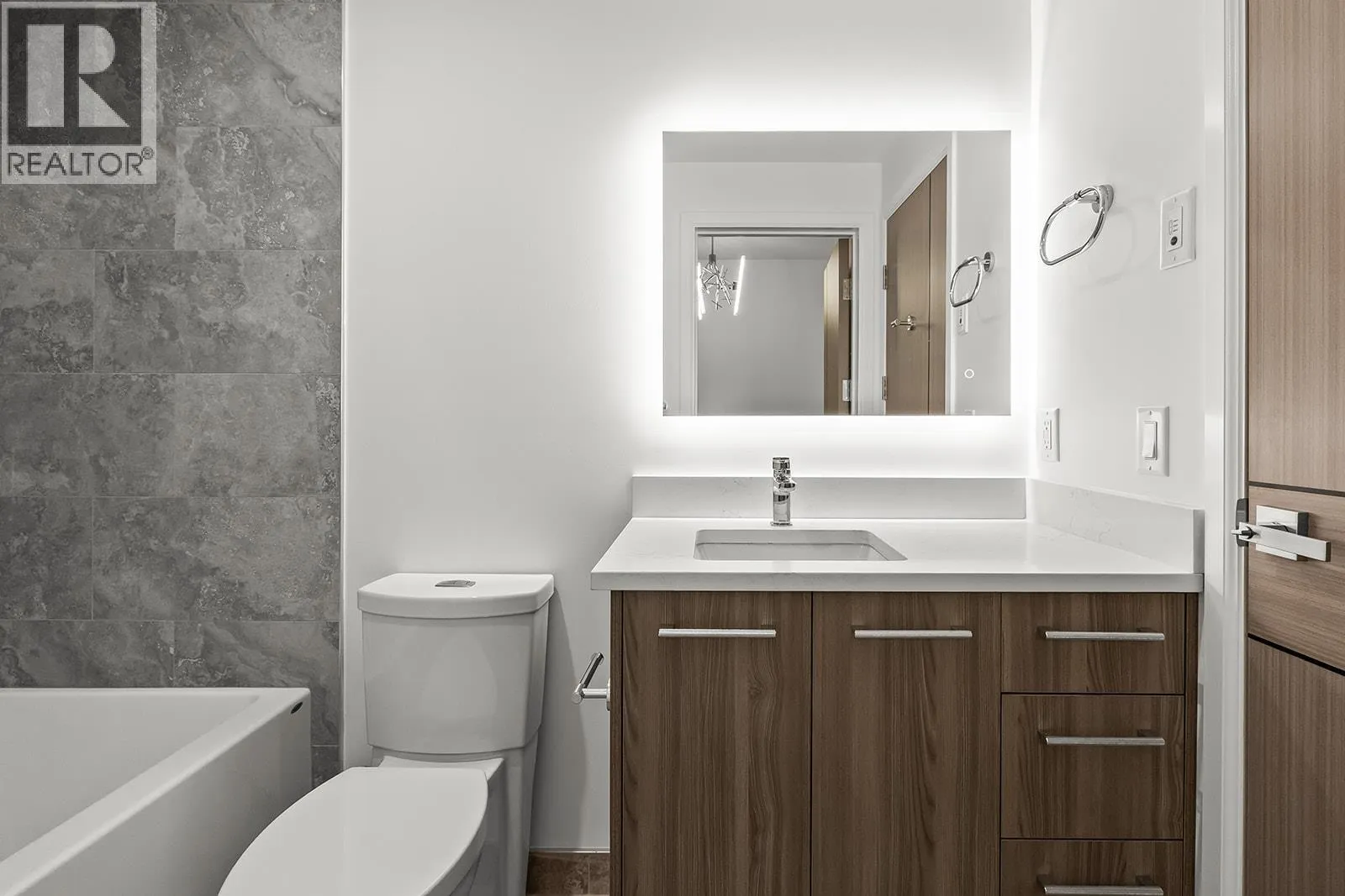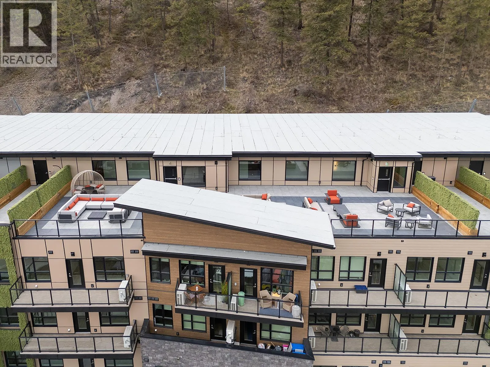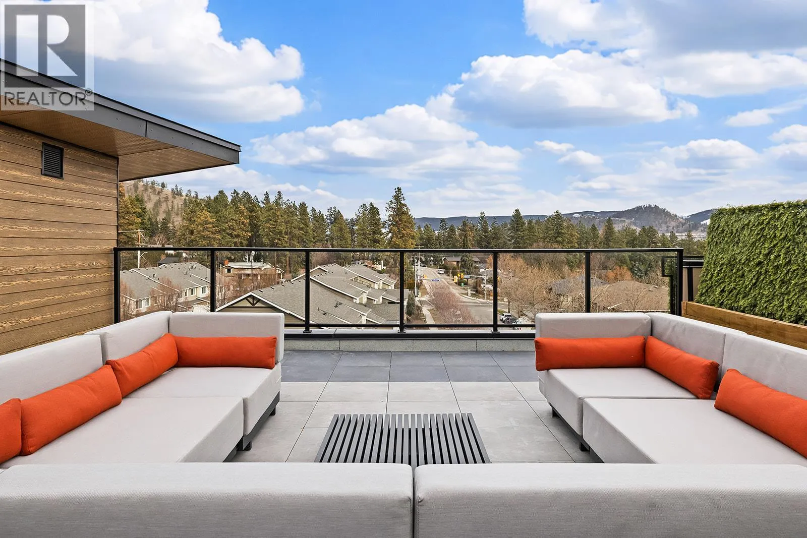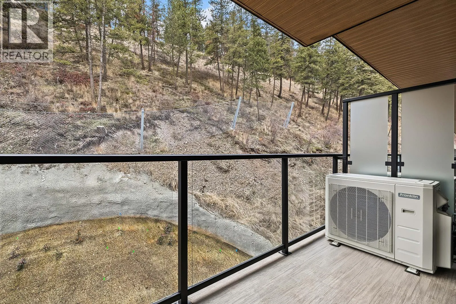 Brand New. Move-In Ready. And anything but ordinary. Welcome to Eminence at Knox Mountain. This 1-bed, 1-bath home offers approx. 554 sqft of smart, sophisticated living designed for people who appreciate clean lines & thoughtful details. Inside, 9-ft ceilings & expansive windows create a bright, open feel. The interior blends warm wood tones, striking black accents & sand glass balcony features. The kitchen is a standout with premium 2-tone cabinetry, quartz countertops, stainless steel appliances, a gas range & a unique wine storage feature. An in-suite laundry adds convenience, a nook provides a place for your desk, while designer LED lighting, a statement entry door, solid-core interior doors & custom shelving & closet solutions complete the polished finish. Youâll also enjoy underground parking with your own private bike cage. The buildingâs rooftop viewing terrace gives all new meaning to Kelownaâs Patio Season. Pet-friendly & Nature at your doorstep with direct access to Knox Mountainâs hiking & biking trails. Downtown Kelowna & Glenmore are minutes away. Buy new & save. Eligible buyers may qualify for the Property Transfer Tax exemption & the upcoming 1st time home buyer GST exemption & remaining homes include up to $100k in built-in savings from original pricing. If you want a designer condo youâll genuinely love coming home to, this one checks all the boxes. Move-In Ready 1-Bed to 2-Bed + Den homes available. Sales Centre open Saturday 12-4pm or by appointment. (id:27476)