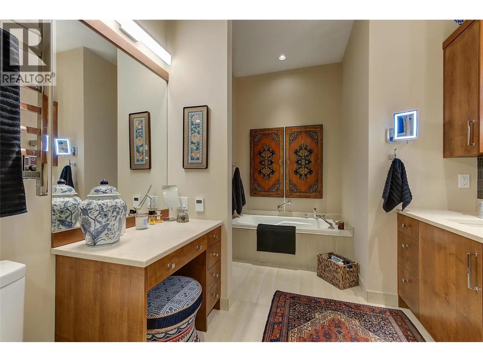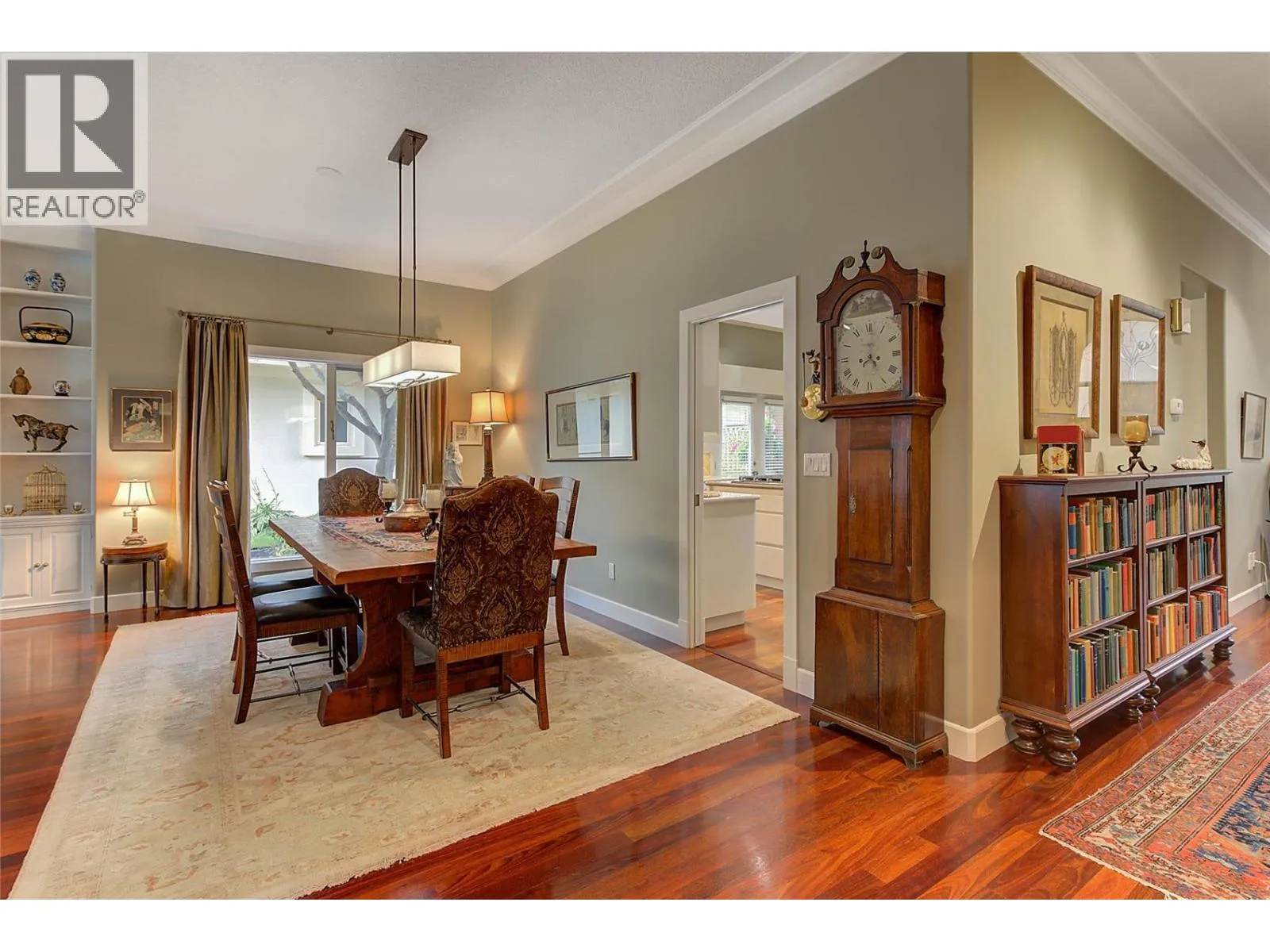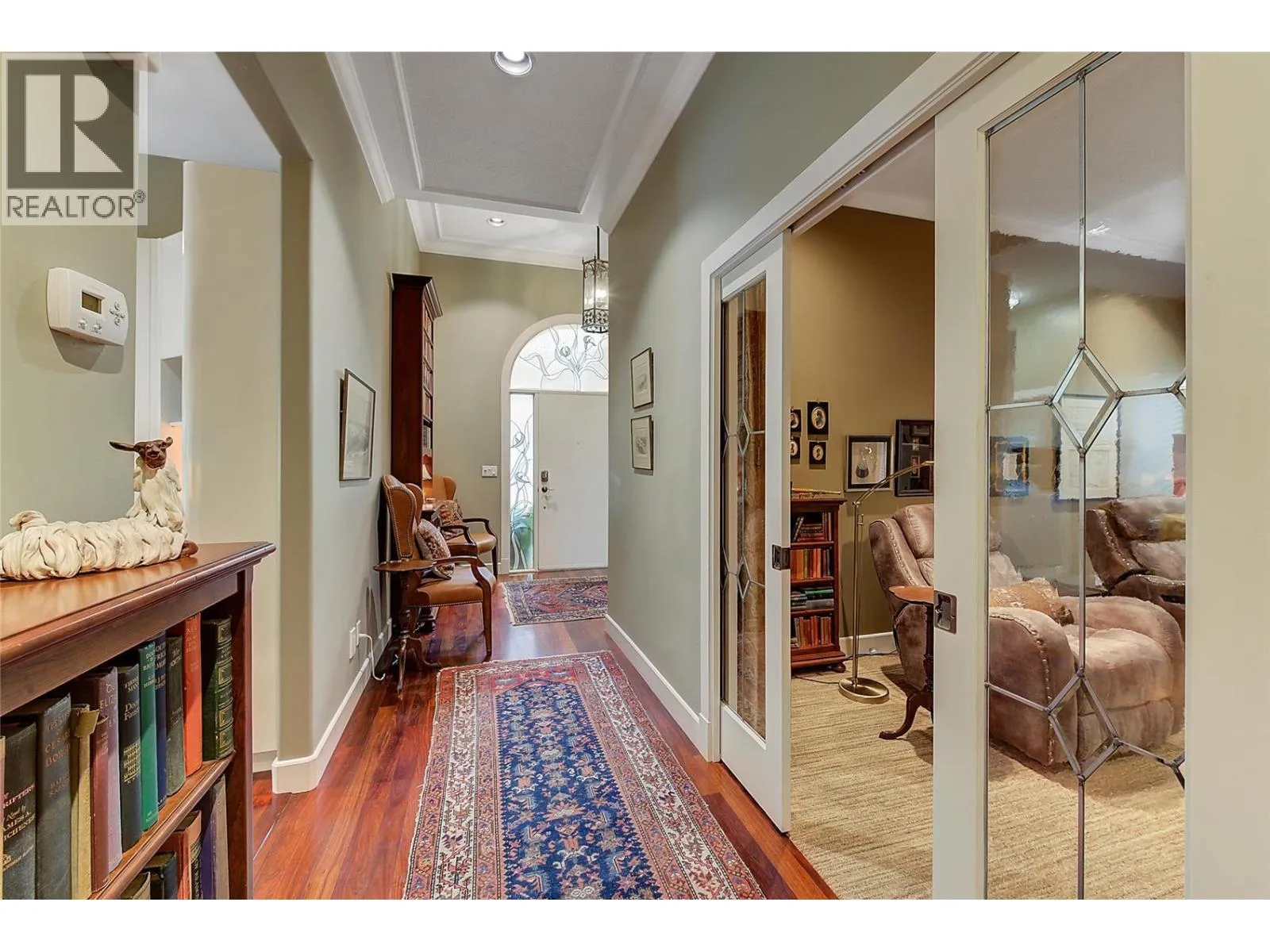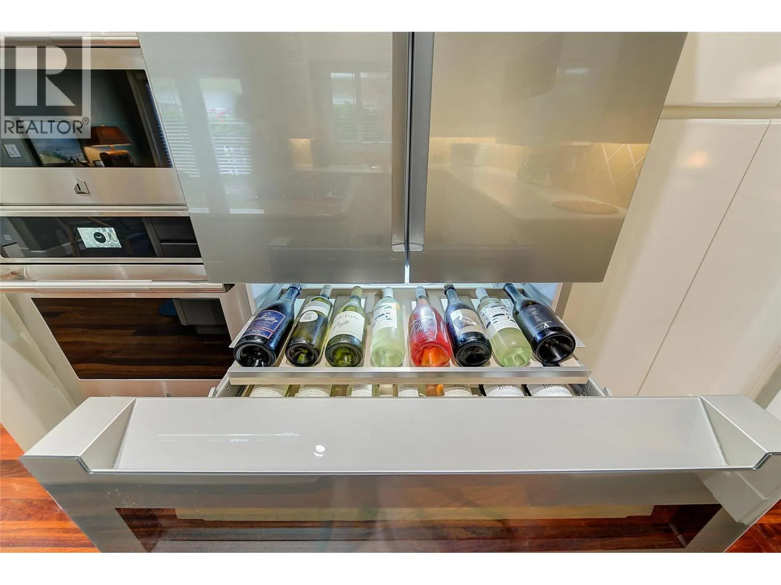 Luxurious One-Level Home in Gated Waterfront Community. Discover the perfect blend of comfort and convenience in this stunning one-level home located in an exclusive gated community. This residence offers easy access to the lake with your own private boat slip and lift. Enjoy tranquil living with waterfront pool beautifully landscaped surroundings. Residents of Le Chateau can also enjoy resort-style amenities on site including an outdoor pool, hot tub & private dock. Upon entry you're greeted by high ceilings, and rich cherry hardwood floors leading to the kitchen and the main living area. The chefâs kitchen features brand-new stainless-steel appliances. Centre island offers a gas range. Off the kitchen is an open, main living area with custom built-ins surrounding the gas fireplace. The primary suite is a gorgeous sanctuary with private access to the backyard and a recently renovated primary ensuite. The ensuite is finished with wood cabinetry, & granite counters for a luxurious feel. Enjoy unwinding in the soaker tub or expansive glass steam shower with a bench and speakers. One additional bedroom and den. In the backyard youâre surrounded by mature landscaping and a trellis bordering the patio. A water feature & outdoor lighting have been added. The two-car garage has been finished with epoxy flooring, and custom cabinetry. Incredible location within walking distance to beaches, cafes, restaurants and boutiques, and only a 5 minute drive to downtown Kelowna. (id:27476)