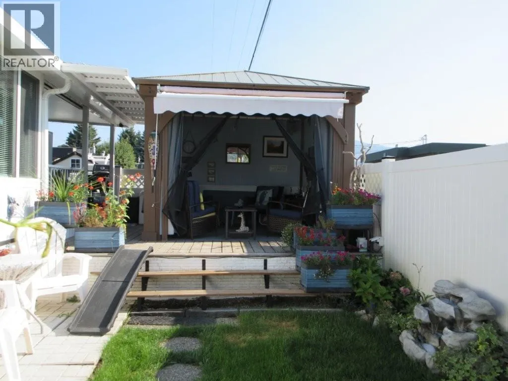 Welcome to the Sweet Life! This open concept Park Model is ideal for entertaining family and friends. The spacious kitchen features an island with lots of storage. The dining room easily accommodates a full size dining table and chairs. Lots of windows in the living room allow for the natural light to flow in. The electric fireplace adds warmth and ambience on a chilly evening. Relax in your private gazebo, watching a movie or enjoying your morning coffee. Woodlands Adult Rec Centre is across the street where you can meet your friends in the games room, enjoy reading a good book or maybe participate in a game of pool. Enjoy the outdoor hot tub, conversation pool, or maybe a friendly game of Pickleball. Other amenities include pools, hot tubs, sauna, gym, golf course, storage facility, fenced in off-leash dog park, woodworking shop plus more. The lease is registered with the Federal Government until 2046. The Annual Maintenance Fee for 2026 is $5763. This includes security, water, sewer, use of the amenities, maintenance ot the common areas and roads, snow removal and garbage disposal area. Long and short term rentals allowed. There is no Property Transfer Tax. Property taxes are payable to the City of Kelowna. Close proximity to Kelowna International Airport, wineries, golf courses, ski hills, hiking trails, Rail Trail, shopping and entertainment. (id:27476)