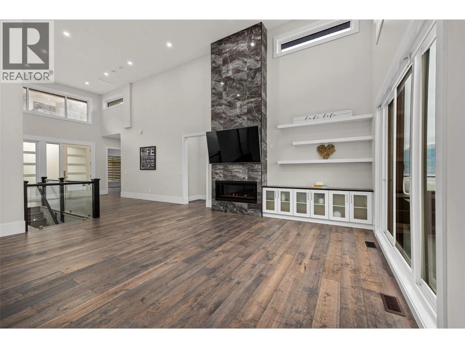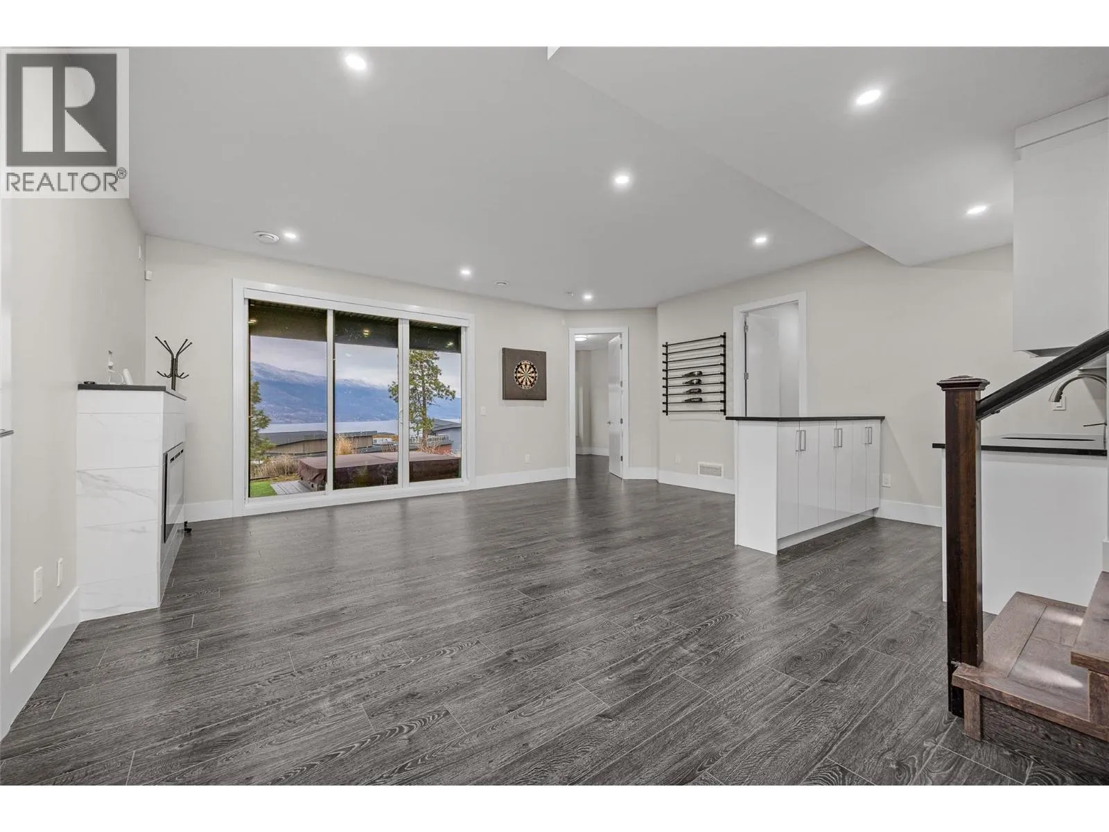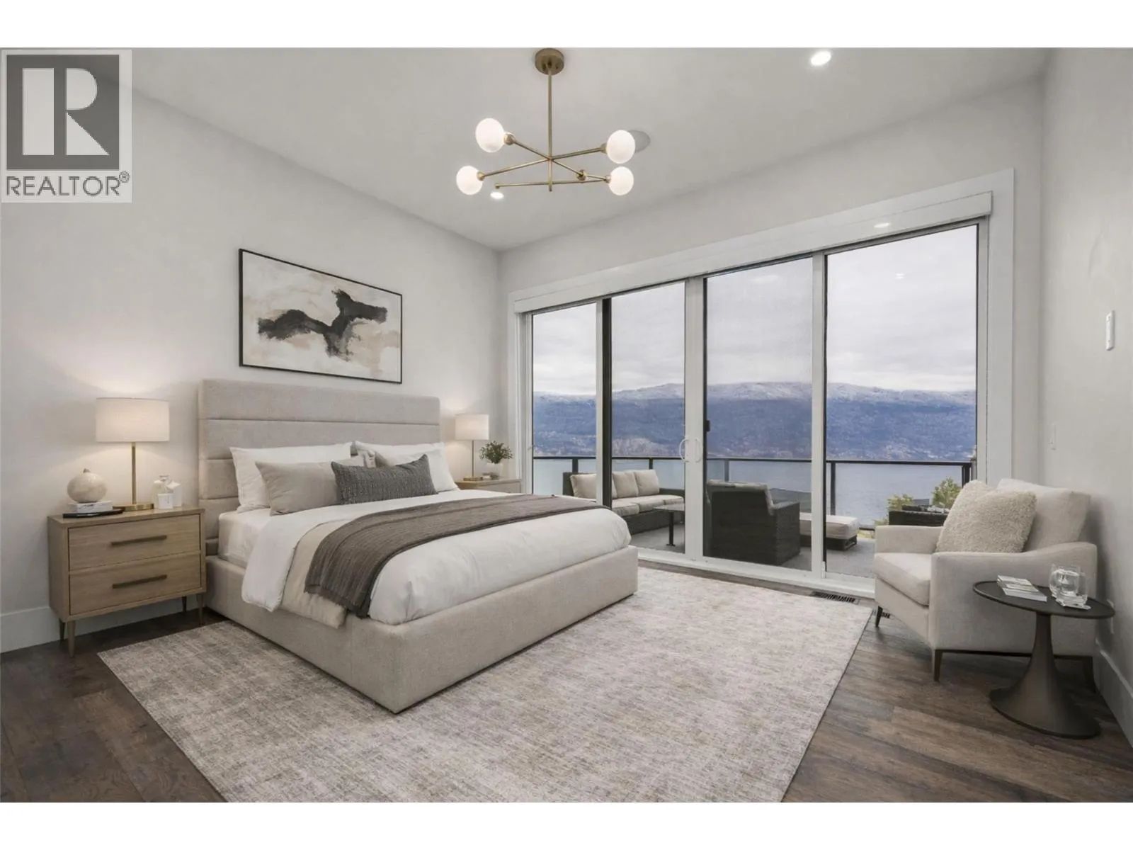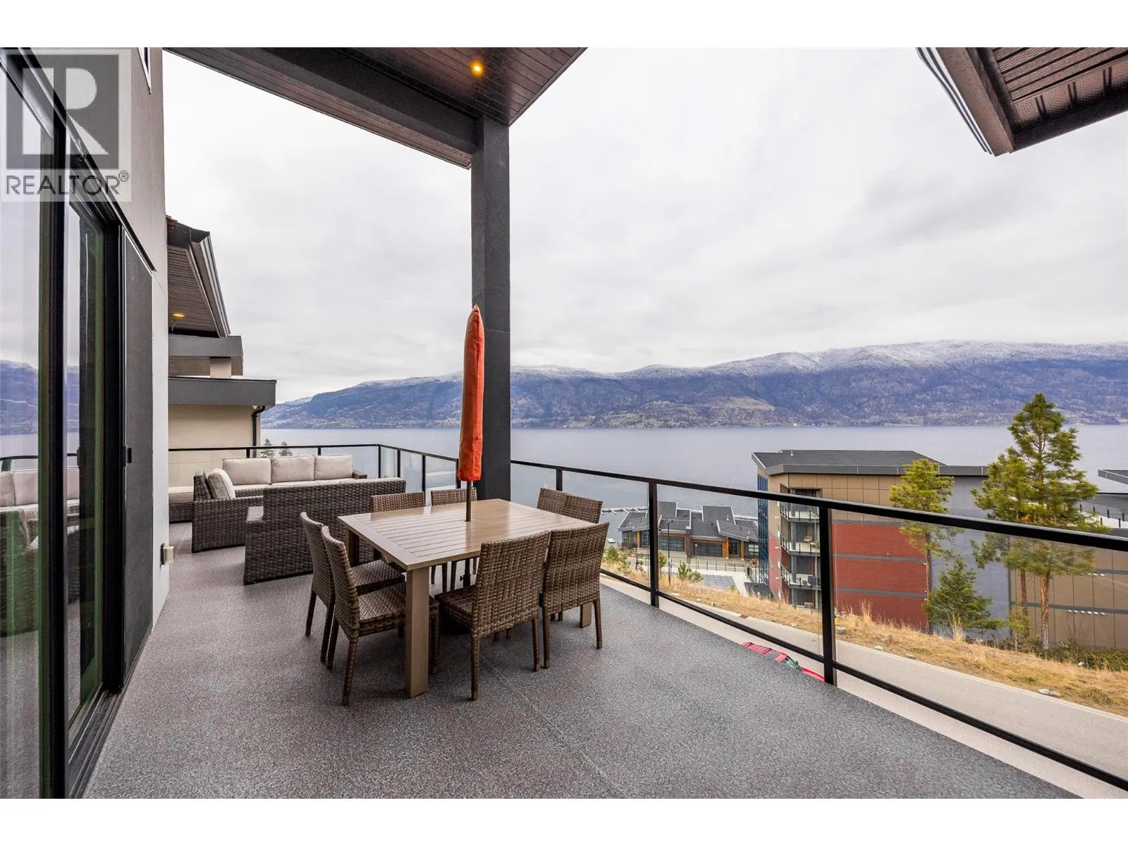 Sweeping lake views welcome you into this stunning walkout rancher with high ceilings, modern finishings, and a thoughtfully designed open-concept main level in the heart of McKinley Beach. Offering 3,713 sqft of living space, this home features 5 beds and 5 baths, including a 1 bed/1 bath legal suite - ideal for extended family or a mortgage helper. Soaring ceilings and expansive windows flood the main living areas with natural light, while seamless indoor-outdoor flow leads to a large lake view deck perfect for entertaining with access to the lower level patio. The chef-inspired kitchen showcases sleek finishes, a generous island, and a walk-in pantry, while the living room is anchored by a linear gas fireplace. Both main-level bedrooms offer private ensuites, including a luxurious primary retreat with spa-inspired bathroom and deck access. The lower level features a spacious rec room with wet bar, additional bedrooms, and walkout access to the covered patio complete with astroturf and a hot tub. An attached double-car extended garage adds functionality with ceiling heights to add a car lift, and the quiet laneway location ensures minimal traffic. Just steps to the marina, beachfront, and the newly built McKinley Beach amenity centre which offers an indoor pool, hot tub, fitness centre and yoga studio, this home delivers elevated lakeside living. Contact us today to book your private showing today and experience McKinley Beach at its finest. (id:27476)