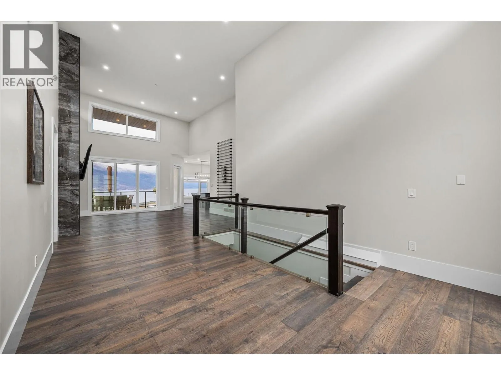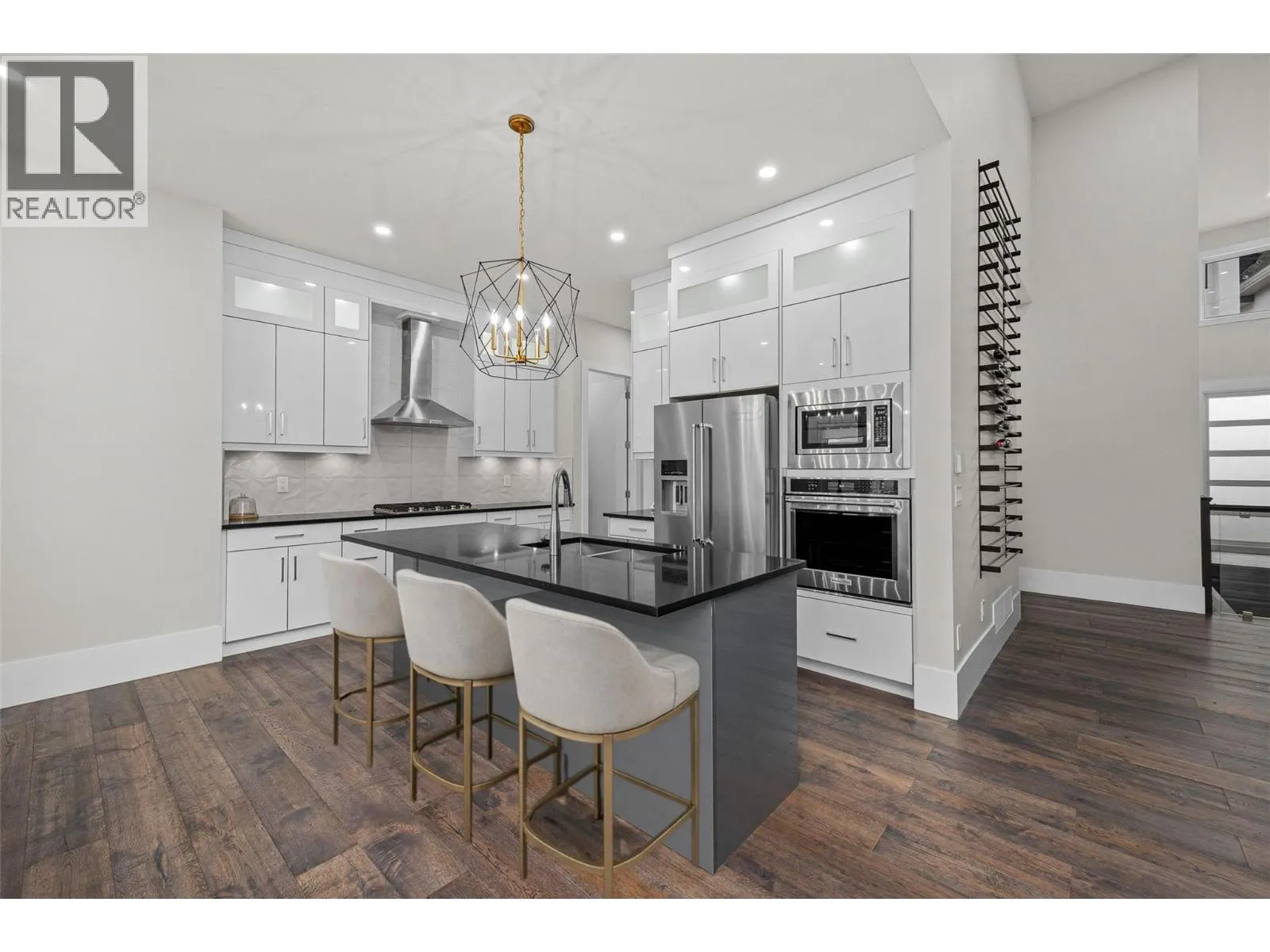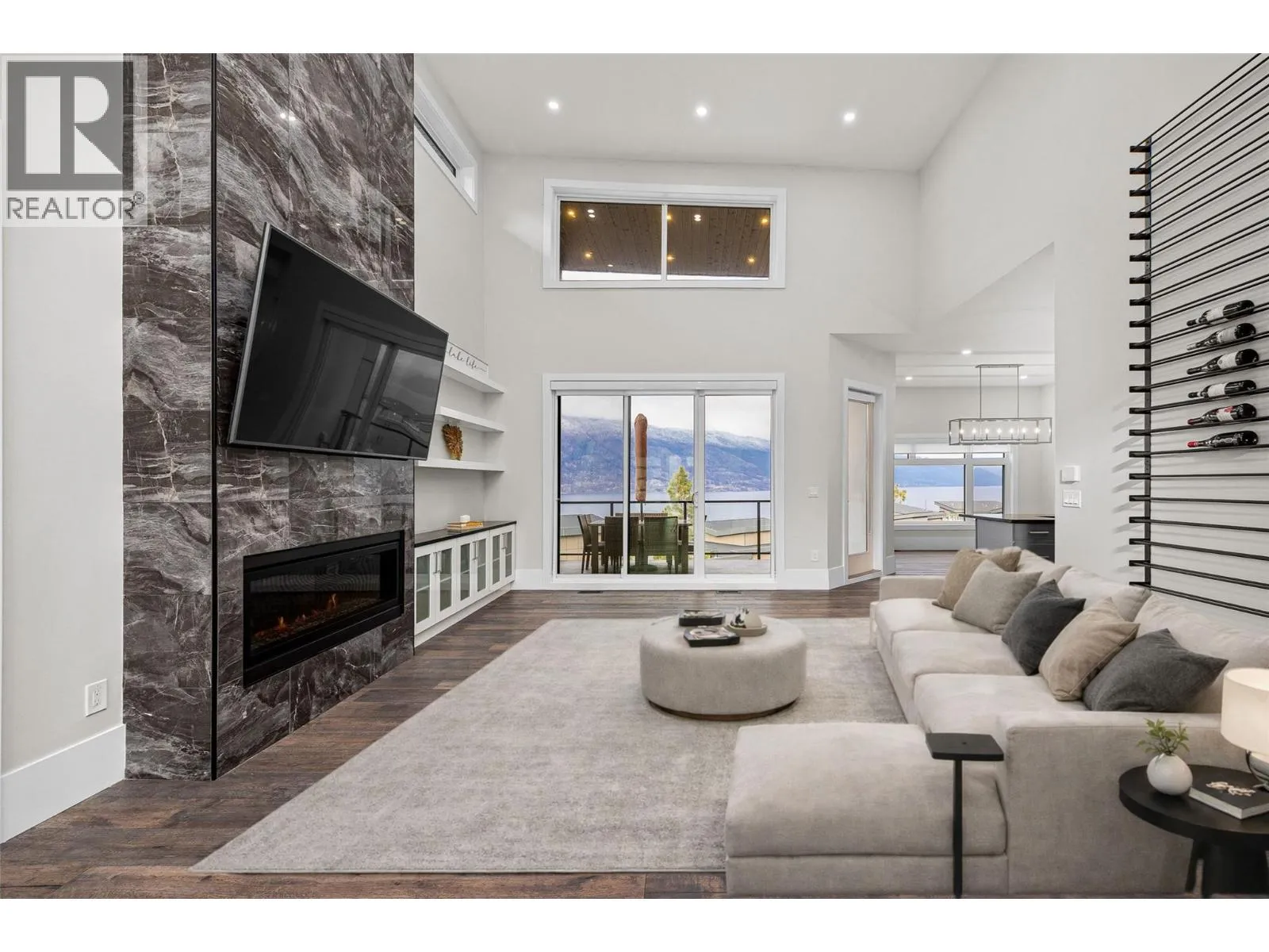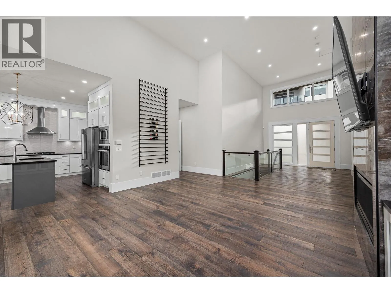 Sweeping lake views welcome you into this stunning walkout rancher with high ceilings, modern finishings, and a thoughtfully designed open-concept main level in the heart of McKinley Beach. Offering 3,713 sqft of living space, this home features 5 beds and 5 baths, including a 1 bed/1 bath legal suite - ideal for extended family or a mortgage helper. Soaring ceilings and expansive windows flood the main living areas with natural light, while seamless indoor-outdoor flow leads to a large lake view deck perfect for entertaining with access to the lower level patio. The chef-inspired kitchen showcases sleek finishes, a generous island, and a walk-in pantry, while the living room is anchored by a linear gas fireplace. Both main-level bedrooms offer private ensuites, including a luxurious primary retreat with spa-inspired bathroom and deck access. The lower level features a spacious rec room with wet bar, additional bedrooms, and walkout access to the covered patio complete with astroturf and a hot tub. An attached double-car extended garage adds functionality with ceiling heights to add a car lift, and the quiet laneway location ensures minimal traffic. Just steps to the marina, beachfront, and the newly built McKinley Beach amenity centre which offers an indoor pool, hot tub, fitness centre and yoga studio, this home delivers elevated lakeside living. Contact us today to book your private showing today and experience McKinley Beach at its finest. (id:27476)