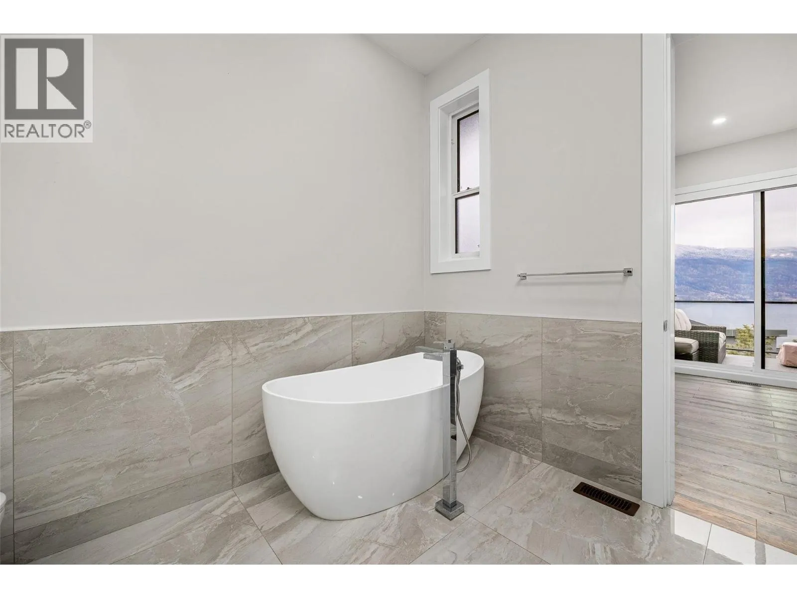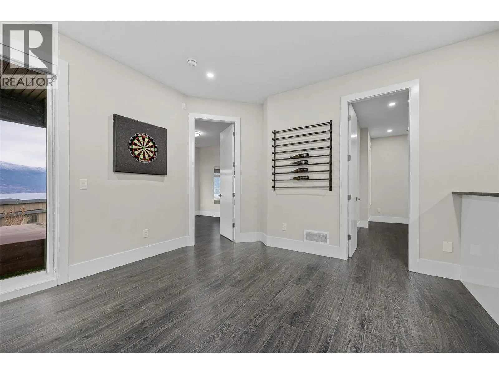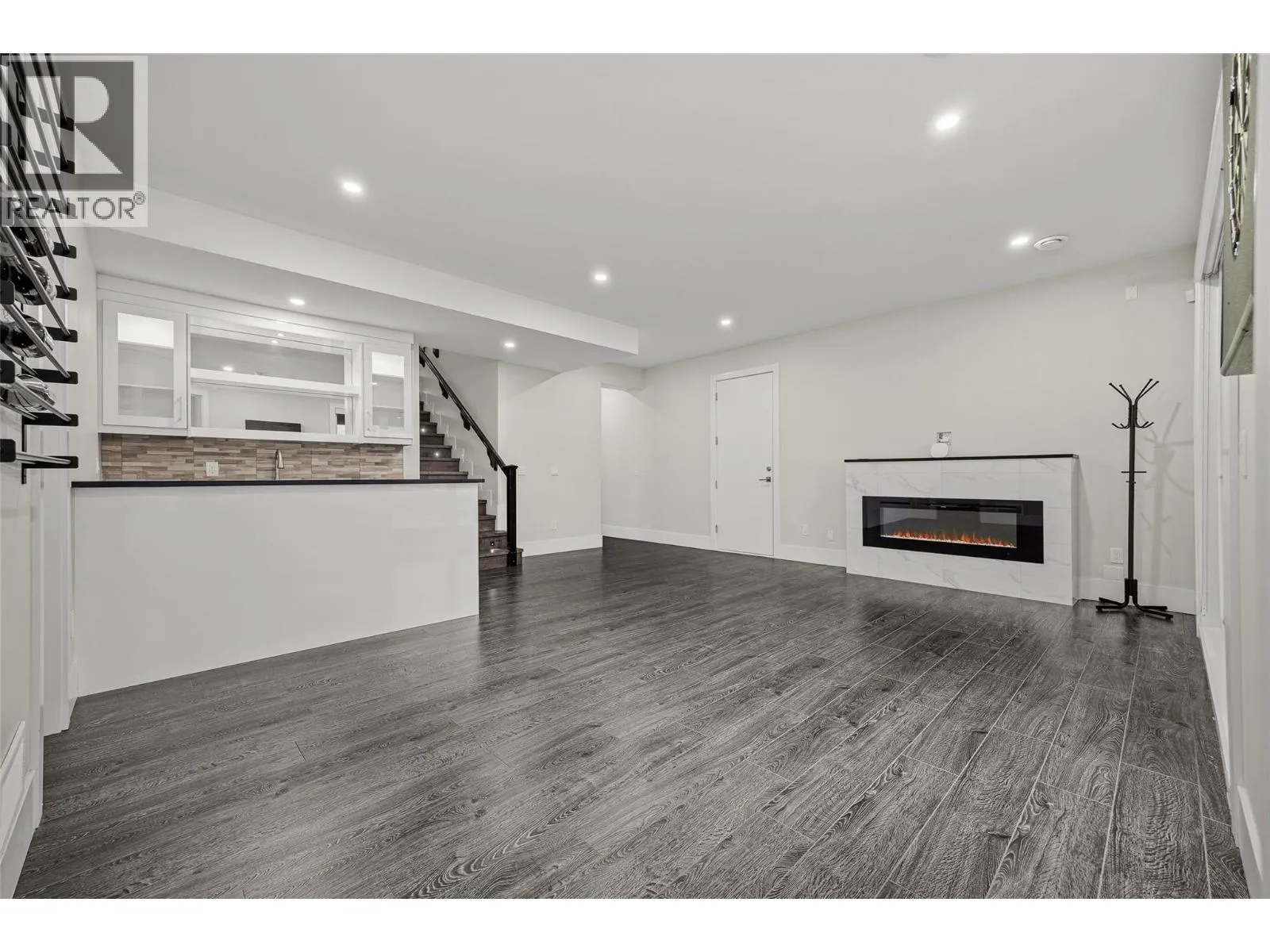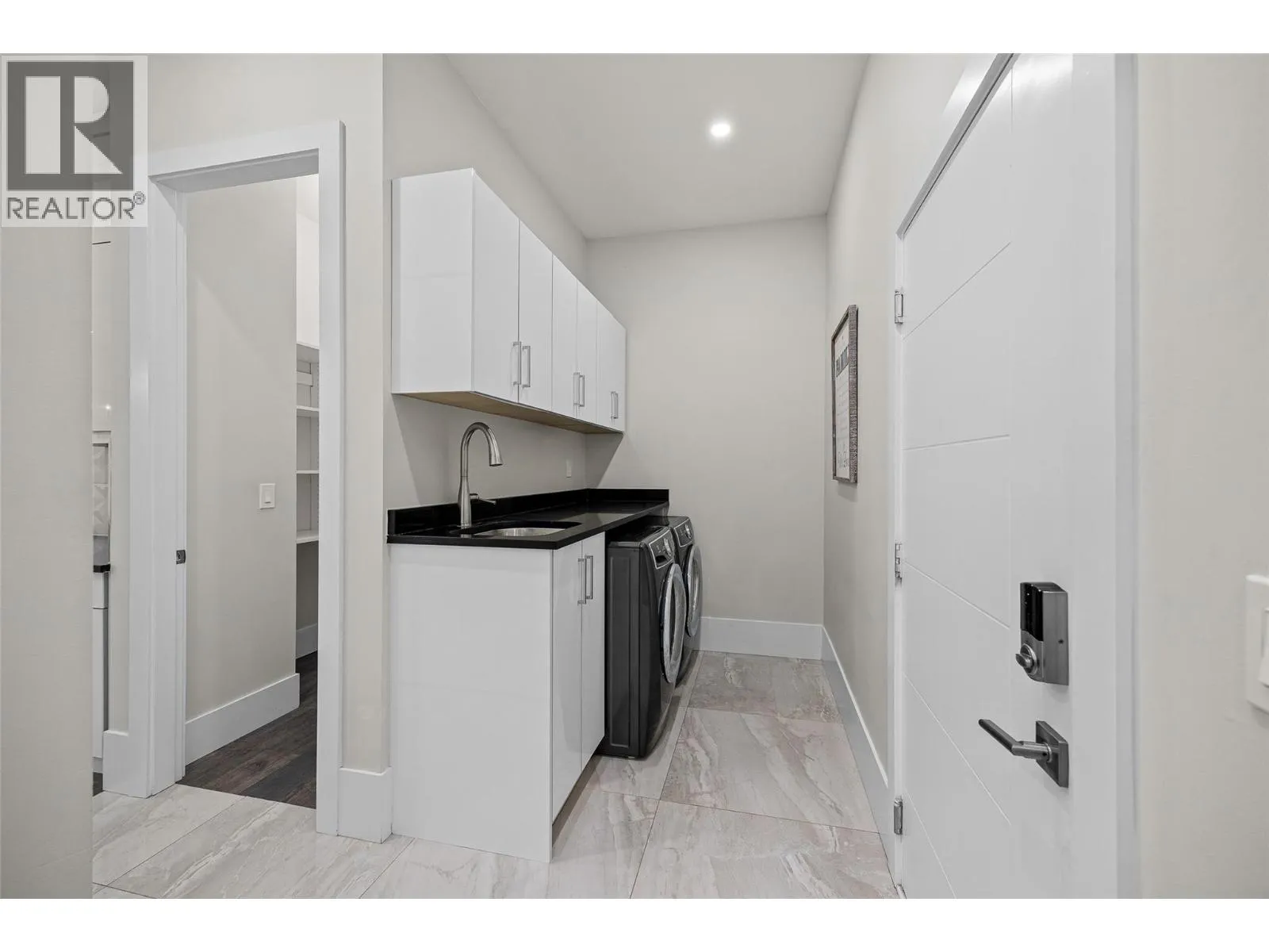 Sweeping lake views welcome you into this stunning walkout rancher with high ceilings, modern finishings, and a thoughtfully designed open-concept main level in the heart of McKinley Beach. Offering 3,713 sqft of living space, this home features 5 beds and 5 baths, including a 1 bed/1 bath legal suite - ideal for extended family or a mortgage helper. Soaring ceilings and expansive windows flood the main living areas with natural light, while seamless indoor-outdoor flow leads to a large lake view deck perfect for entertaining with access to the lower level patio. The chef-inspired kitchen showcases sleek finishes, a generous island, and a walk-in pantry, while the living room is anchored by a linear gas fireplace. Both main-level bedrooms offer private ensuites, including a luxurious primary retreat with spa-inspired bathroom and deck access. The lower level features a spacious rec room with wet bar, additional bedrooms, and walkout access to the covered patio complete with astroturf and a hot tub. An attached double-car extended garage adds functionality with ceiling heights to add a car lift, and the quiet laneway location ensures minimal traffic. Just steps to the marina, beachfront, and the newly built McKinley Beach amenity centre which offers an indoor pool, hot tub, fitness centre and yoga studio, this home delivers elevated lakeside living. Contact us today to book your private showing today and experience McKinley Beach at its finest. (id:27476)
